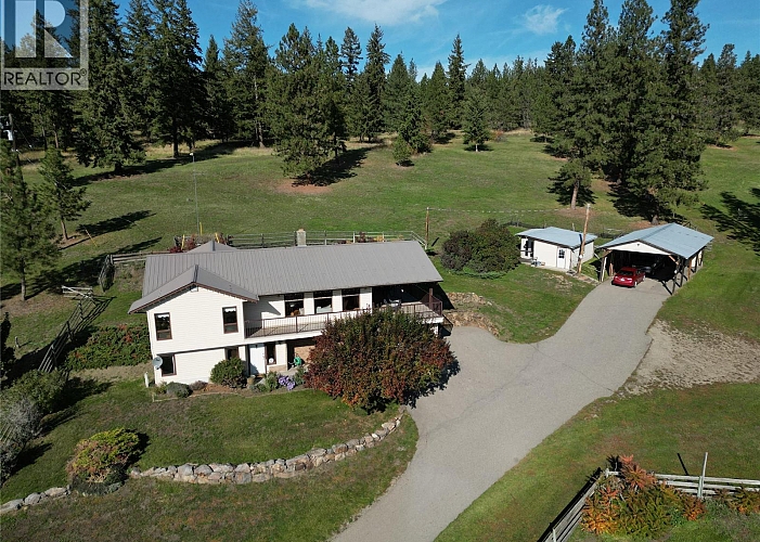 Enjoy privacy galore and beautiful valley views from this 20 acre property/home located just 10 minutes outside of Armstrong. Ideal family rancher with 4 bedrooms and 3 baths. Huge, east facing, sunny living room with a wood burning fireplace...