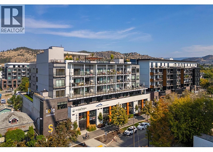 This amazing 5th floor condo is in the sought after Sole building in the heart of Kelowna's cultural district. This centrally located 2 bedroom (or Den) 1 bath condo with views to Knox Mountain, has quartz counters, vinyl plank flooring, stainless...