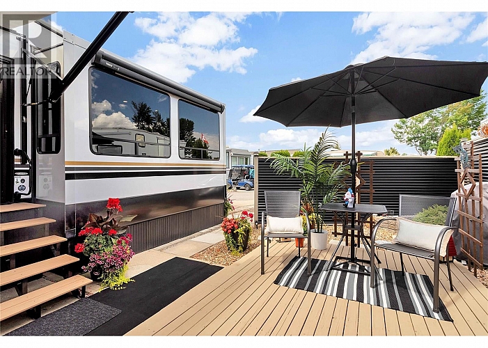 Live in the Okanagan, within walking distance to the lake and all amenities you can dream about. Live here full-time or as your vacation spot, this corner Park Model lot is one of the biggest and most private ones, and across the street from the...