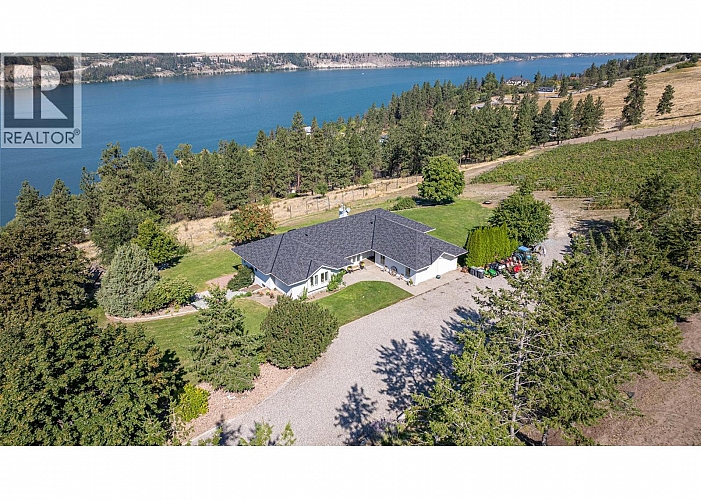 Set on 1.10 acres with panoramic lake views, this 4 bedroom, 4 bath walk-out rancher offers 3,725 sq. ft. of refined living space just steps from the Okanagan Rail Trail, Wood Lake, and Kalamalka Lake. Outdoor living is elevated with a covered...