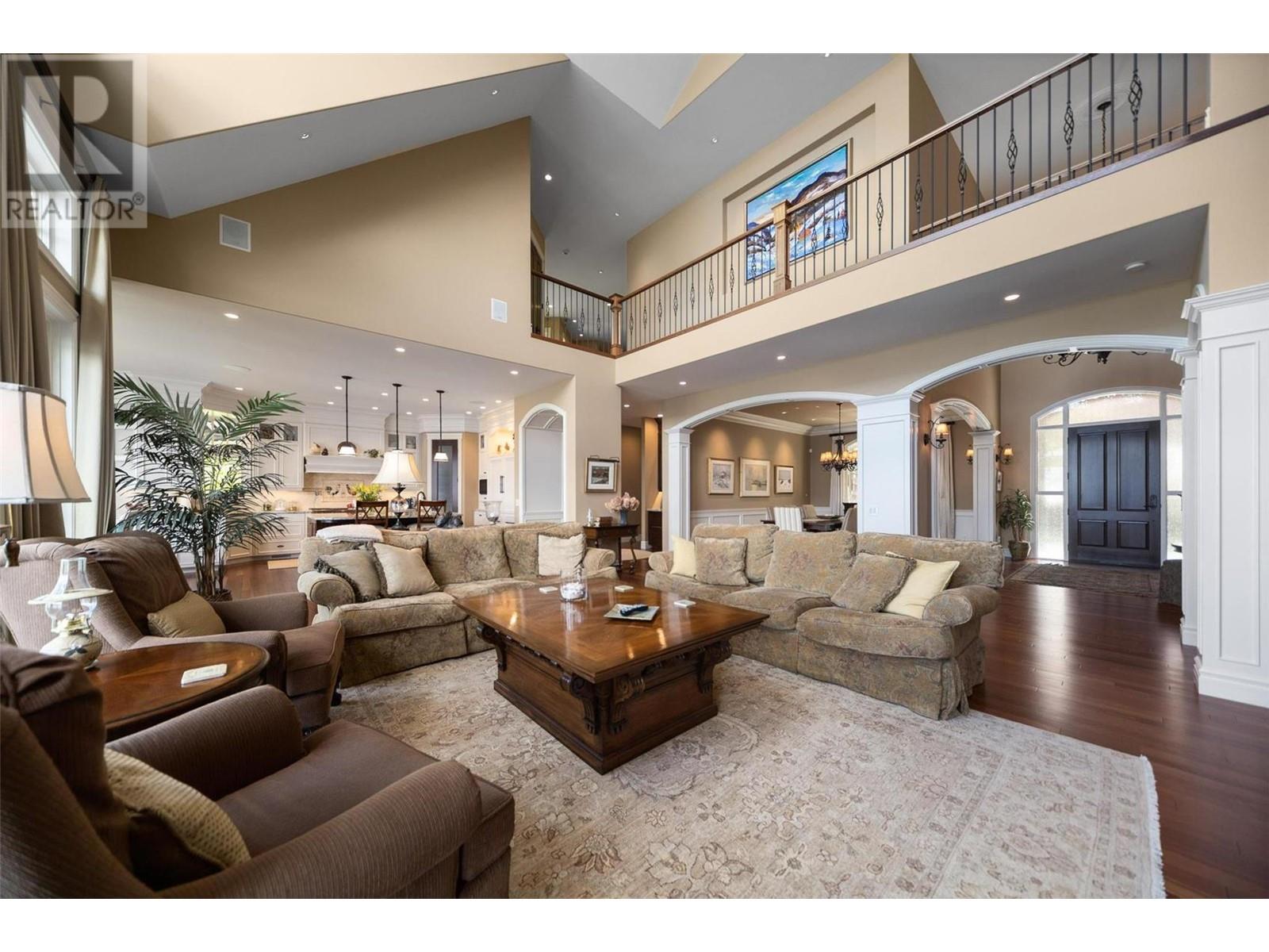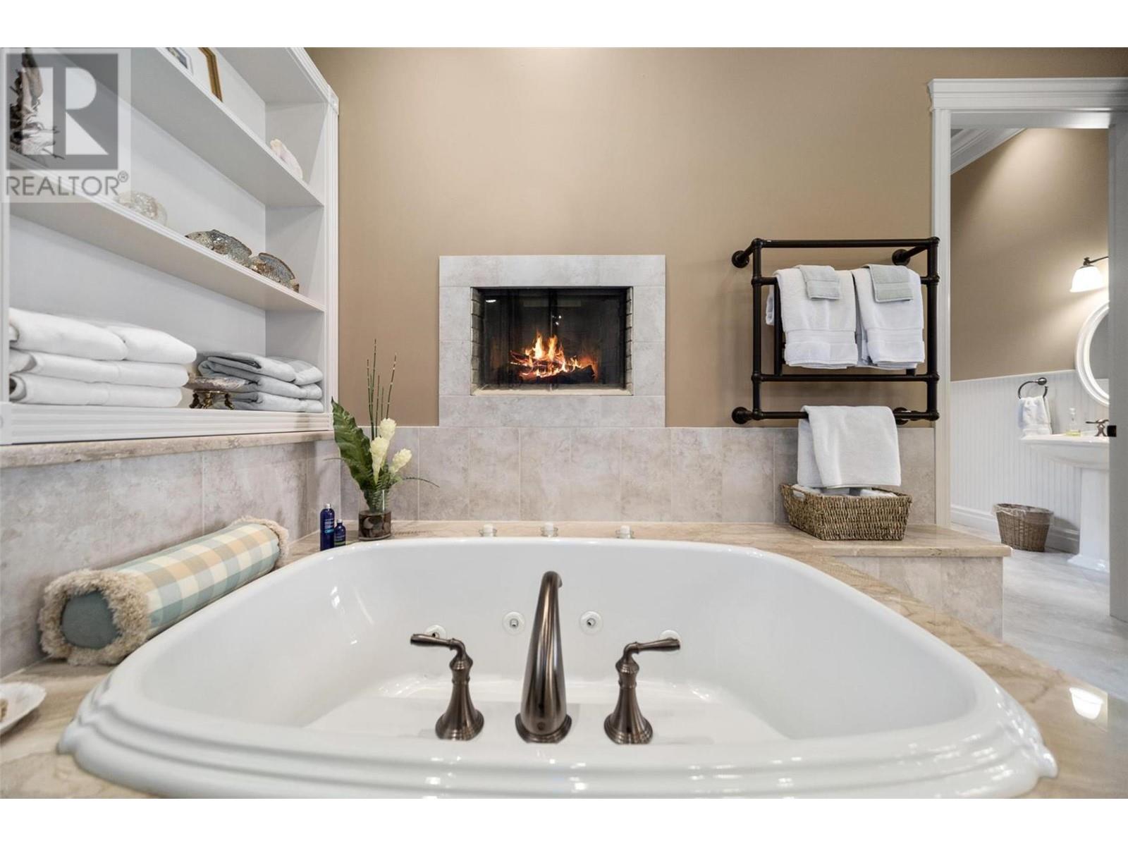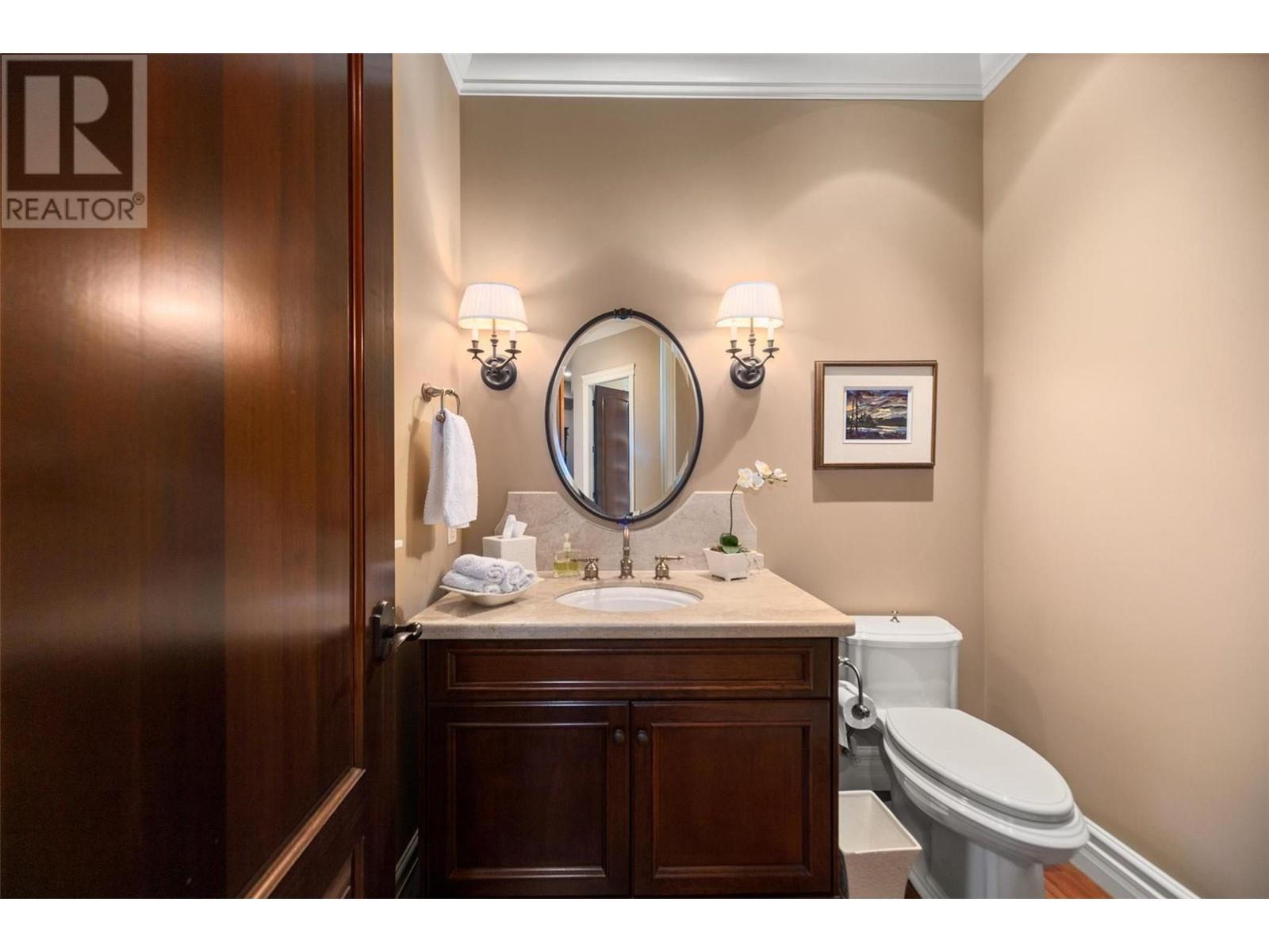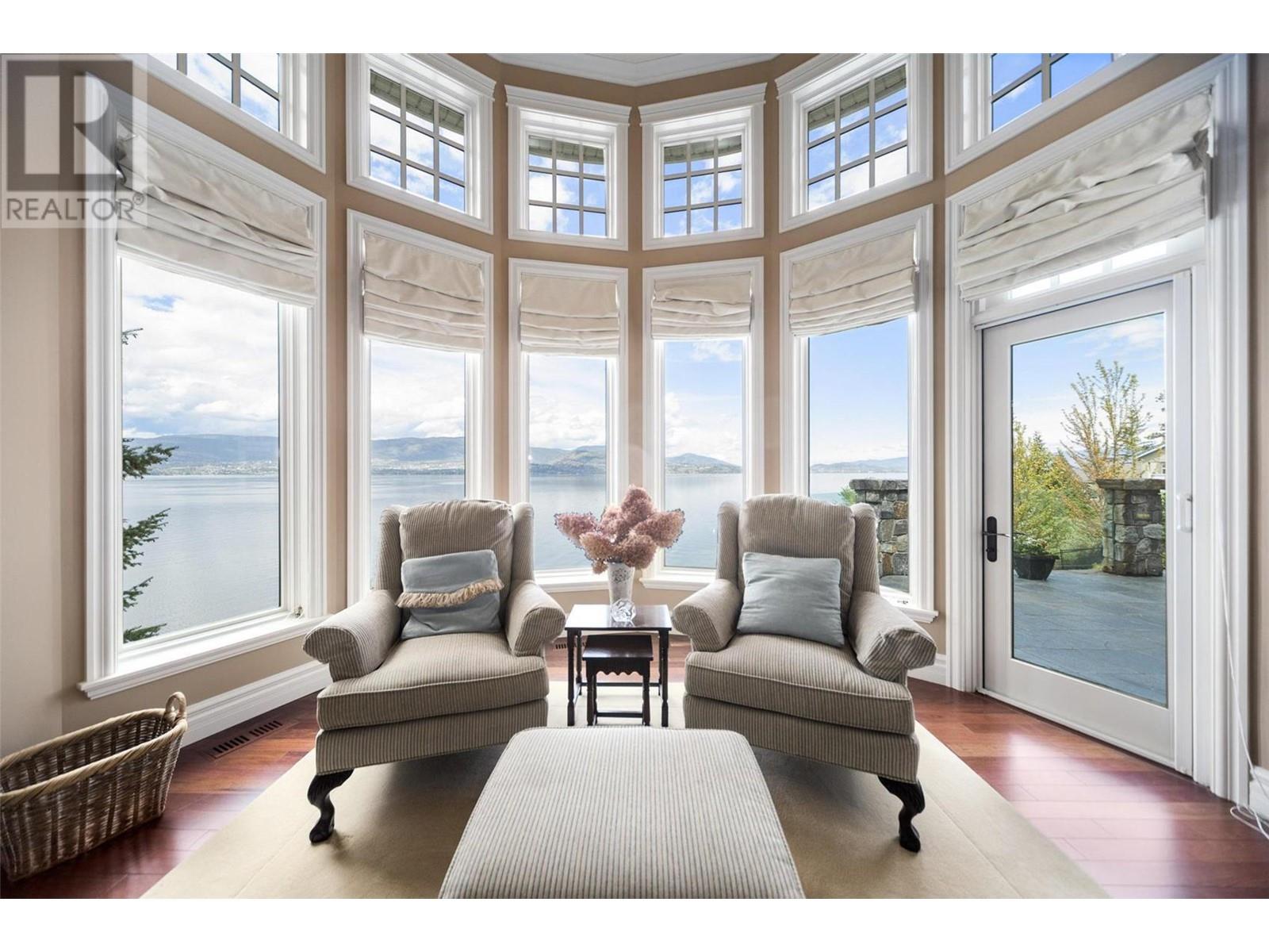 Lakefront vineyard estate home on 2.31 private acres w/160’ of sandy beach. State of the art geothermal heating/cooling and green living eco septic system. European chateau inspired boasts a new dock, elevator, wine cellar, private vineyard, office, gym + theatre. 8000 sq ft, 5 bdrm, 8 bath. Main floor primary suite w/ reading area + fireplace, luxury hotel like bath, great room w/soaring ceilings, stone fireplace and French doors that lead out to a lakefront patio w/ sunset views. The chateau kitchen w/ best in class Wolf/SubZero appliances, lakeview kitchen table along w/bar seating, formal dining room, main floor laundry and a wet bar round. The upper level w/2 large bdrms w/ensuites and huge family/guest suite w/ensuite, laundry, kitchenette. The lower level has a gym +spa bath, wine cellar, games rm, theatre, sauna, family rm and a large office w/ensuite. Elevator + accessible ramps. 4 car garage plus bonus storage. Explore your options to add a guest house. Outdoor kitchen/hot tub. Licenced dock w/power lift. Htd tile floors, Pella windows, state of the art water filtration/controls, htd driveway. Smart Lutron system w/power blinds, custom lighting, audio, alarm. Timeless design w/ tile roof, copper gutters and Kettle Valley stone exterior. A relaxing waterfall entrance. Private vineyard w/90 Chardonnay vines with room to expand vineyard. Mins to the award winning Cedar Creek + Martins Lake wineries, Bertram Park and the amenities of Lower Mission. Room for pool. (id:6770)