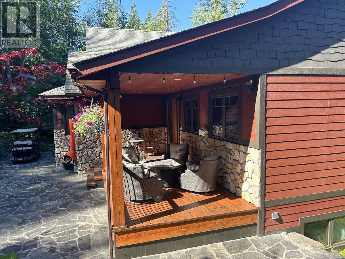 For more info, please click on Brochure button below. Escape to an exquisite retreat at Mabel Lake BC. This luxurious 3012 sq ft home epitomizes elegance & functionality with 4 bedrooms, 3.5 bathrooms, & a walkout basement featuring 9'6"" ceilings & a wet bar. The custom-built kitchen is an entertainer’s dream, showcasing Northstar appliances, custom cabinetry, granite countertops, & a stunning solid wood resin island. Wide plank hickory flooring flows throughout, while every bathroom & shower is adorned with travertine tiles. Comfort & efficiency are paramount, with radiant heating, forced air, & air conditioning ensuring year-round comfort, complemented by a cozy wood-burning stove. The living room & master bedroom feature vaulted ceilings, with the living room further enhanced by beautiful exposed wood beams, creating a rustic yet luxurious ambiance. Designed for ultimate outdoor enjoyment, the home features a west-facing 600 sq ft covered back deck with vaulted ceilings, timber beams, and copper railings, perfect for soaking up the afternoon sun. The 235 sq ft front porch echoes the same exquisite finish. The property is tiered with meticulously crafted rock walls & lush landscaping, complete with an irrigation system. At the front, there is a courtyard with a beautiful flagstone patio, providing an inviting space for outdoor gatherings. Additional highlights include a covered stairwell from the roadside above and convenient road access to the oversized garage below. (id:6770)
