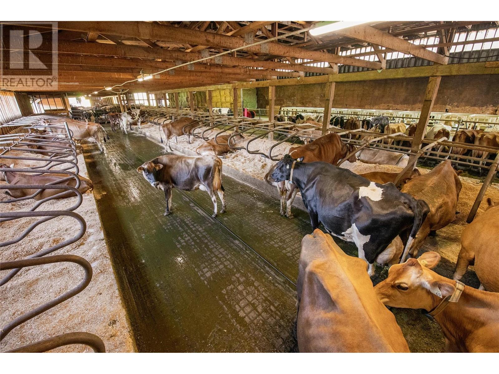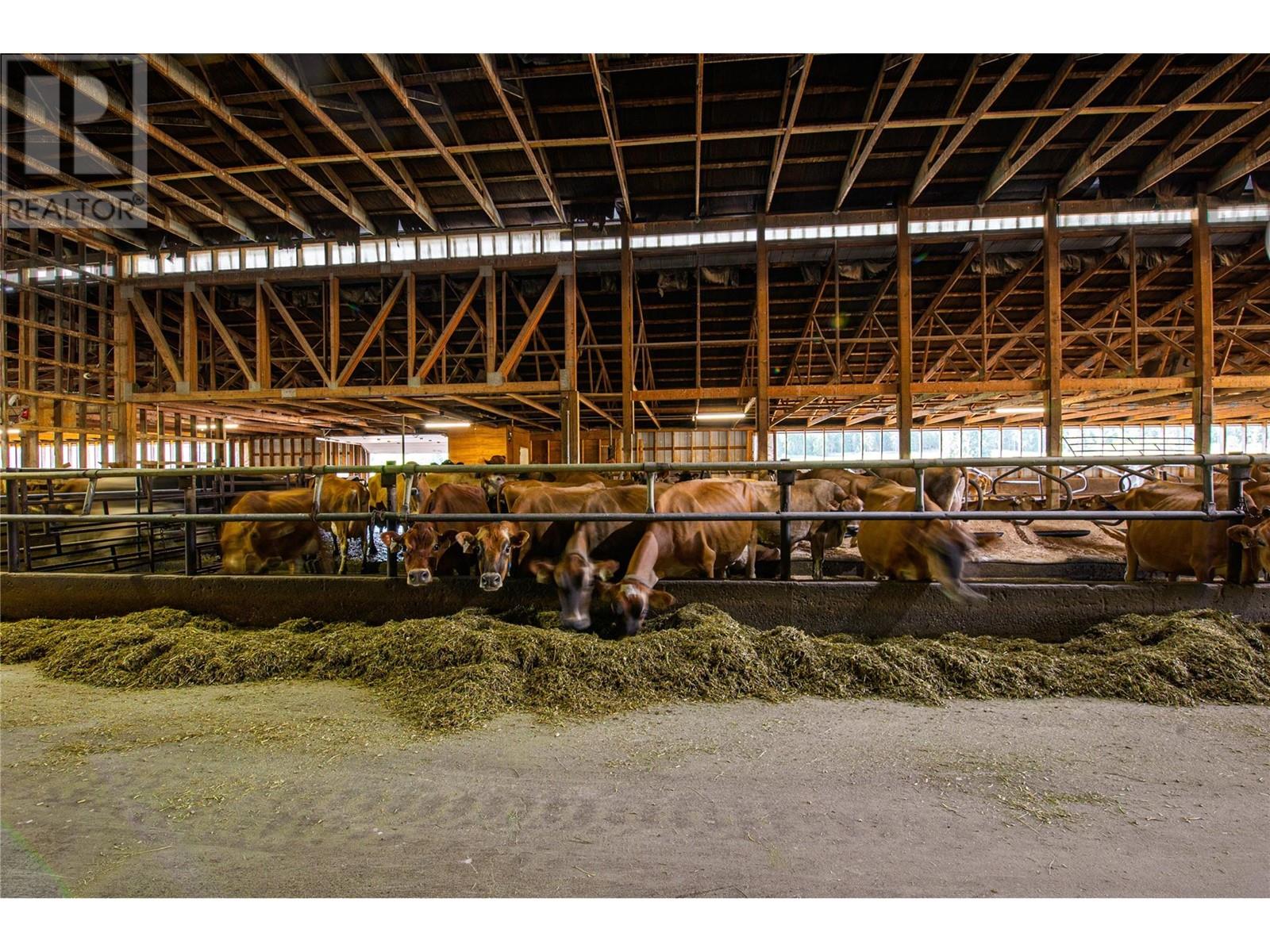 Dairy farm in the Shuswap, 2350 sq.ft. home with separate in-law suite, 4 Bedrooms in total, 2 bay oversized garage. 69 acres owned with additional 140 acres leased. Possible purchase of the rented land. 139 Freestalls for cows with alley scrapers, Boumatic double 10 parallel rapid exit parlour, 3000 US gal milk tank, Triple concrete bunker silos, commodity shed for grain and sawdust, hay shed. 125 stall heifer barn, insulated calf barn. Large concrete manure pit, heated shop. Very neat and tidy dairy farm close to Salmon Arm and 30 min to Vernon. This property is on the corner of Hwy 97B and Gardom Lake rd, potential for a agri store business, turn facility into a market garden, cheese plant, lots of different possibilities. Information displayed is believed to be accurate, all measurements are approximate and not to be relied on, if important they should be independently verified. (id:6770)