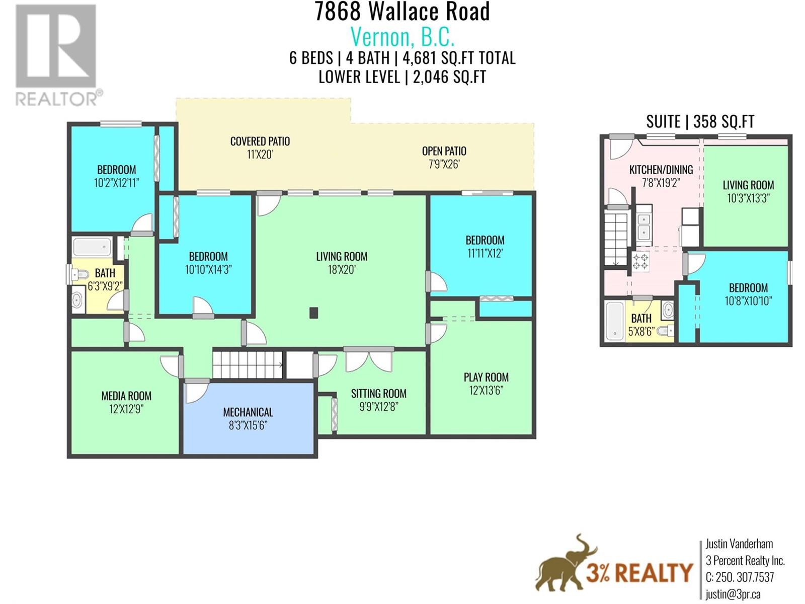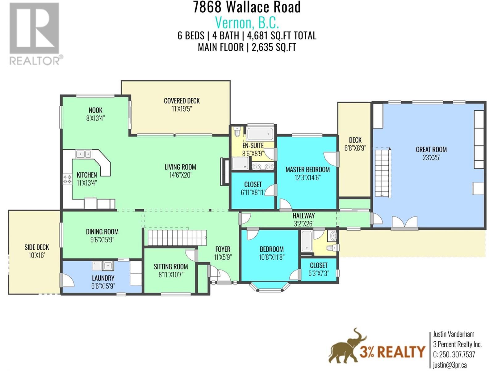 Nestled on 6.14 acres, 7868 Wallace Road is your amazing opportunity to own beauty in this expansive 7-bedroom, 4-bath home. Just like some private retreat it is just 15 minutes to Silverstar Ski Resort and 10 minutes to Village Green Mall. The main 4681 sq/ft home has been extensively renovated, with a new foundation (2012) and fully updated interior. The main floor features a chef’s kitchen with custom cabinetry, a cozy wood insert (zero clearance) fireplace, and stunning views of the backyard and Kalamalka Lake. Upstairs, the master suite includes a 5-piece ensuite, large walk-in closet, and clear lake views. The home offers 3 bedrooms up and 4 down, plus a large recreation room and a custom kids’ playroom with tree fort. High-end mechanical systems include radiant floor heating, a natural gas furnace, and a boiler for hot water. A high-end septic system handles all living units. For extra income or family space, the isolated 1-bedroom suite (358 sq/ft) with a separate entrance rent. Above the suite is a 23’ x 25’ room, perfect for a studio, bike/ATV storage, or other ideas. BONUS! A cozy, clean 552 sq/ft cottage/cabin with TnG walls, loft deck. The property offers a stunning backyard with kids fort & with winding wooded trails. With 2 lane ways and the perfect gentle slope, you could build a stunning multi door garage with a drive through design and maybe walkout area for toys and tools. This home is move-in ready and offers endless potential! Welcome Home!! (id:6770)