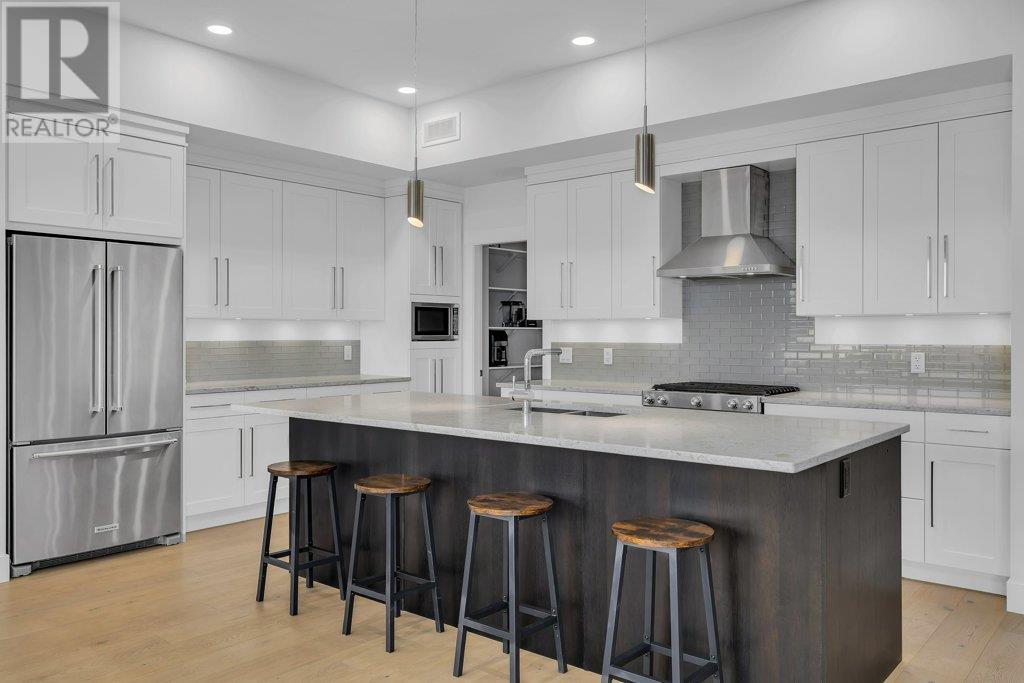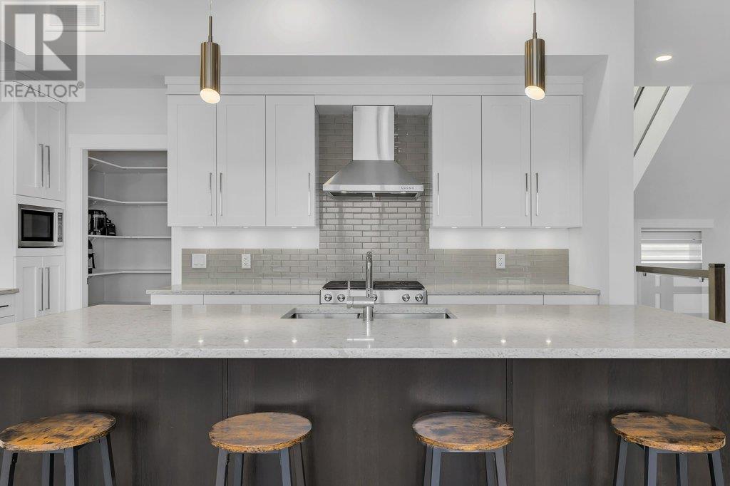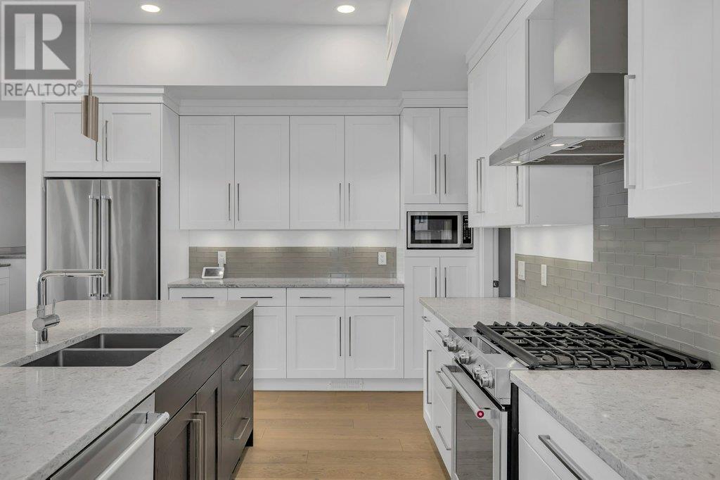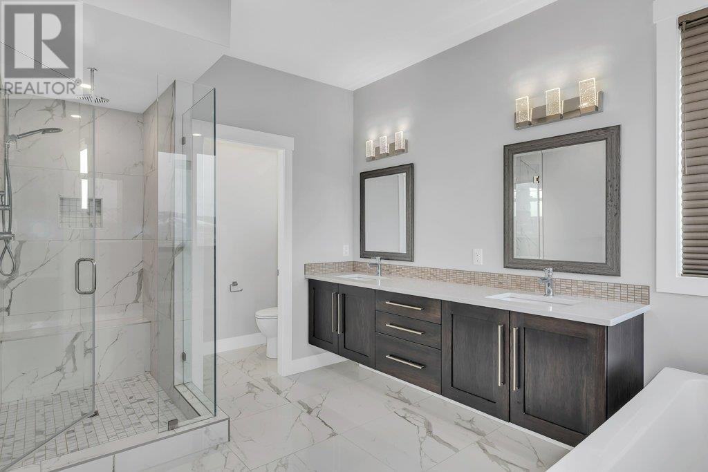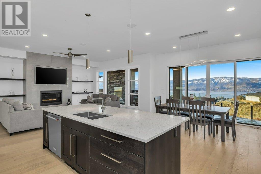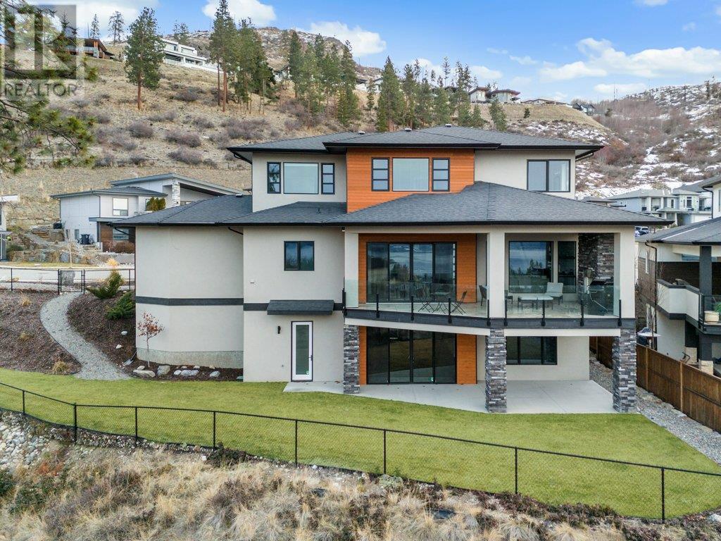 Welcome to this stunning lakeview home nestled in the heart of the prestigious Kettle Valley neighborhood. Just steps away from parks, amenities, waterpark, pickleball courts, & top-rated schools, location offers the perfect blend of convenience & luxury living. Spanning approx 4700 sqft across 3 levels, home boasts breathtaking lake views from every floor. The fenced yard is ready for your dream pool, creating a setting for relaxation & entertainment. Rough-in for pool & hot tub completed. As you step inside, you'll be impressed by the luxury finishes throughout. The open-concept main living area seamlessly flows on to the deck, offering unobstructed lake views, a fireplace, and ultimate privacy with no neighbors beside or behind you. This 5-bed, 4-bath home is designed with entertaining in mind. The gourmet kitchen takes center stage on the main floor, with a walk-in pantry. Also incl an office & a mud room leading to the triple garage. Upstairs, the primary bedroom is a true retreat, featuring a walk-in closet & spa-inspired ensuite with a stunning soaker tub that overlooks the lake. Incl heated floors & rainshower. Additionally, there's two generously sized bedrooms & a flex area. Lower level is the ideal space, with a walkout basement leading to the potential pool/hot tub area & green space. Incl a Rec room, wet bar, two bedrooms, fitness room, media room, & full bath/changing room with exterior access. Perfect home to embrace the Okanagan lifestyle. (id:6770)