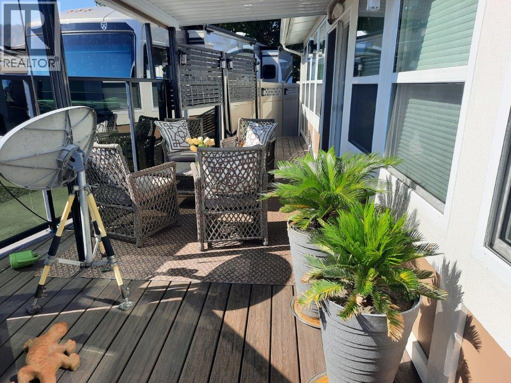 Exquisite Park Model home is priced to sell! The luxurious, open concept kitchen features custom Kekuli Bay cabinetry, granite countertops and stainless high end appliances. The bathroom has Kekuli Bay cabinetry, custom design window and sensor lighting under the vanity. There are solar tubes in the kitchen and bathroom. In floor heating and custom blinds throughout enhance the elegance of this home. The Hot Water on Demand, Reverse Osmosis water system and water softener are included. For your sleeping comfort, there is a king bed in the spacious bedroom. Enjoy the maintenance free backyard where you will find the hard top gazebo, brick patio and an 8' x 8' wired and insulated shed for all your projects. The wrap around composite decking with smoked glass railing is the perfect spot for entertaining family and friends. Underneath the Park Model has been sealed with plywood. For your convenience, there are sliding storage compartments under the unit. There is no Property Transfer Tax. Long and short term rentals allowed. Maintenance fee for 2025 is paid annually. Maintenance Fee includes security, water, sewer, use of the amenities, maintenance of the common areas and roads, snow removal and garbage disposal area. The site is registered with the Federal Government and the Park Model ownership is transferred by Bill of Sale. Holiday Park Resort has many amenities: pools, hot tubs, restaurant, golf course, pickleball court plus more. (id:6770)