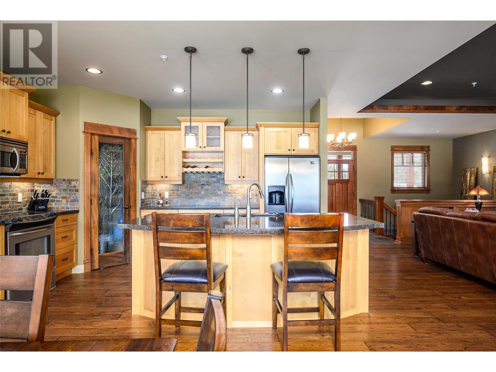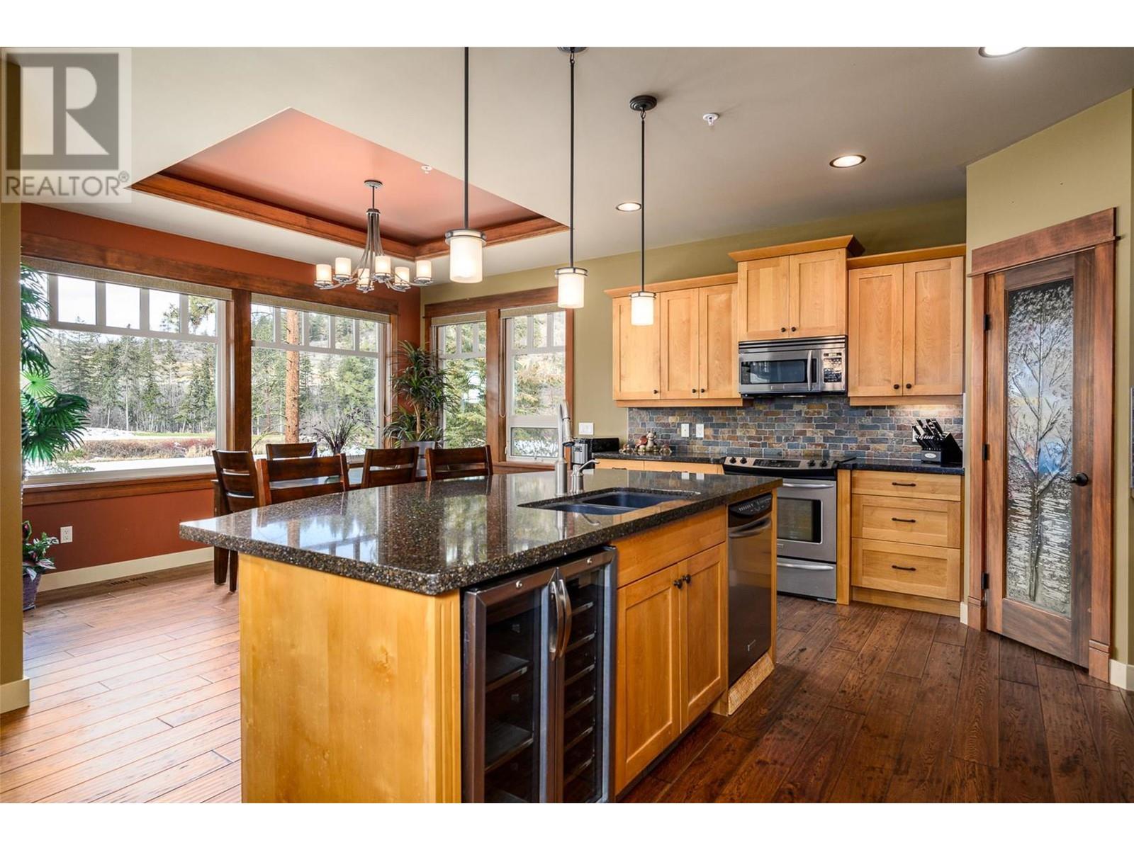 Overlooking Birdie Lake – spectacular location, west facing view of hole 15 of the Ridge Course! A coveted, small enclave of only 6 exceptional craftsman style ranchers with walk-out lower levels in this full strata. #4 features open concept main floor with luxurious hardwood flooring, high trayed ceilings, a beautiful stone feature fireplace & extensive fir treatment throughout. Large kitchen with lots of cabinetry, walk-in pantry, stainless appliances including a wine fridge, island bar & quartz countertops. Retreat down to your family room, 2 primary bedrooms both with ensuites. Covered flagstone front porch, covered deck with remote controlled sunscreens & covered lower patio provide just enough shade to enjoy that late afternoon refreshment as you watch golfers going for that hole-in-one! An extra deep single car garage easily fits your car + golf cart. Golf membership available, valued at $55,000 with $13,750 transfer fee payable by buyer within 12 months of closing. Having two world class golf courses to play is a golfer's dream come true! And only a short distance away, just up the hill, we couldn't have asked for a better neighbour with Sparkling Hill Wellness Hotel & their beautiful world class spa. Sparkling Hill is the world's best wellness hotel in the mountain category! Kalamalka & Okanagan Lakes are a short drive for untold hours of boating & swimming! Skiing at Silver Star is only 45 minutes away! See why this is one of the best places to live! (id:6770)