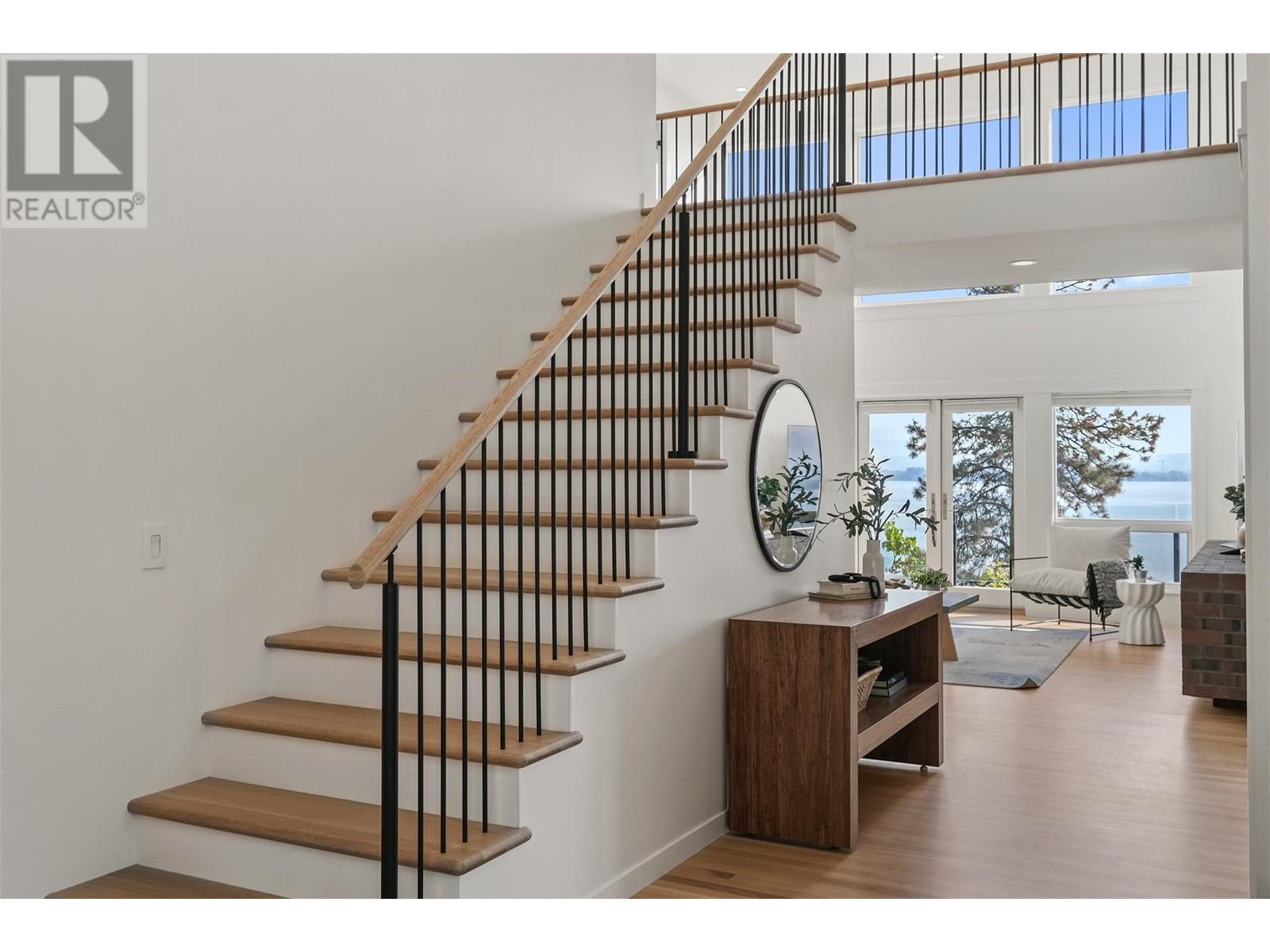 Estate sale! Gorgeous, substantially renovated waterfront home in a park-like setting in sought-after Casa Loma. This property offers approx. 200 ft of shoreline & a private dock w/ a lift in place for up to 8,000 lbs. Situated on a large 0.89-acre lot, it offers exceptional privacy. For the car lover, a unique feature of the home is the detached double garage built in 2022 that offers one bath & loft space. Add’l double car garage off the main home w/ ample exterior parking for toys, boats, & RVs. Timeless home for year-round living or a summer retreat. 3,880+ sq. ft. of luxury living over 4 beds, 6 baths, including a 1-bed legal suite, & 2 levels of patios. Finishings include quartz countertops, & beach-tone hardwood floors. Upon entry, captivating lake views draw you to the main living area with high ceilings extending to the 2nd level. The gourmet kitchen offers beautiful finishings: coffered ceilings, professional appliances, a center island, and custom cabinetry. Direct access to a lakeview patio for entertaining & enjoying the tranquility of the natural setting. Main floor primary bedroom with ensuite. Upper level offers 2 beds with 1 bath. The lower level offers a rec room, kitchen, 1 bed, 2 baths, and a den. Excellent floorplan w/ primary on main. Located minutes from wineries, golf courses, & downtown Kelowna’s cultural district. An idyllic setting for those seeking privacy on Okanagan Lake. (id:6770)