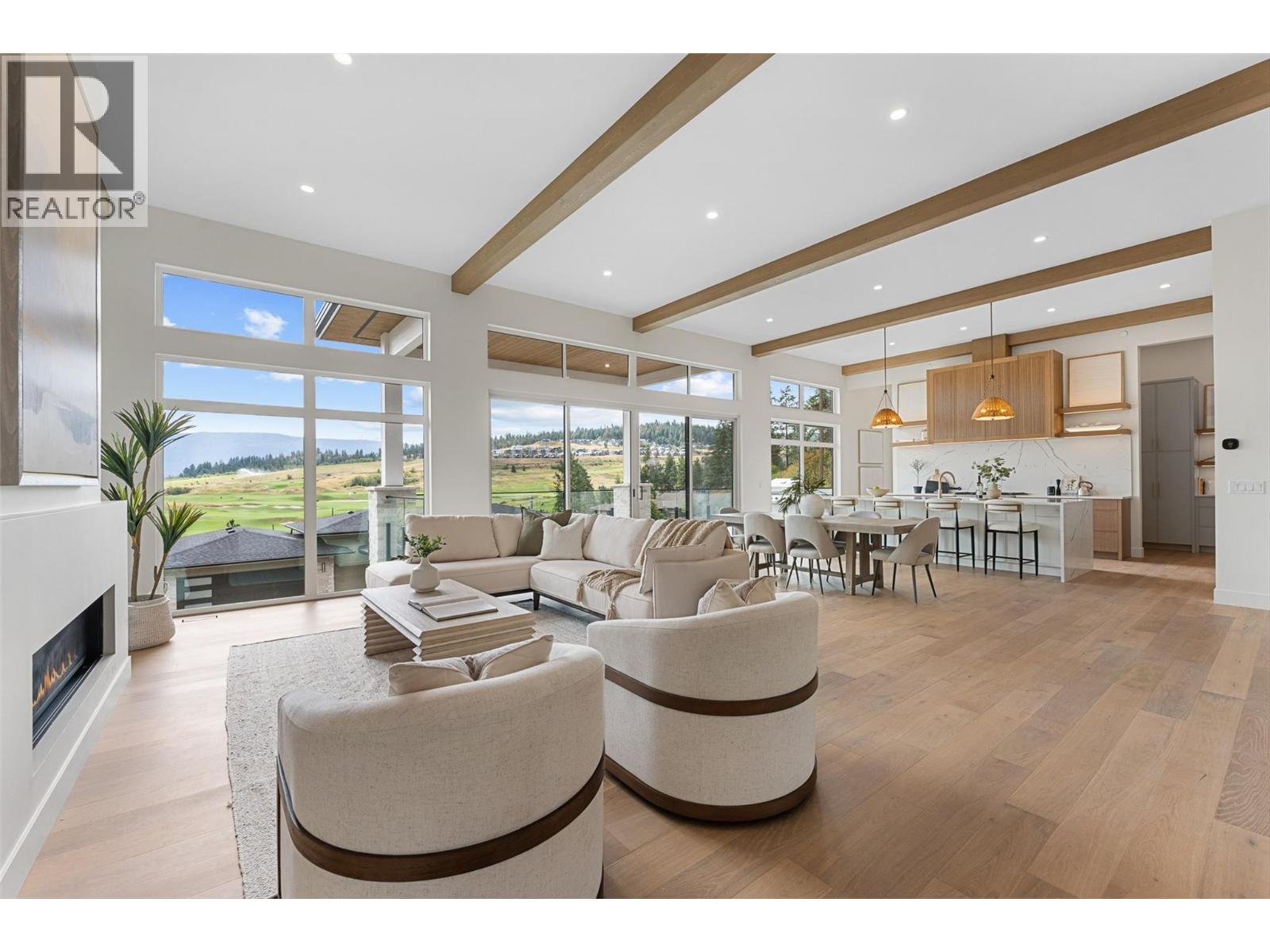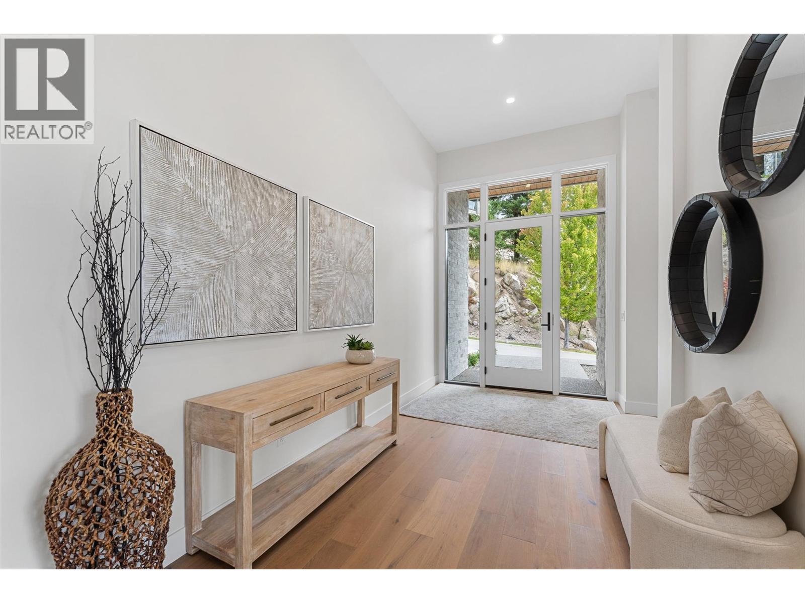 No SPEC/VACANCY TAX. Modern new build in the prestigious Falcon Point neighborhood at Predator Ridge. Designed to capture golf course & mountain views this home combines contemporary elegance with resort-style living. The main level showcases 12 ft. ceilings, a stone feature wall, & a gas fireplace that anchors the living room. Expansive windows flood the interiors with light, while engineered hardwood flooring enhances the clean, modern aesthetic. The chef’s kitchen features a Fisher & Paykel appliance package, waterfall-edge island, & a servery. Sliding doors extend to a partially covered patio with an outdoor kitchen, perfect for entertaining. The primary suite boasts floor-to-ceiling windows, a walk-in closet with laundry, & a luxurious 5-piece ensuite with a soaker tub, & glass shower. A second bedroom/ office and custom mudroom with walk-in closet complete the main floor. The lower level is an entertainer’s dream, with a rec room, wet bar, custom wine display, and a family room with access to the patio offering a putting green and designed for a future hot tub. Three add’l bedrooms, two baths, 2nd laundry room and a flex area perfect for a golf simulator, gym or poker den. This home offers a 4-car garage and fully landscaped, low-maintenance grounds. Experience the unmatched lifestyle of Predator Ridge, offering 36 holes of championship golf, a racquet club, miles of trails, Sparkling Hill Resort, and world-class wineries minutes away. GST applicable. (id:6770)