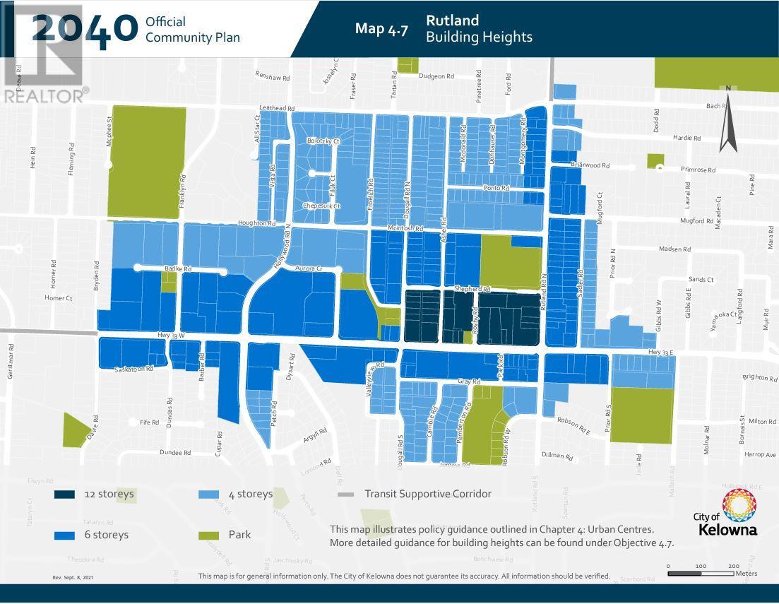 An exceptional opportunity to acquire a fully stratified, 26-unit townhouse development on a 1.75-acre parcel in the heart of Kelowna’s rapidly evolving Rutland Urban Centre. Ideally positioned directly across from Ben Lee Park and bordering the Houghton Road Recreation Corridor, this property offers both lifestyle appeal and strategic long-term value. Located within the City’s designated redevelopment zone, the site is zoned UC4, allowing for up to 6 storeys with a density bonus—making it a prime candidate for future multifamily redevelopment. Most of the units are owner-occupied, with estimated market rents of approximately $2,500 per month, equating to a potential gross annual income of $780,000. Just 8 minutes to UBCO and Kelowna International Airport, 15 minutes to Okanagan Lake, and 40 minutes to Big White, this location offers strong projected holding income and exceptional redevelopment potential in one of Kelowna’s most active and connected growth corridors. (id:6770)