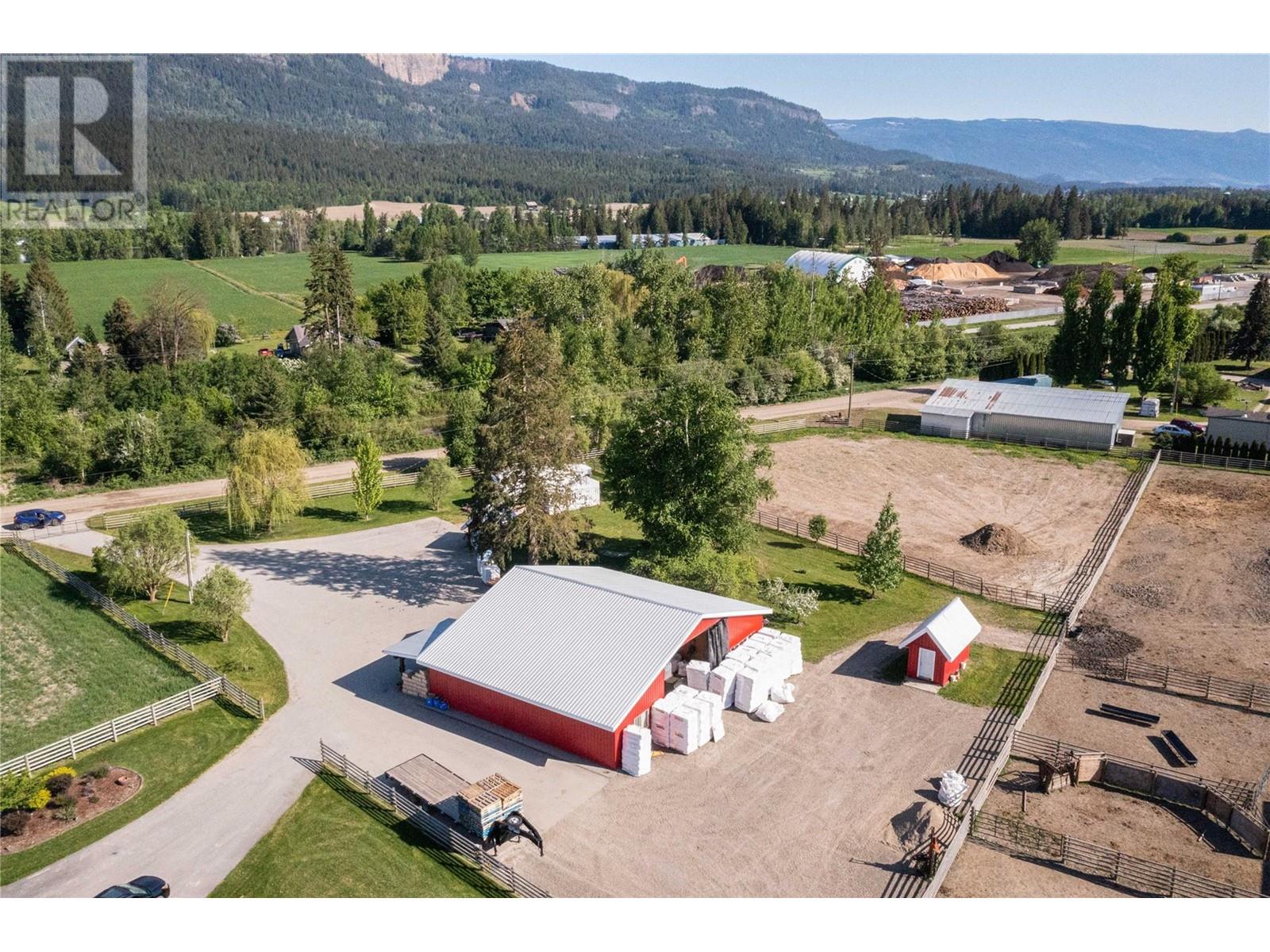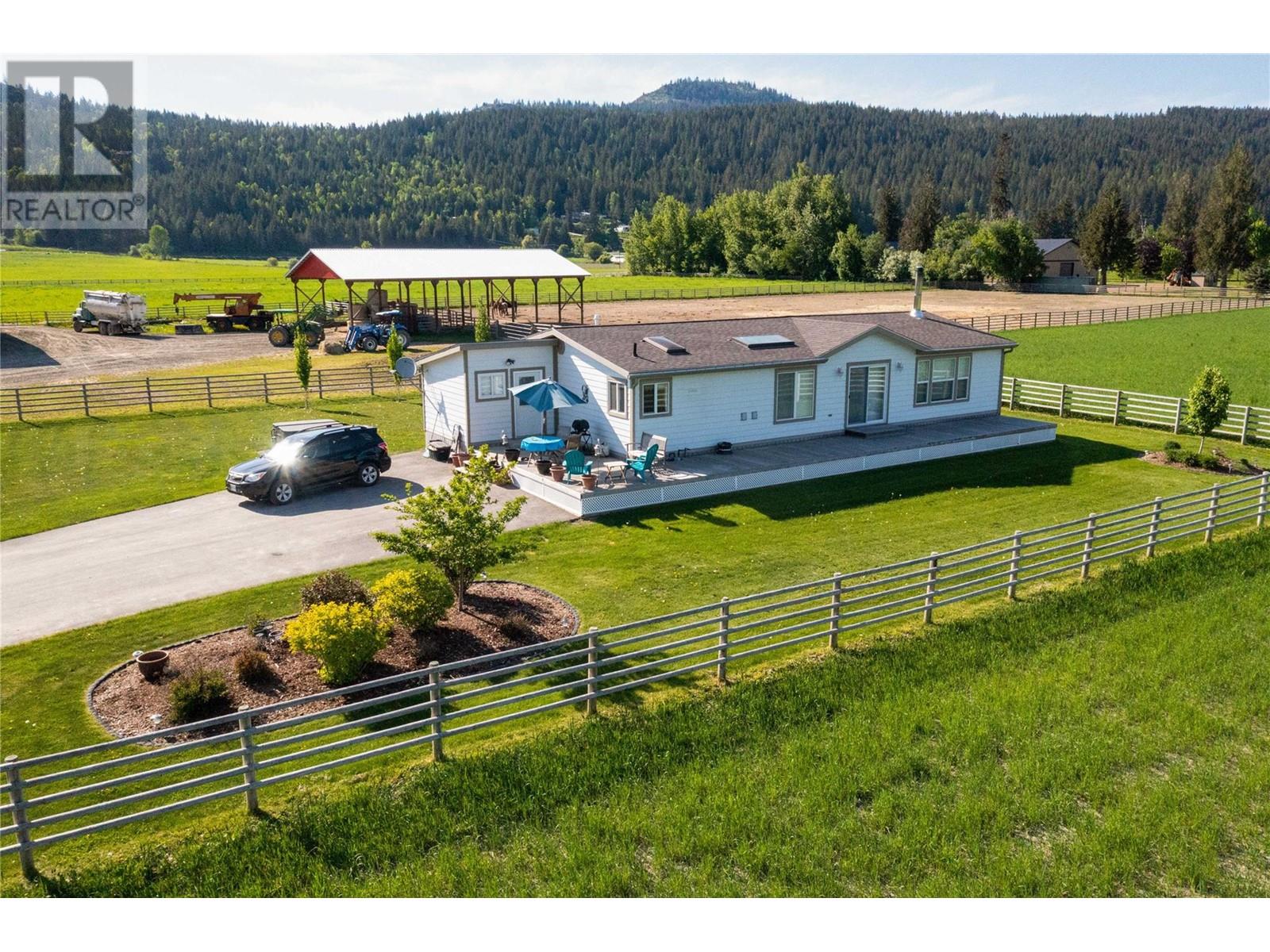 Attention horse lovers. Here is 44 acres in the Okanagan with a 100 x 125 ft covered steel riding arena, beautiful fences and lots of hay production. Well established and very profitable Feed Store to make the mortgage payments. Store is open during the week with weekends and holidays off. Work, Live, Play on this great property, Feedstore: with 1.5+ million in sales per year, Feed Store 60 x 50 Store and storage, sells feed, shavings, dog food, 100 x 125 indoor riding arena, new fencing, paddocks, pasture, corrals for cattle, 40 x 72 hay shed, 3 cuts of hay, sub irrigated, lots of water from shallow well, 2012 shows like new 1352 sq,ft modular home with A/C and N/G, skylights, open kitchen living room with large natural cedar deck front deck, All this comes with paved driveway, underground wiring, RV Hook up, close to Shuswap River, no thru road for privacy, Please no direct viewings call Realtor. (id:6770)