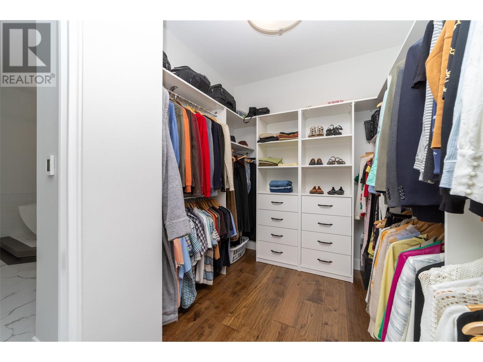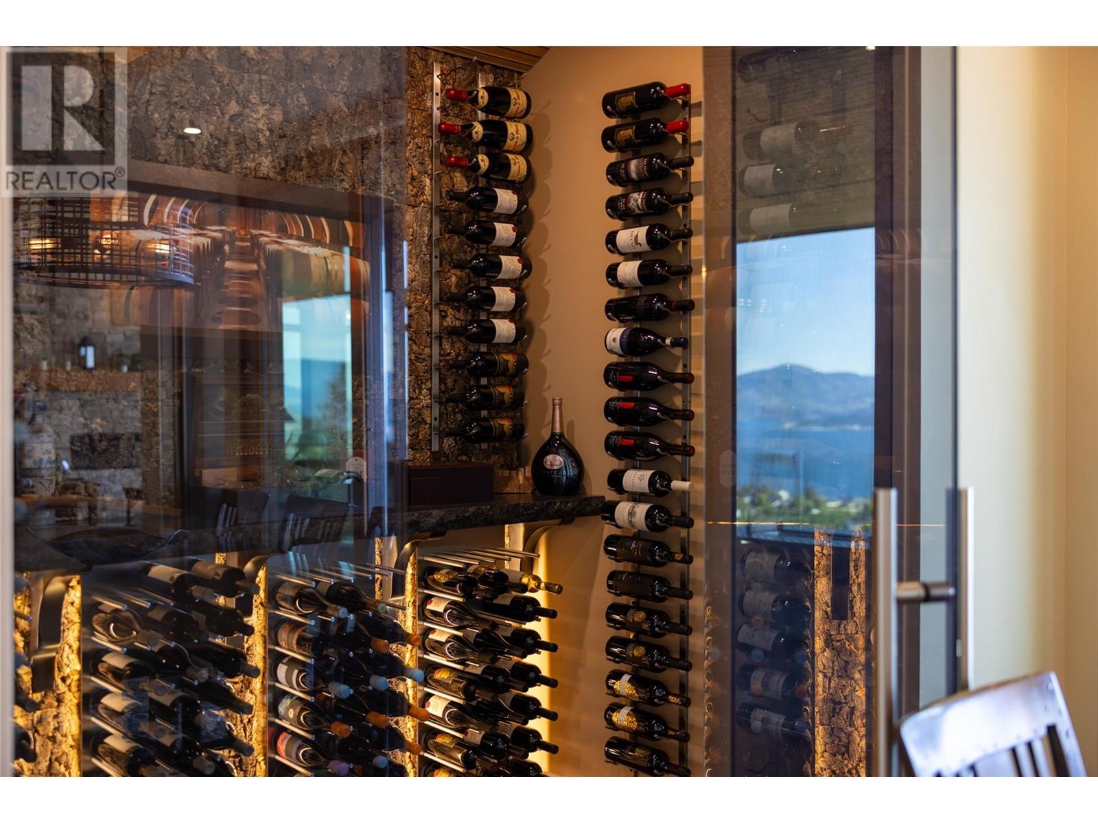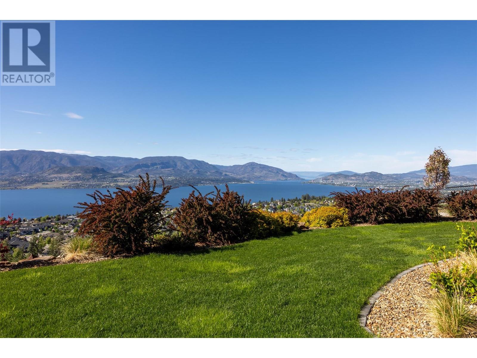 Welcome to the #1 gated community in Upper Mission: The Edge. This custom built West Coast Contemporary home with 2 garages is a car collectors dream and situated in the hills of Kettle Valley with simply incredible lake+valley+city views. Built by the current owners in an exclusive gated community, this home features rich elements of natural wood and stone combined with many smart home modern features. 5000 sq.ft . 4bdrm + 4 bath on a 1/2 acre lot. Open concept main floor with chefs kitchen+ custom wine cellar, hand crafted glass bar countertop, smart Control 4 lighting, blinds, heat and audio/video. Spacious primary bdrm suite and large home office, mudroom and laundry on the main floor. Below is a huge family room, grandkids play room, home theatre plus 3 bdrms and ample storage and best in class mechanical w/radiant heat. Attached garage has room for 3 vehicles plus toys and the detached garage/shop has room for an additional 3 w/lifts added. 220 power. Outside is a gorgeous lakeview deck with fire table and bbq, below is a covered deck w/hot tub and water feature. Protected land in front with no immediate homes/roofs in the view. Room to add a pool. The Edge is the ultimate in upscale living with great neighbors and a well run bare land strata. (id:6770)