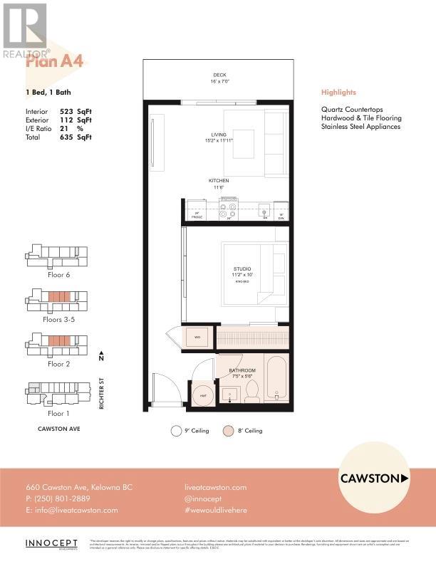 Welcome to Cawston! #410 is a beautiful well laid out 1bdrm; one of the most sought after plans in the building. Cawston is an 82 unit artfully designed development in the heart of downtown Kelowna offering appealing and convenient places to call home. The building was designed to be harmonious with the local community with consciously selected sustainable building materials & high-quality finishings. Located on the fourth floor facing north overlooking Knoxx Mountain and the city of Kelowna #410 offers a quiet and private dwelling. Bike to the Boardwalk, meet friends for happy hour, or go for a swim in the lake after a hike – all within minutes of your doorstep. (id:6770)