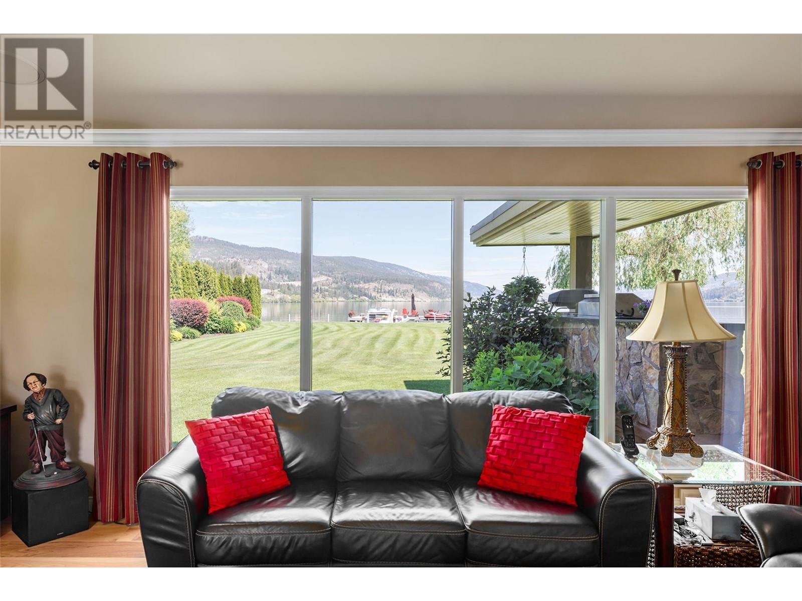 This is the very best waterfront lot on Woods Lake, which is the best swimming and waterski lake in the Sunny Okanagan…great fishing as well in the pristine clear waters! Three Bedrooms and three bathrooms with over a 1/2 Ac with 124 feet of sandy beach and a dock with composite decking and lifts for both boat and seadoo. The Ranch Style home is just under 2000 sqft and features two ensuite bathrooms and superb finishing throughout. A large stamped concrete covered patio allows you and your visitors to fully enjoy every season. The Master suite features a custom walk-in closet area and ensuite. Look at the amazing lake view and beyond to the surrounding hills, orchards out to the adjoining Kalamalka Lake. The garage features epoxy flooring, ample shelving and two separate shops for storage and tinkering. You are minutes from wineries, shopping, the Okanagan Rail Trail, parks, access to Kalamalka Lake, Okanagan Lake & Kelowna International Airport. This exceptional property offers the ultimate in lakeside living and lifestyle—don’t miss your chance to own a slice of paradise in the Okanagan. (id:6770)