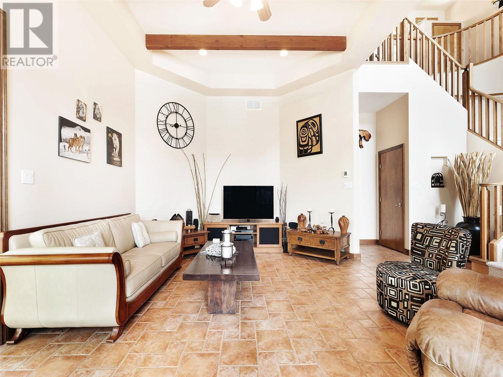 Custom Lakeshore Retreat on a Quiet Bay Nestled in a tranquil bay, this custom lakeshore home blends luxury, privacy, and natural beauty. Set on a coarse granite sand beach, it offers an exceptional waterfront lifestyle with added seclusion from adjacent undeveloped shoreline. The main floor is designed for open-concept living and entertaining, with soaring vaulted ceilings and a striking two-story layout. A grand rock wood-burning fireplace anchors the space and separates the main living area from the private master suite. Expansive windows frame breathtaking lake views that fills the home with natural light. The chef’s kitchen features granite countertops, a large custom island, high-end cabinetry, and a generous walk-in pantry. A spacious dining area seats ten comfortably. A dedicated wine cellar adds to the home’s appeal. At the rear, a large recreation area with coffered ceilings is accessible from three sides—perfect for gatherings or relaxing family time. The home is roughed in for a future elevator, with a designated chase starting in the garage. Multiple decks and a two-sided outdoor fireplace provide year-round enjoyment and stunning views. Set on a low-maintenance lot with native vegetation, this home is designed for easy living. Enjoy the panoramic lake views, natural surroundings, and direct access to a shared dock. Furniture negotiable. Tile looking metal roof A true lakeside retreat—crafted for comfort, style, and lasting memories. (id:6770)