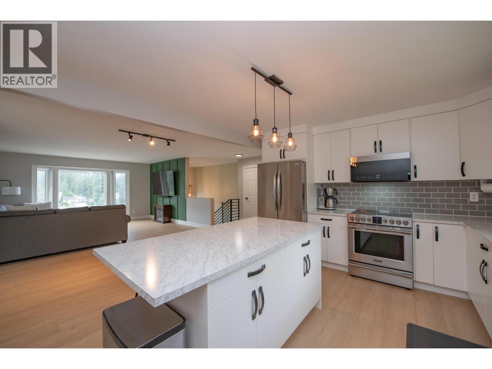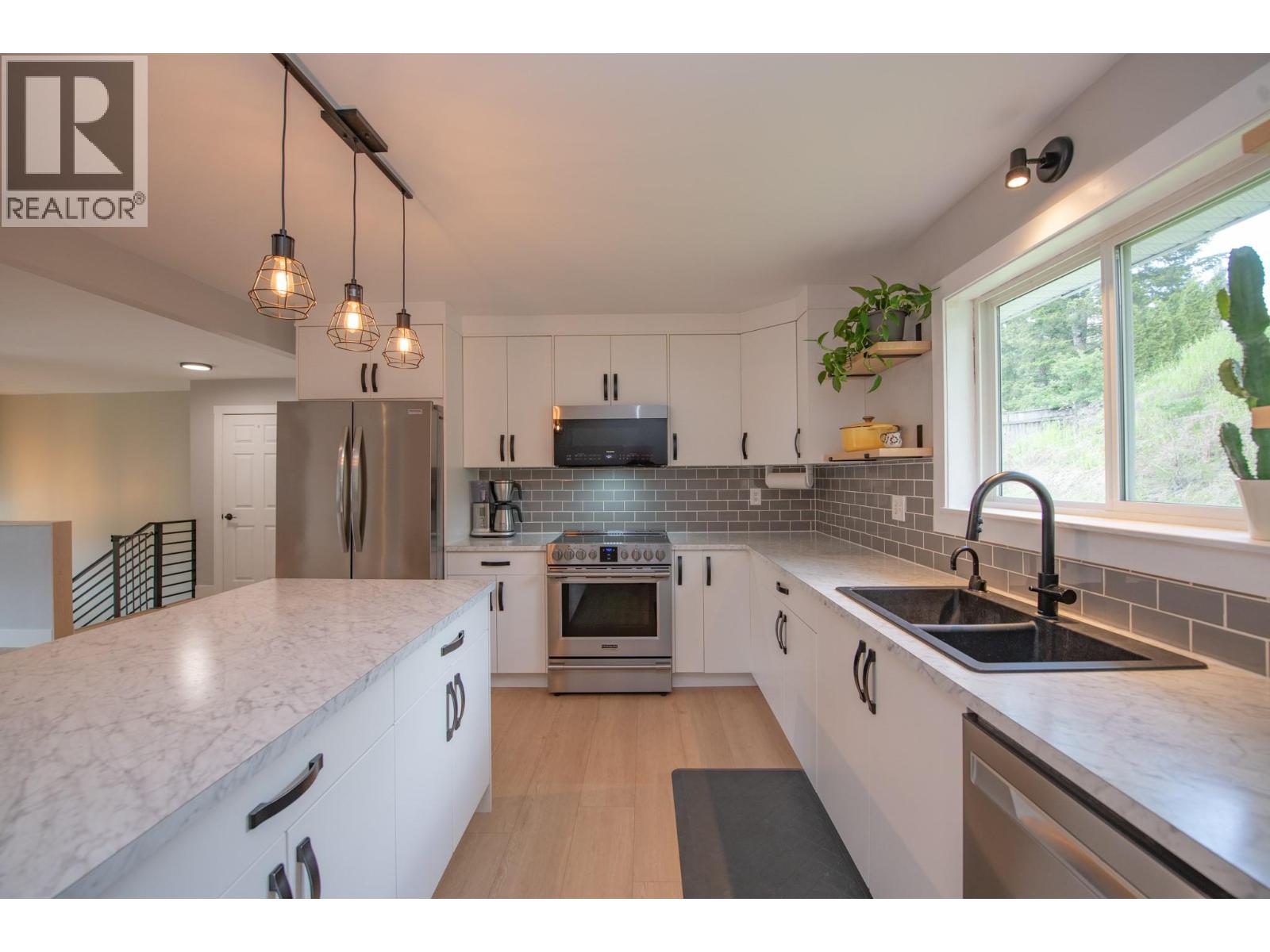 Fabulously updated home in Lumby with a private back yard and great valley views from the front. This home is perfect for the growing family with 4 bedrooms- all with walk in closets & 2 with ensuites- and another full main bathroom and laundry on the main floor. Lots of storage in the basement with the extra 800 sq ft unfinished area which can be made into another room for play or work. Backyard has been leveled to enjoy outdoor living with a stone patio, 8 person hot tub, chicken coop, room for fire pit as well as lots of space to run and play. New fencing around majority of the yard plus a 2-3ft retaining wall. New roof and hardie siding, hot water tank, front entry steps and front door, A/C, ceiling, paint, appliances, new office/dining space, 200 AMP upgrade, updated bathrooms and flooring. Honestly, it would be easier to tell you what hasn't been done! Parking spot available above home for RV or boat. Being close to schools and town, this is a must see home! (id:6770)