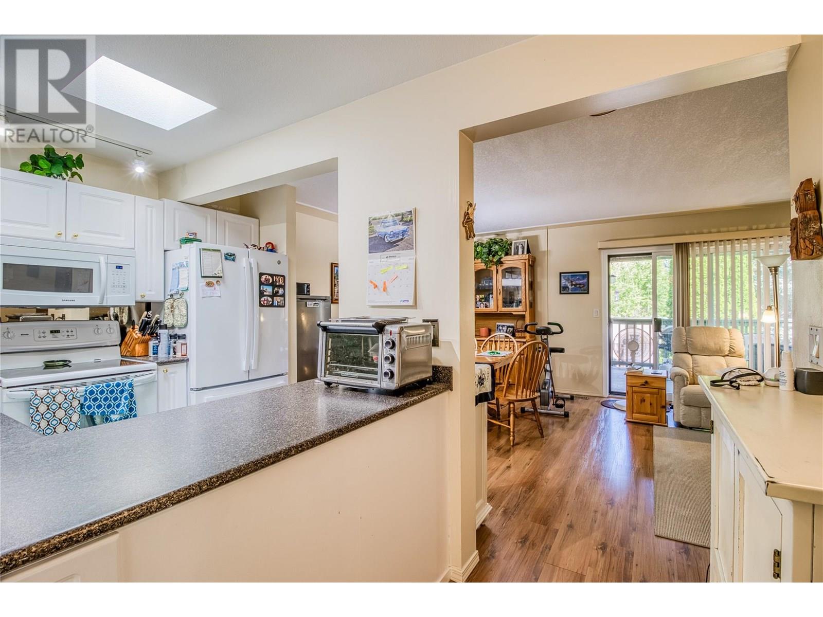 Live the Sweet Life at Holiday Park Resort! This delightful 2 bed, 2 bath unit offers the best of Okanagan living with two private balconies—perfect for soaking up sunshine or enjoying your morning coffee. The kitchen and dining area flow together in a warm, open space, featuring classic white cabinetry, matching white appliances, and a skylight that brings in natural light—ideal for both everyday living and entertaining. This home offers exceptional flexibility as one of the few in the region that allows both short-term and long-term rentals—a standout choice for investors, seasonal visitors, or full-time residents. Set within a secure, gated community, residents enjoy a wide range of resort-style amenities including 3 pools, 2 hot tubs, a gym, woodworking shop, private beach, golf course, and an adult recreation center full of social and fitness activities. Dine at the all-new Thyme licensed restaurant that adds even more vibrancy to the neighborhood. The community sits beside the scenic Rail Trail, ideal for biking, walking, and outdoor adventures. There’s also convenient on-site storage for household goods and recreational vehicles. Holiday Park is just 10 mins from YLW and close to UBCO, making it appealing to students, travelers, and retirees alike. Explore the Okanagan lifestyle—wine tours, boating, skiing, hiking and more! Don’t miss this rare opportunity to own in the sought-after, amenity-rich Holiday Park Resort! (id:6770)