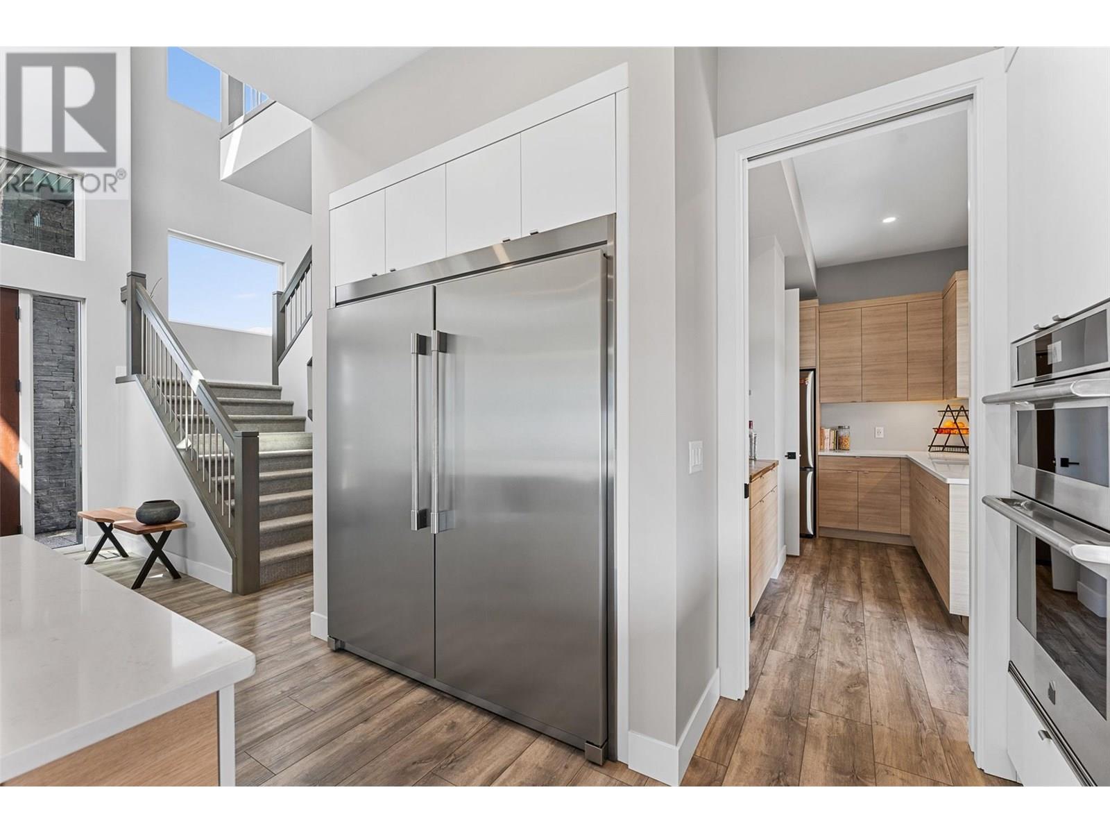 Gorgeous modern home in McKinley Beach where elevated Okanagan living meets thoughtful design & panoramic lake views. Situated on a rare 0.374-acre lot, this estate boasts a spacious family layout with resort-style amenities, expansive indoor-outdoor living, & a self-contained 2 bed/1 bath legal suite. The main level impresses with soaring ceilings, a chef’s kitchen featuring JennAir appliances, a massive island, & a seamless connection to the covered deck—perfect for al fresco dining. The luxurious primary suite enjoys sweeping lake &valley views, a spa-inspired ensuite, & a walk-through dressing room. A bright office, large pantry, powder room, & laundry complete this level. Downstairs, entertain in style with a rec room, wet bar with pass-through windows, wine cellar, & direct walkout access to the backyard oasis, featuring a heated saltwater pool, hot tub, & built-in firepit. Three additional beds & two baths offer flexibility. Upstairs, a versatile loft space is ideal for a home office or gym. The legal suite offers privacy & comfort with a separate deck, laundry, & private entrance. A highlight of this home is the 1300+ sq ft garage with cabinets, separate heat, & hard wired for network. Located minutes from the marina, airport, UBCO, wineries, & golf. Residents enjoy exclusive access to McKinley’s amenity centre with gym, pool, hot tub, pickleball, & more. This is a rare opportunity to own one of the most versatile & beautifully appointed homes in McKinley Beach. (id:6770)