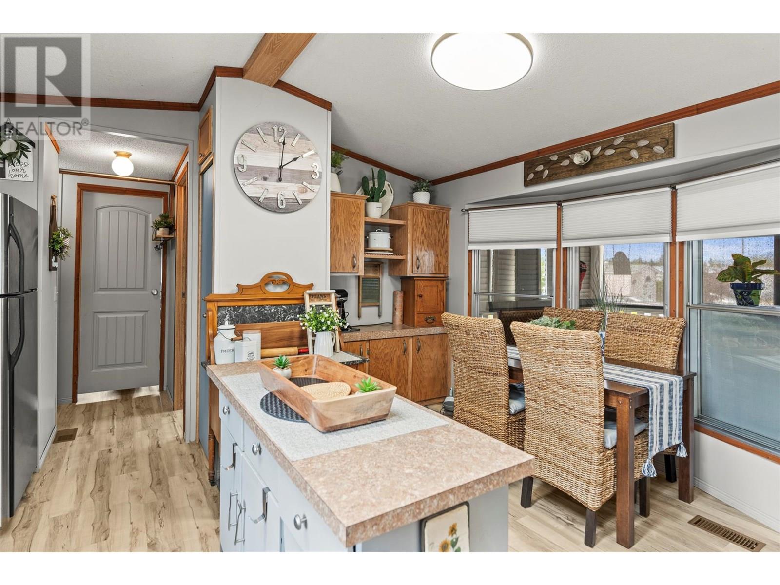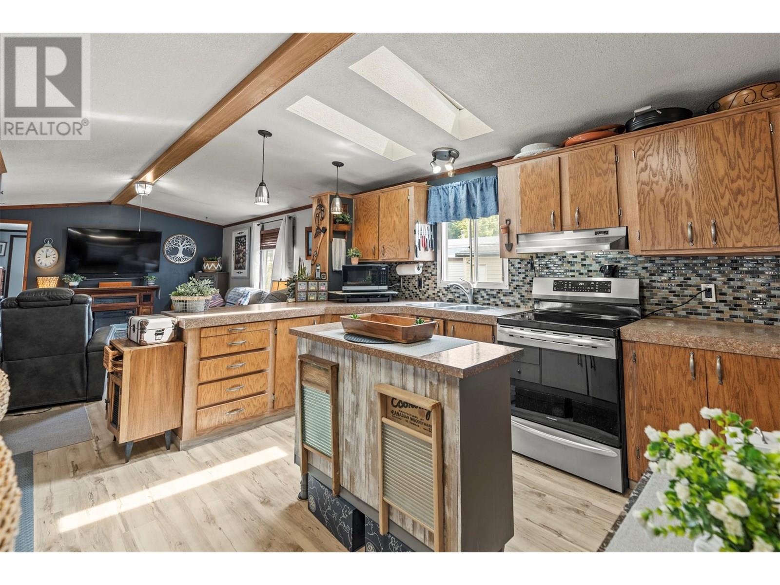 Welcome to Belaire Estates in Lake Country—where comfort meets craftsmanship just minutes from lakes, trails, and amenities. This beautifully updated 2-bedroom, 2-bathroom home is designed for effortless living with thoughtful upgrades throughout. The open-concept layout is filled with natural light from three tinted skylights, enhancing the stylish vinyl plank flooring that flows seamlessly throughout. Wall strips have been removed and professionally plastered for a sleek finish with fresh new paint, and all doors and hardware have been upgraded to elevate the overall aesthetic. The kitchen offers generous counter space and connects effortlessly to the dining and living areas—perfect for relaxed entertaining. Bedrooms are ideally placed on opposite ends for added privacy, while the guest bathroom features modern updates. Step outside to your fully fenced yard, large covered patio, three exterior water outlets, and a hot tub ready for year-round enjoyment. The garage is a true standout: oversized, freshly painted, outfitted with abundant power outlets, and previously used as a mechanic’s workshop with a separate man cave area—ideal for hobbies, guests, or creative space. Additional upgrades include PEX plumbing, extra insulation under the home for cold weather protection, and a 2023 roof inspection. 1 pet under 30 lbs allowed. 650+ credit score required. Head lease until 2114. Contact me today for your private tour. (id:6770)