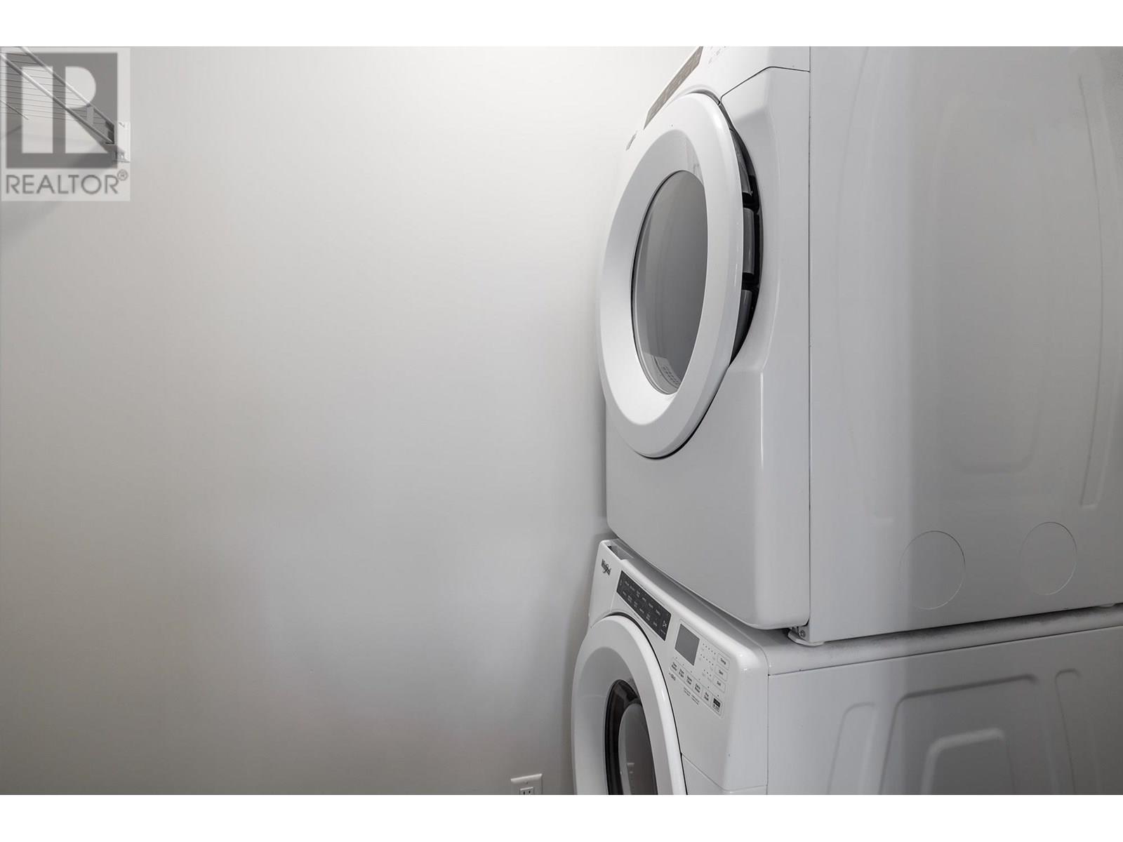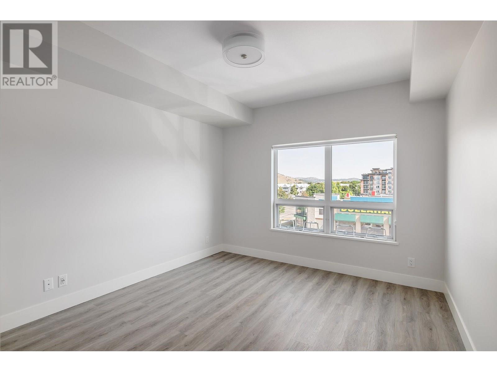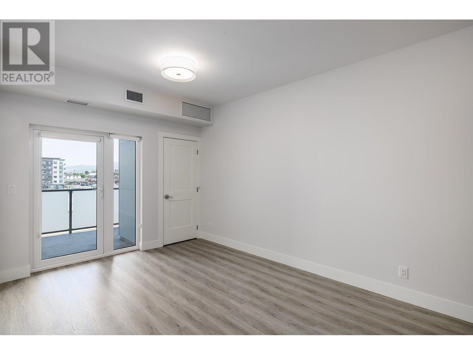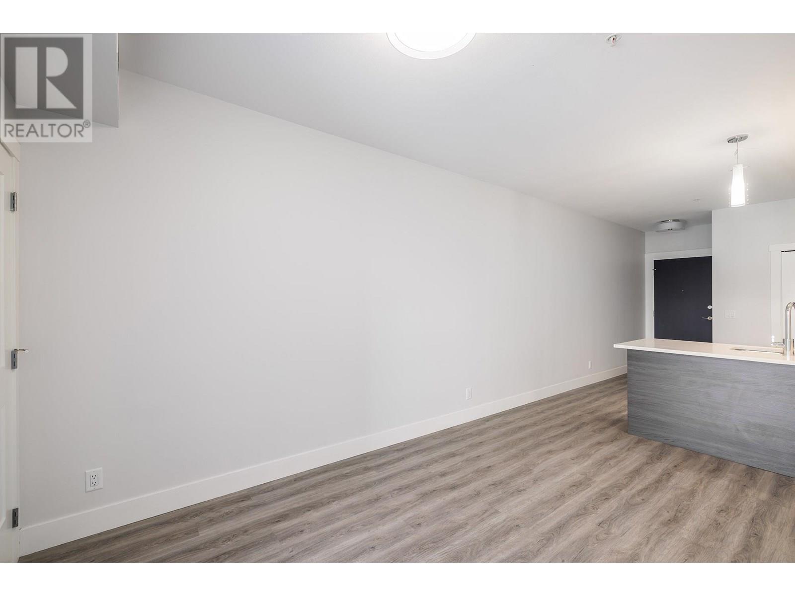 Welcome to SOHO, where modern design meets everyday convenience. This spacious 1 bedroom, 1 bathroom home offers the perfect blend of style and functionality, ideal for first-time buyers, students, or investors alike. Thoughtfully designed with an open-concept layout, 9-ft. ceilings, and large north-facing windows that fill the space with natural light. The sleek designer kitchen is a standout feature, with white shaker cabinets, rich wood-tone lowers, quartz countertops, and a Whirlpool stainless steel appliance package. Enjoy casual dining or entertaining at the oversized peninsula. The bright and airy living area flows seamlessly to a covered deck with serene mountain views, a perfect extension of your living space. Retreat to the generous primary bedroom complete with a large walk-in closet and built-in shelving. The 4-piece bathroom includes a modern vanity with quartz counters and a tub/shower combo. Additional highlights include in-suite laundry, a secure underground parking stall, storage locker, and access to amenities including a fitness centre and party room. Just minutes to UBCO, shopping, the airport, and downtown. Exceptional value in a central location. Vacant and ""like new"" . Well priced and ready for a quick sale! (id:6770)