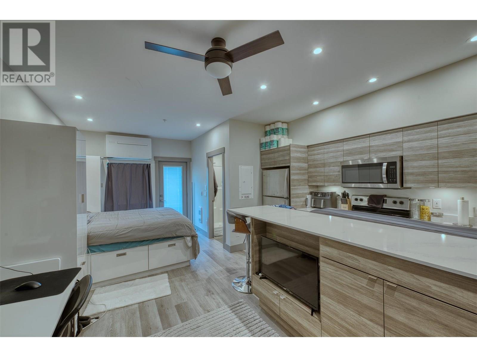 Welcome to VITA, a collection of modern studio homes just steps away from Okanagan Lake and minutes to downtown Vernon. This home offers year round comfort for full time living, or great income potential for the savvy investor! This one has a PATIO and a VIEW! Hard to find in this terrific building, this wonderful unit has a peek-a-boo lake view from the covered patio. Modern finishings throughout the home, offering a full kitchen with plenty of counter space to work with, laundry (as well as shared laundry on the 2nd floor), heat pump with A/C for the hot summer days and so much more! VITA offers comfortable living mere steps from Okanagan Lake! With an outdoor pool, pickleball court, common area with BBQ's as well as a gym, this building offers an uncomplicated lifestyle with all the amenities at your fingertips! This home comes with 1 parking stall and a storage locker, and is PET FRIENDLY. On-site complimentary EV charging stations (id:6770)