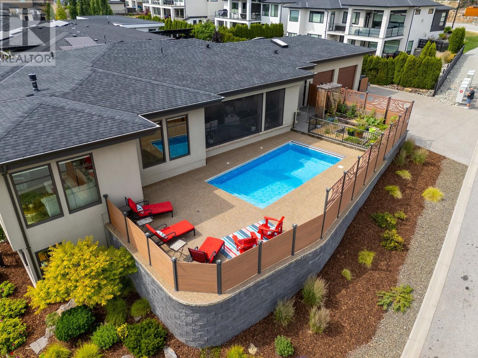 Exceptional 5-bedroom Lakeview Heights home with a legal suite, pool, and custom finishes throughout. With over 3,200 sq ft in the main residence plus a fully self-contained 932 sqft 1-bedroom suite with private entry, separate meter, no shared ductwork, this home is ideal for multi-generational living, extended family, or rental income. The main floor offers a chef’s kitchen with 48” gas/electric range, commercial-style walk-in fridge, freezer, two sinks, Urban Cultivator, beverage bar, and custom cabinetry with appliance lifts and magic corner storage. The open-concept great room features a linear gas fireplace, coffered ceilings, built-ins, and folding glass doors that lead to a 454 sq ft covered outdoor living area with a gas fireplace, pass-through window, and motorized screens. The primary suite is complete with expansive windows with lake views, a coffered ceiling, a 12’ x 7’ walk-in closet, and spa-style ensuite with soaker tub, dual sinks, walk-in shower, and private water closet. Downstairs includes two bedrooms, a media room with built-ins, a 4-piece bath, and a mechanical room with 6-zone radiant heating, 2-zone A/C, steam humidifier, and radon system. The legal suite offers a full kitchen, laundry, walk-in closet, and built-in storage. Outdoor features include a 12’ x 24’ heated pool with auto cover, oversized garage with skylights and RV plug, and an irrigated garden with underground water storage. A rare blend of design, flexibility, and lifestyle. (id:6770)