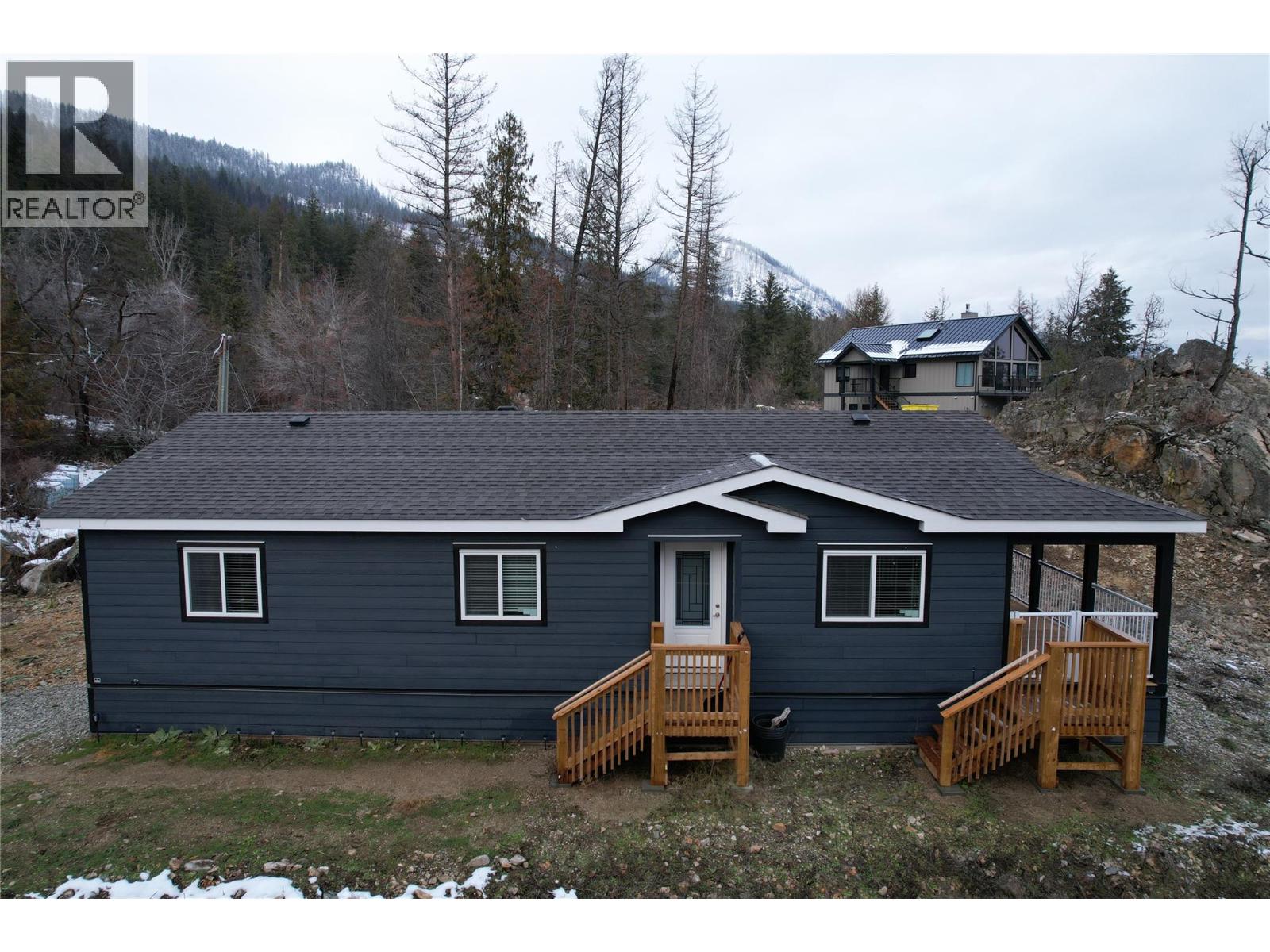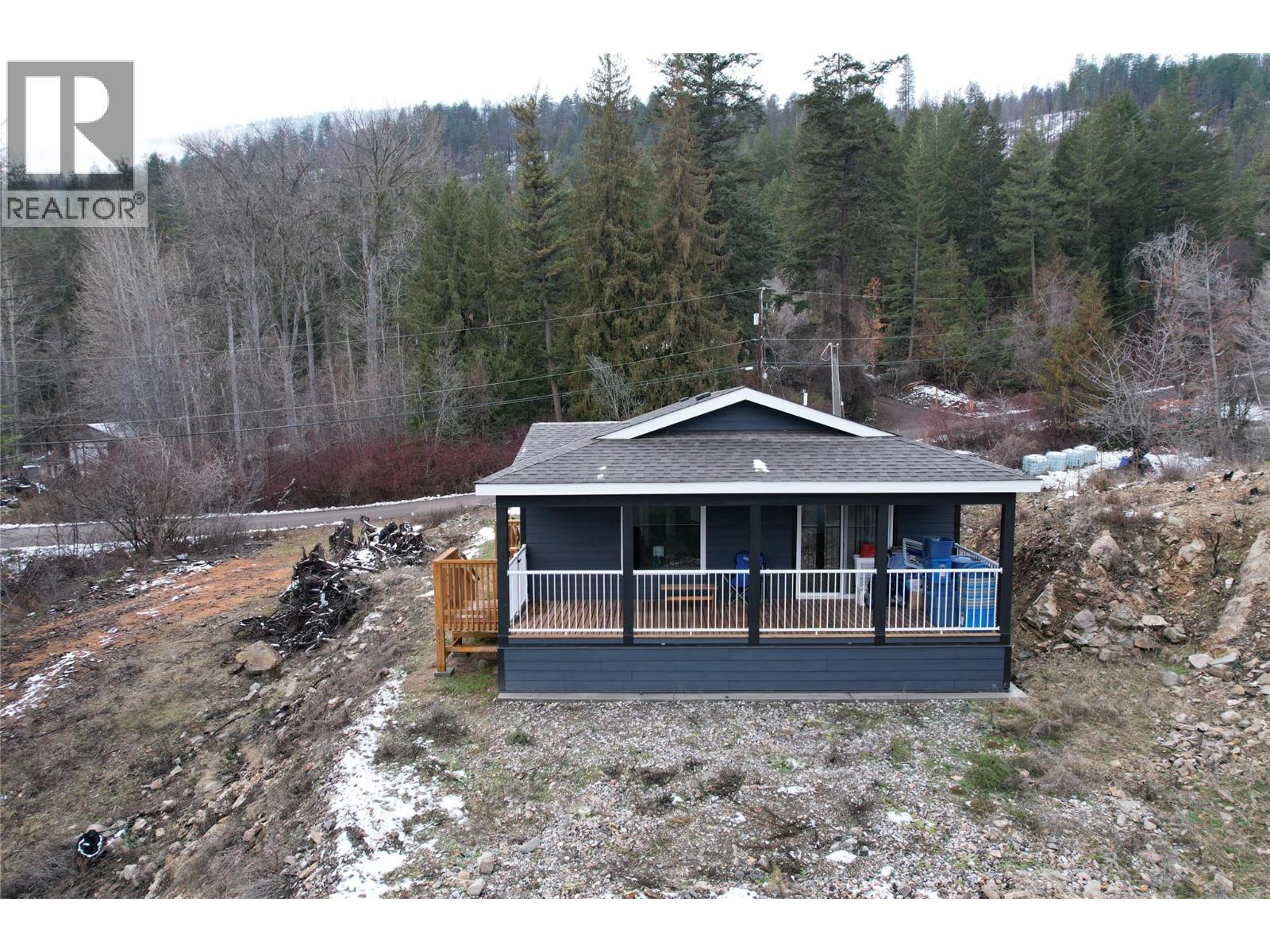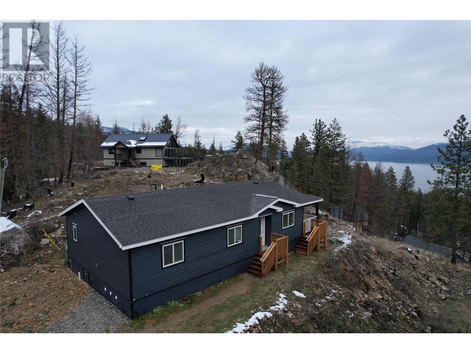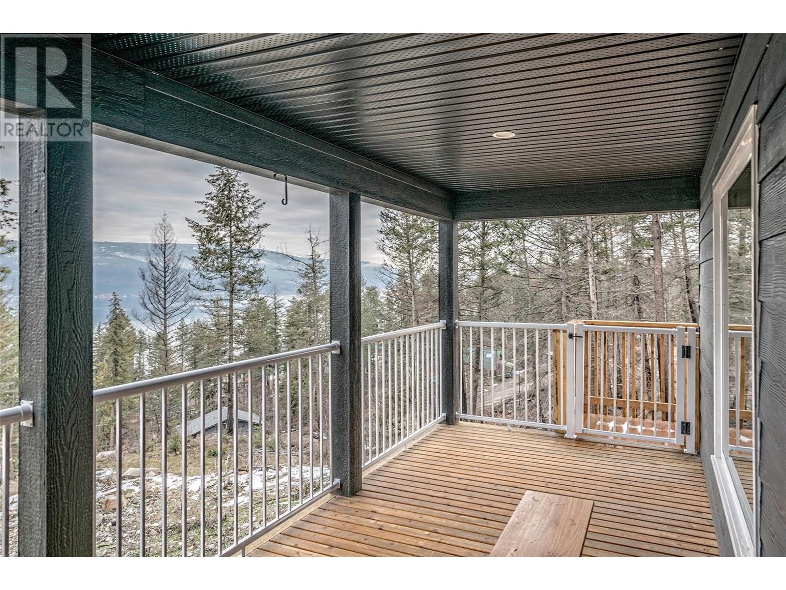 This 2 bedroom plus den, 2 bathroom, one story home was newly built in 2022. It features an open floor plan with the kitchen, living and eating space combined and access to the covered deck from the dining room. Rounding out the house is a handy laundry/storage room and a flexible den space. Enjoy some privacy from the covered deck and take in some incredible views of Okanagan Lake. The home sits on just under one acre of land that is low maintenance and offers great outdoor adventures right in your backyard. The home is an approximate 30-minute drive to Vernon and just 12 minutes to Fintry Provincial Park. (id:6770)
