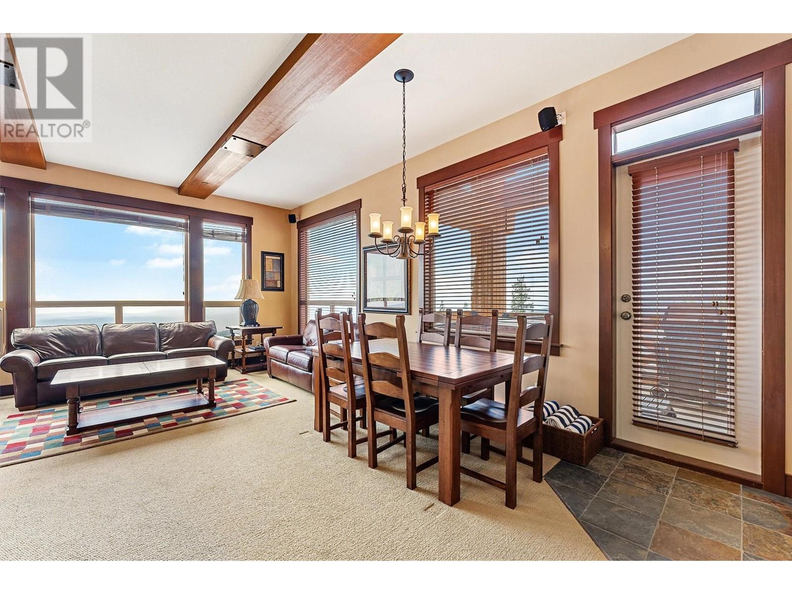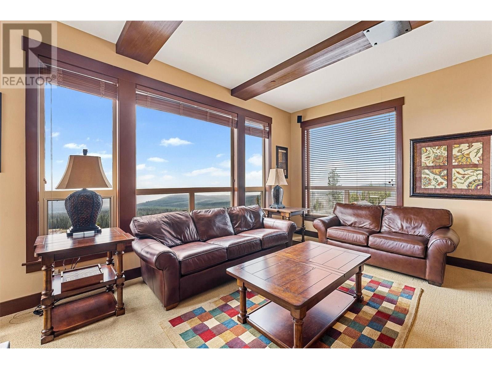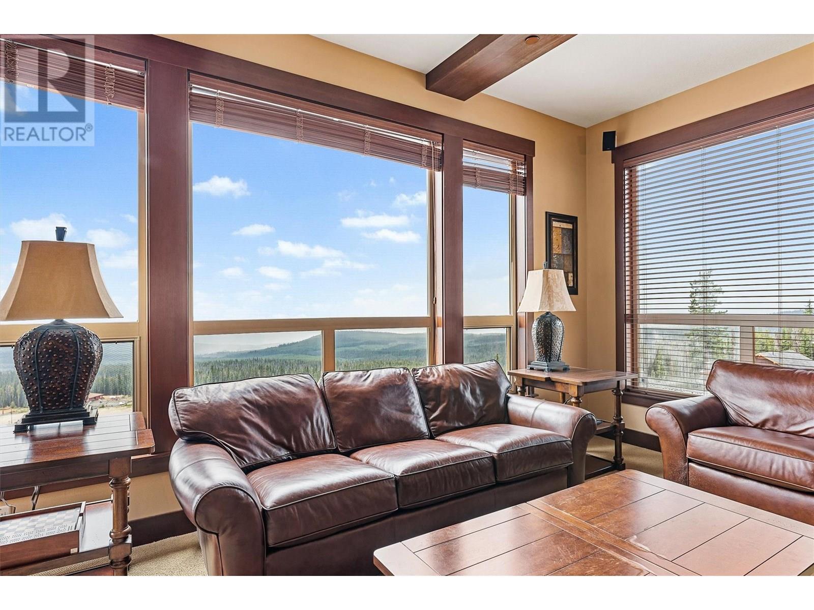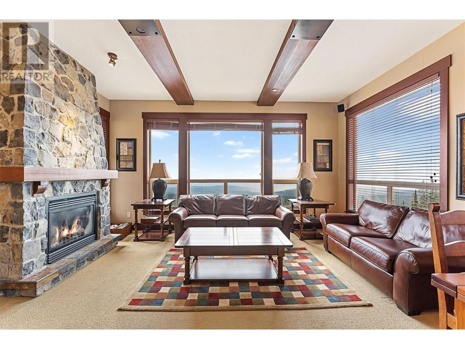 Welcome to this beautiful Three Bedroom, Two Bathroom PENTHOUSE, at Stonegate, with incredible ski in, ski out access and very close walking distance to the village. This Luxury corner unit has phenomenal unobstructed views of the Monashee Mountains as well as rich-cabin stye finishes including a striking stone fireplace and high beamed ceilings making it feel incredibly cozy. With direct access to your private hot tub from the master bedroom or the main living area, enjoy after a long day of playing in the snow. This dreamy condo features huge windows, a steam shower, granite countertops, a spacious living area, there is even room to entertain. This well cared for unit has never been in the rental pool, so in immaculate condition. There is In-suite laundry and a large storage/den room. And that's not all, enjoy the best amenities that Big White has to offer, Stonegate's incredible resort style amenities include a heated indoor/outdoor pool, theatre room, games room, pool table and poker lounge area, and a fully equipped gym. Whether you're seeking a family retreat or a year round mountain getaway, this condo delivers luxury, comfort, and lifestyle in one perfect package. (id:6770)