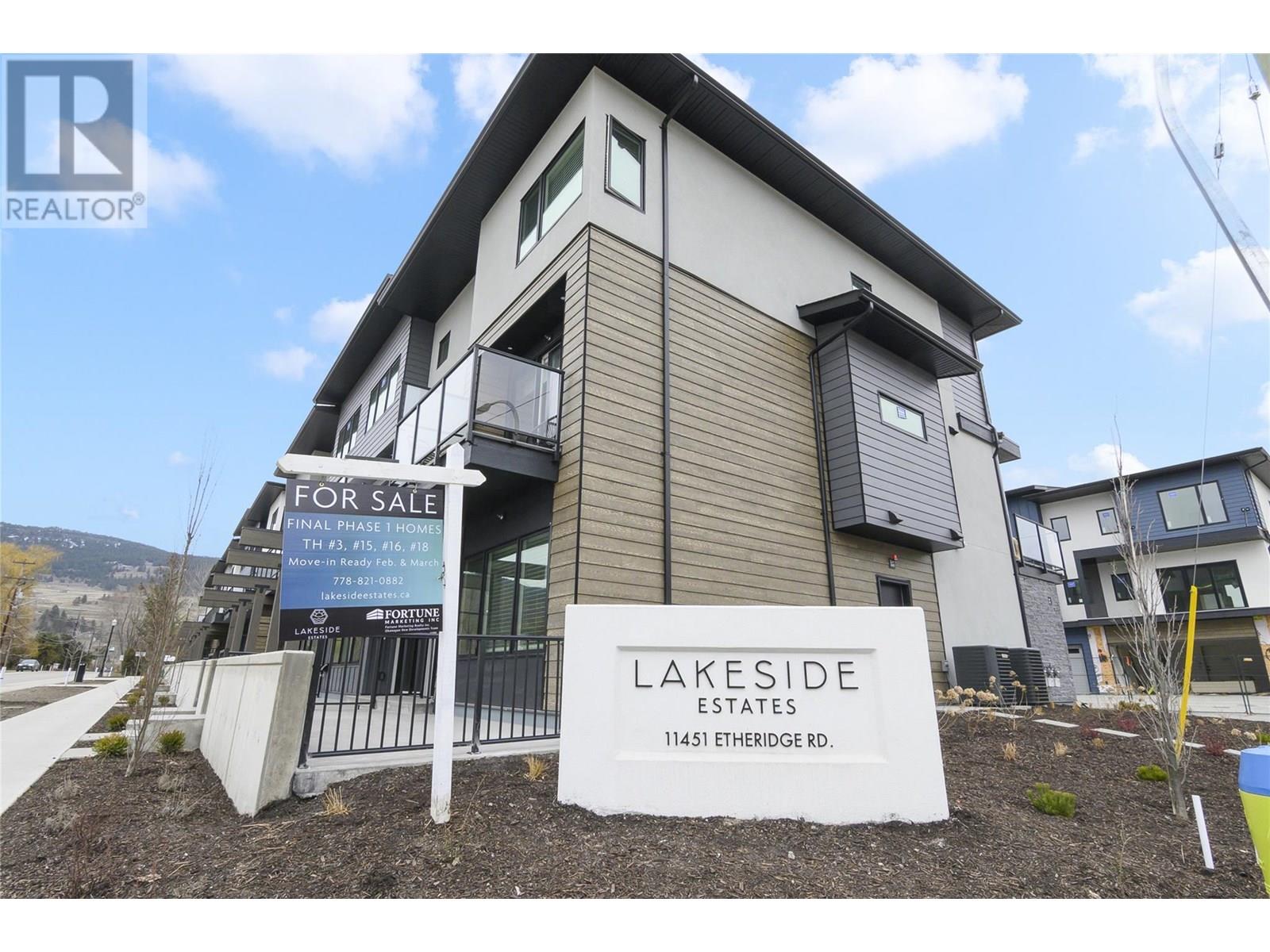 Welcome to Lakeside Estates-Remarkable Okanagan Living. June 2025 - THIS HOME IS NOW MOVE-IN READY! Spend the entire Okanagan Summer in your Brand New Home! TH#18-A2 Floor Plan w/ 3 Bedrooms+Large Den+2.5 Baths. 1715sf indoor living, 3 patios each with sliding doors+405sf double side-by-side garage +includes EV outlet! PLUS a large driveway. TH#18 is an end unit. Includes a large walk-in closet w/organizers, barn door in primary bedroom, ensuite has a tub/shower+vanity w/quartz countertops. Blinds, Navien on-demand hot water system, appliances, a natural gas range, +electric fireplace included. Outdoor living is a priority- Incl. entry-level terrace with large den perfect for home office, gym or extra guests+ large storage. You'll be welcomed home to bright sunshine filtering in from the sliding glass doors of 2 patios, one on either side of your living space, (patio off the kitchen AND patio off the living area!) Home has a spacious layout+features hints of Modern+West Coast design elements w/the lake lifestyle right at your doorstep! Quick access to internal walkways, perfect for your pets! 200m from Wood Lake, quick access to Rail Trail, Marinas, Boat Launch, Beasley Park, Beaches, Dog Beach, Tennis Courts, shopping+restaurants nearby. Close to Okanagan Lake+Kalamalka Lake access. Only 10 mins to Kelowna Airport+15 mins to UBCO, location gives you the benefits of a lakeside vacation w/conveniences of city amenities. Disclosure Statement available. +GST/Applicable Tax (id:6770)