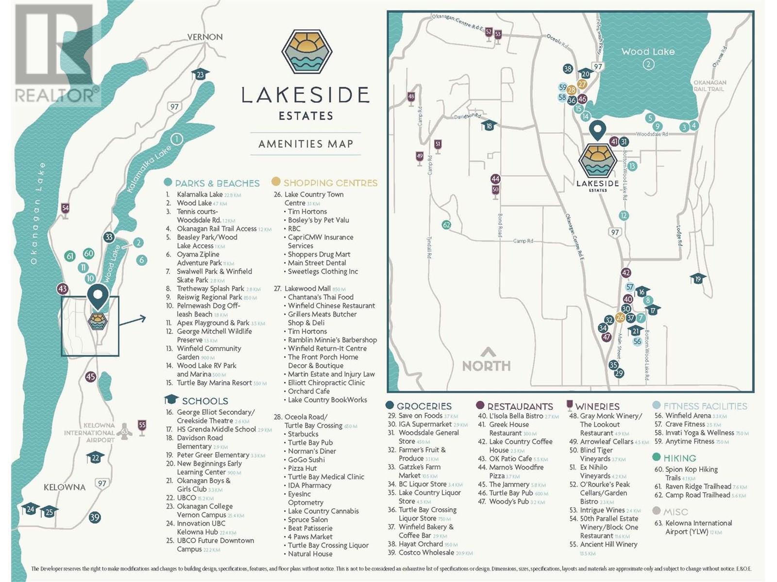 Welcome to Lakeside Estates. THIS HOME IS NOW MOVE-IN READY! Spend the entire Okanagan Summer in your Brand New Home! TH#3-B1 Floor Plan w/ 3 Bedrooms+Large Den+2.5 Baths. 1591sf indoor living, 3 separate patios+444sf double side-by-side garage (includes EV outlet!) that fits a truck. Plus large driveway for extra parking. TH#3 has a large walk-in closet w/organizers w/barn door in primary bedroom, ensuite has a walk-in shower+2 sinks. Blinds, Navien on-demand hot water system, all appliances incl. a natural gas range, & electric fireplace included. Outdoor living is a priority at Lakeside Estates. Includes fenced front patio entrance, perfect for lounging, pets and kids and is the first of 3 patios in the home! You'll be welcomed home to sunshine filtering in from sliding glass doors of the 2 patios, one on either side of your living space (patio off the kitchen AND patio off the living area). Home has a spacious layout and features hints of Modern+West Coast design elements with the lake lifestyle right at your doorstep! Quick access to internal walkways, perfect for your pets! Only 200m from Wood Lake, quick access to Rail Trail. Close to Marinas, Boat launches, Beasley Park, Beaches, Dog Beach, Tennis Courts, shopping+dining nearby. Close to Okanagan Lake and Kalamalka Lake access. Only 10 mins to Kelowna Airport+15 mins to UBCO. Location gives you the benefits of a lakeside vacation with the conveniences of city amenities. Disclosure Statement available. GST Applicable. (id:6770)