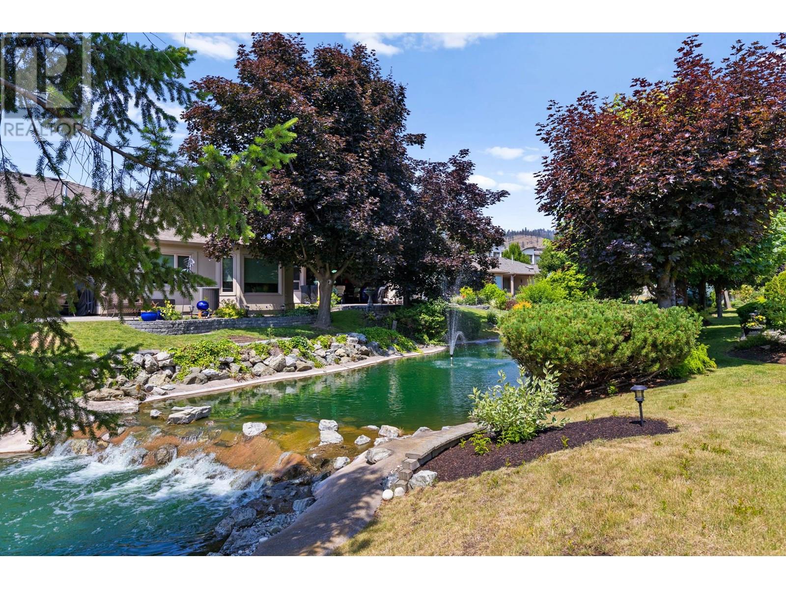 Experience the convenience of one-level living in this spacious standalone home in Sandpointe, ideally situated to capture afternoon sun and the soothing sounds of the backyard waterway with small rapids. Meticulously maintained, this rare home offers an excellent and versatile floor plan featuring a generous sized primary bedroom, an additional bedroom, a dedicated home office, a separate den, a formal dining room, and a formal living room—providing exceptional space for entertaining and having separate spaces to relax. The kitchen features a center island and a breakfast nook with bay windows overlooking the water. A sliding glass door from the kitchen leads to a private patio with peaceful views, perfect for grilling & dining, with an awning for shade. For added ambiance, the den has a gas fireplace. The primary bedroom offers ample space for a king-sized bed, full furniture set, a seating area, with an adjoining 4-piece bathroom. The patio provides views of the well-manicured lawns. A new furnace was installed in 2023, ensuring comfort and efficiency. This home includes a two-car garage and is located in one of Kelowna’s premier 55+ gated communities, Sandpointe. Residents enjoy an exceptional clubhouse with a games room, library, fitness center, and indoor and outdoor pools. Conveniently located in Glenmore, it's within walking distance to medical facilities, groceries, and Brandt’s Creek Greenway. Enjoy the best of Sandpointe living in this beautifully appointed home. (id:6770)