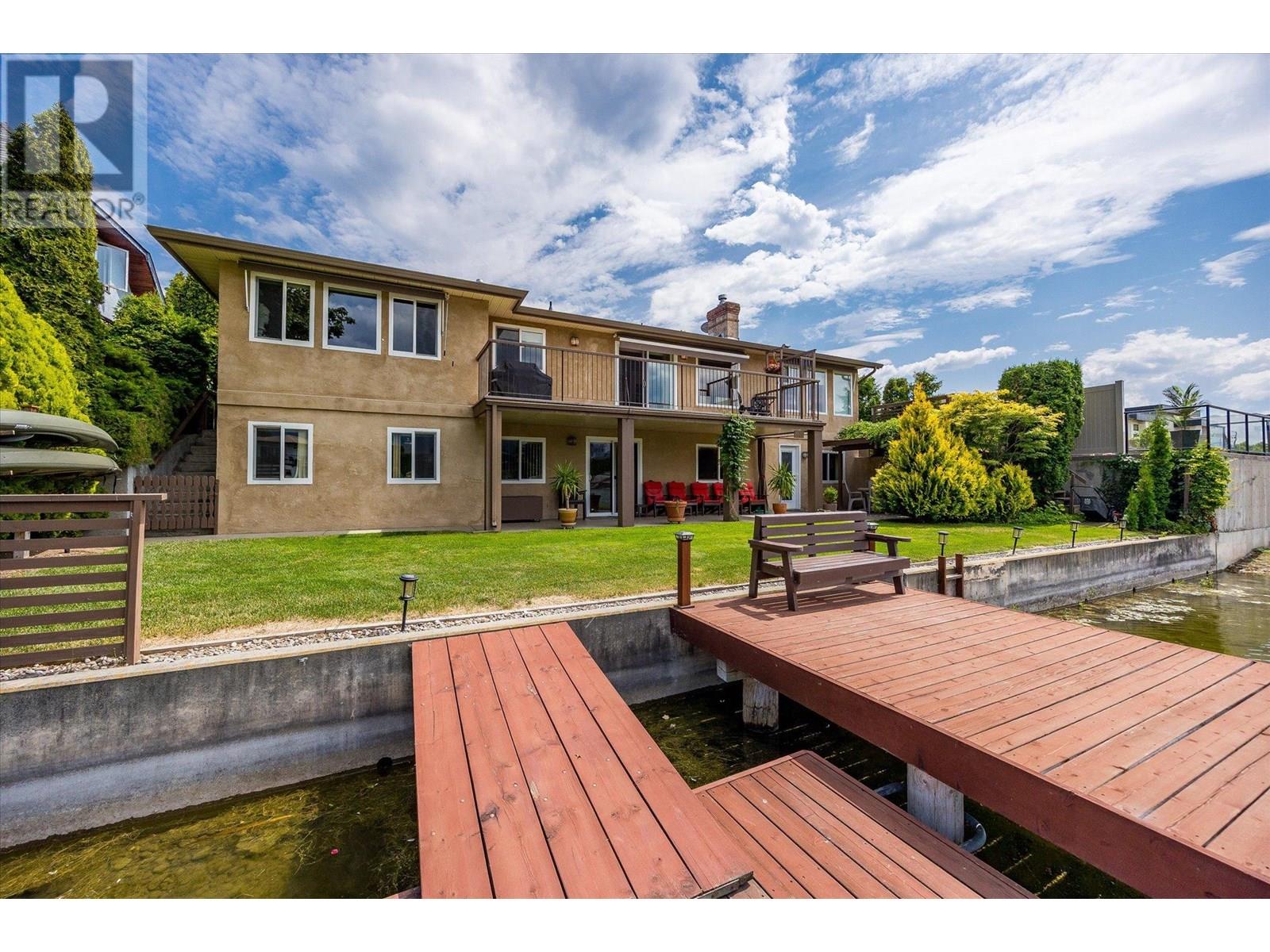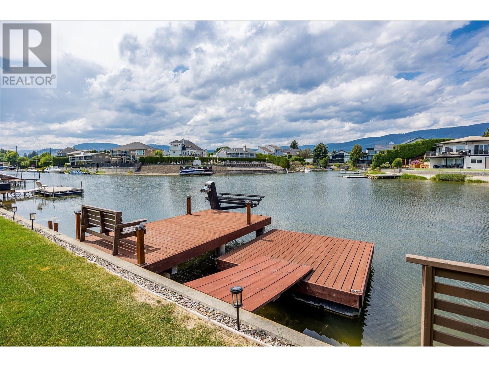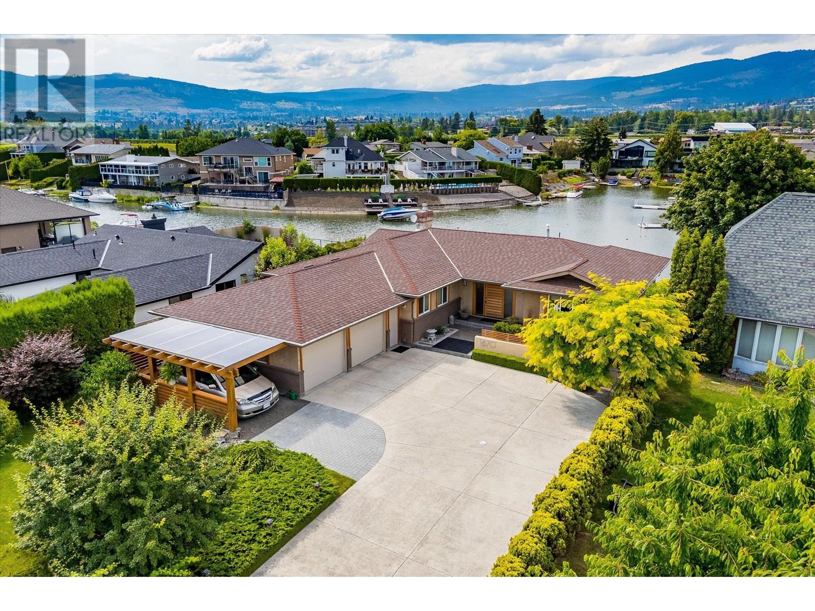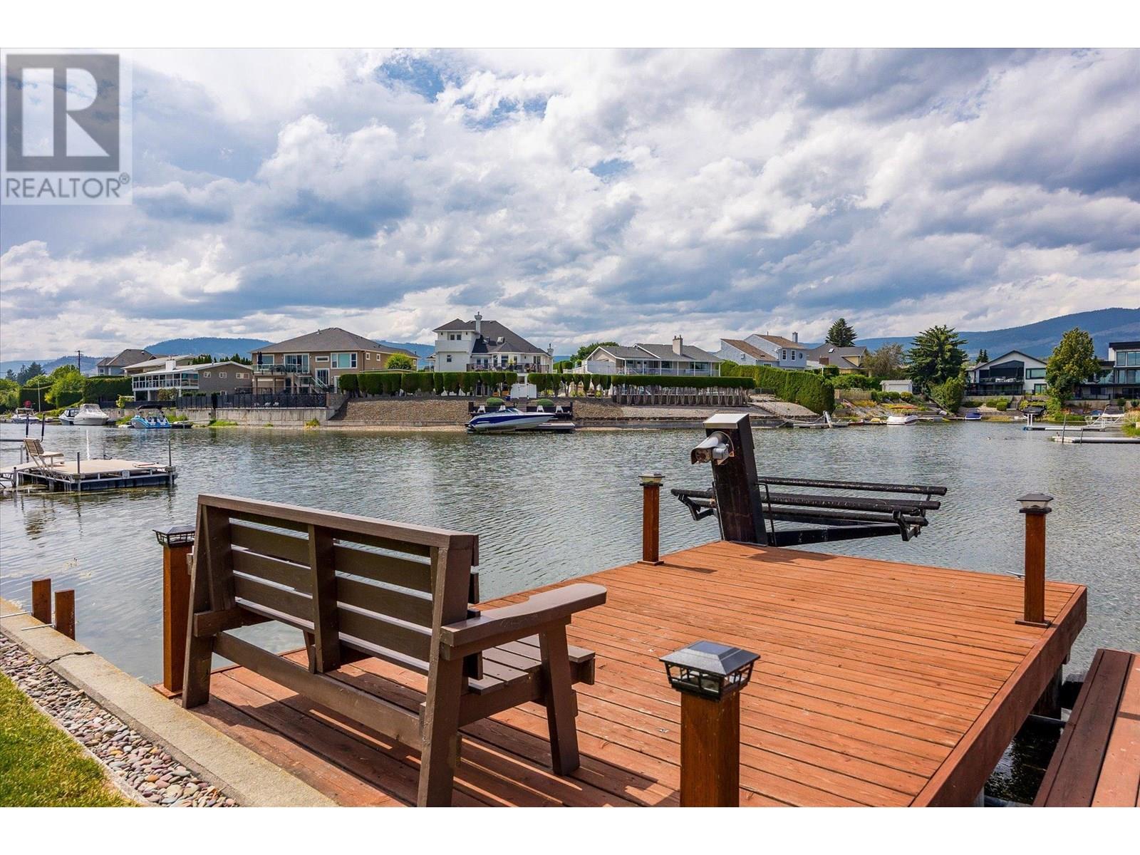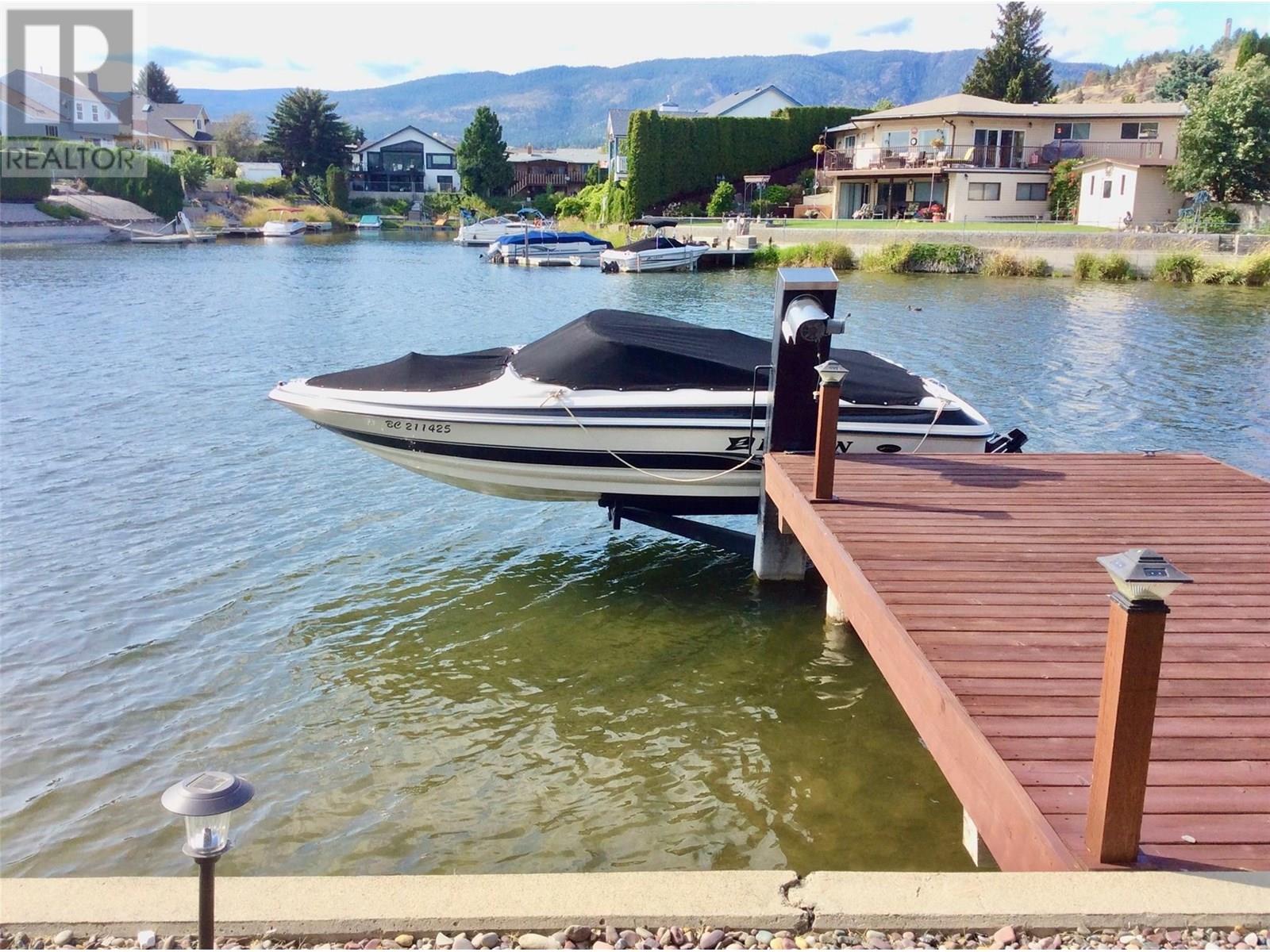 Welcome to an exceptional waterfront retreat on Pritchard Canal, where the Okanagan lifestyle comes to life. Here you will find the convenience of waterfront living without the higher tax bill. Designed for comfort and elegance, this professionally renovated 3-bedroom walkout rancher offers over 3,600 sq. ft. of luxurious living space. The bright, open floor plan flows seamlessly from the gourmet kitchen, boasting a granite island, custom wood cabinetry, stainless steel appliances, and a gas range to the inviting living areas with maple hardwood floors. The main level features a sophisticated master suite, a private office, and an inspiring art studio. Downstairs, a spacious family room, and a convenient guest or in-law suite complete with its own laundry and private entrance provide ample flexibility. Enjoy modern amenities like a Navien instant hot water system. Heading outside, you are welcomed by captivating views of the canal waterway and the picturesque Mission Hill Winery bell tower. Outdoor entertaining is a dream with a covered patio, a charming timbered pergola, a main level deck, and a beautifully landscaped, east-facing front courtyard. And as expected with a property on the waterway, this home on prestigious Pritchard Drive offers a newer dock with 4000 lb electric boat lift for your private moorage. With an impressive front entry, a double garage, covered pergola carport, this is an unparalleled opportunity to embrace the best of Okanagan living. New roof. (id:6770)