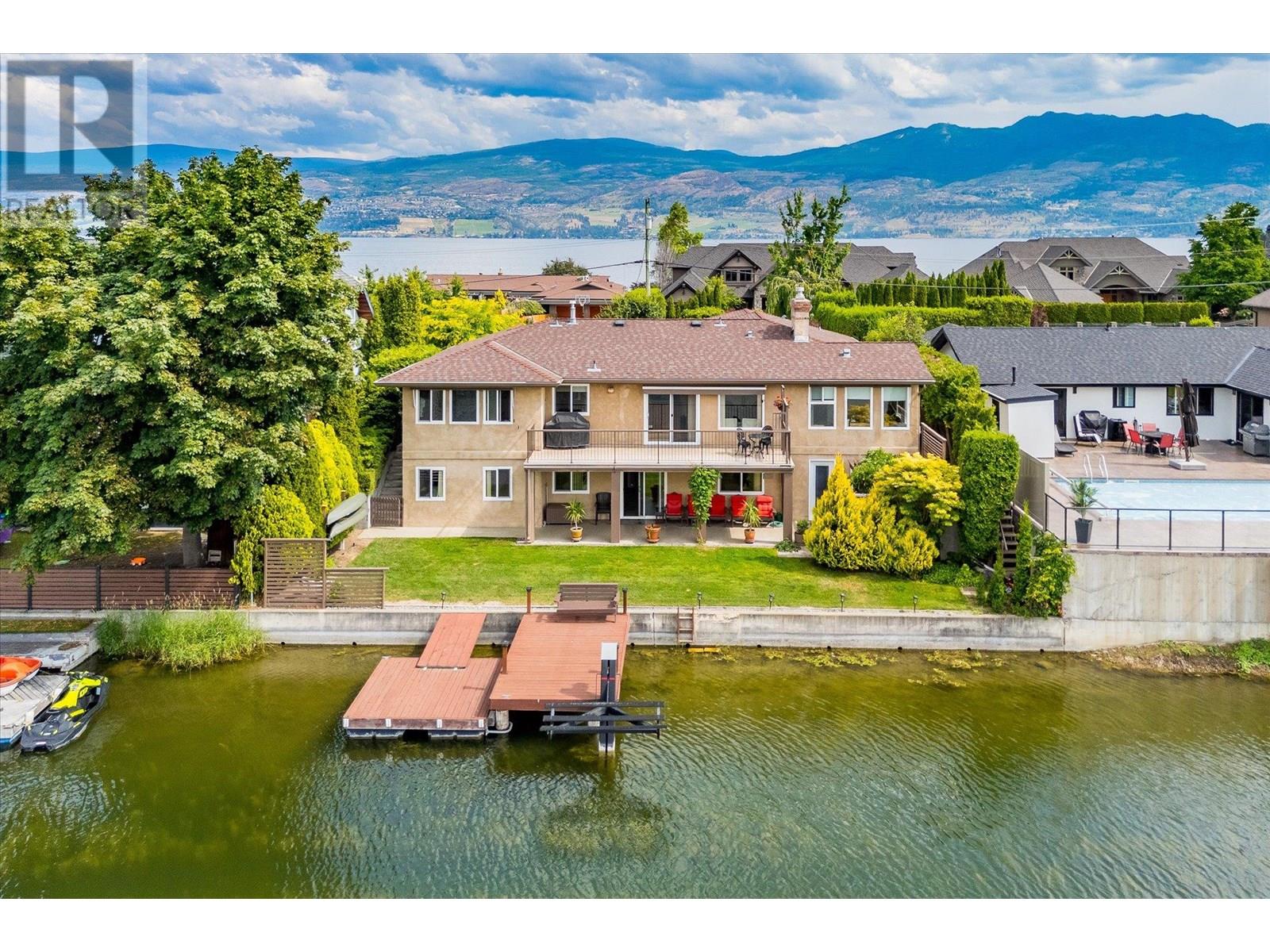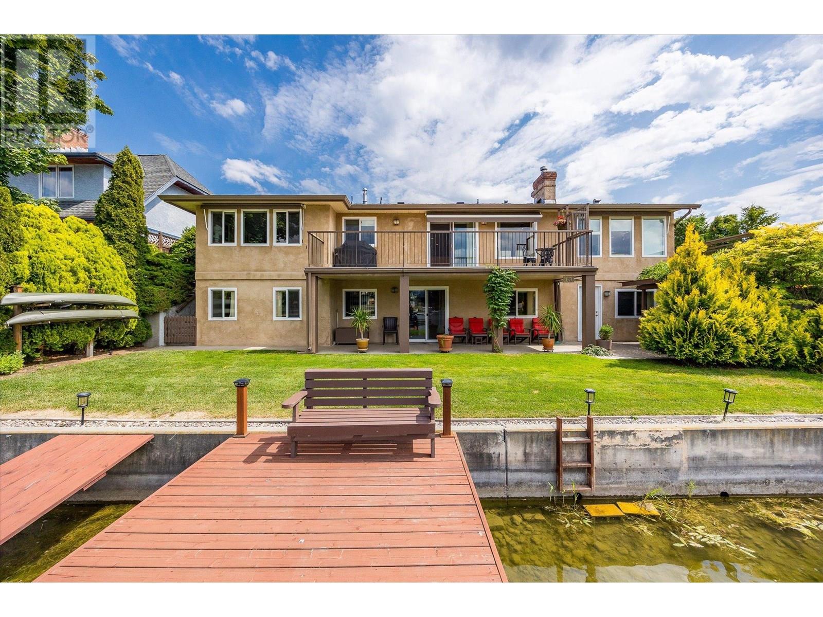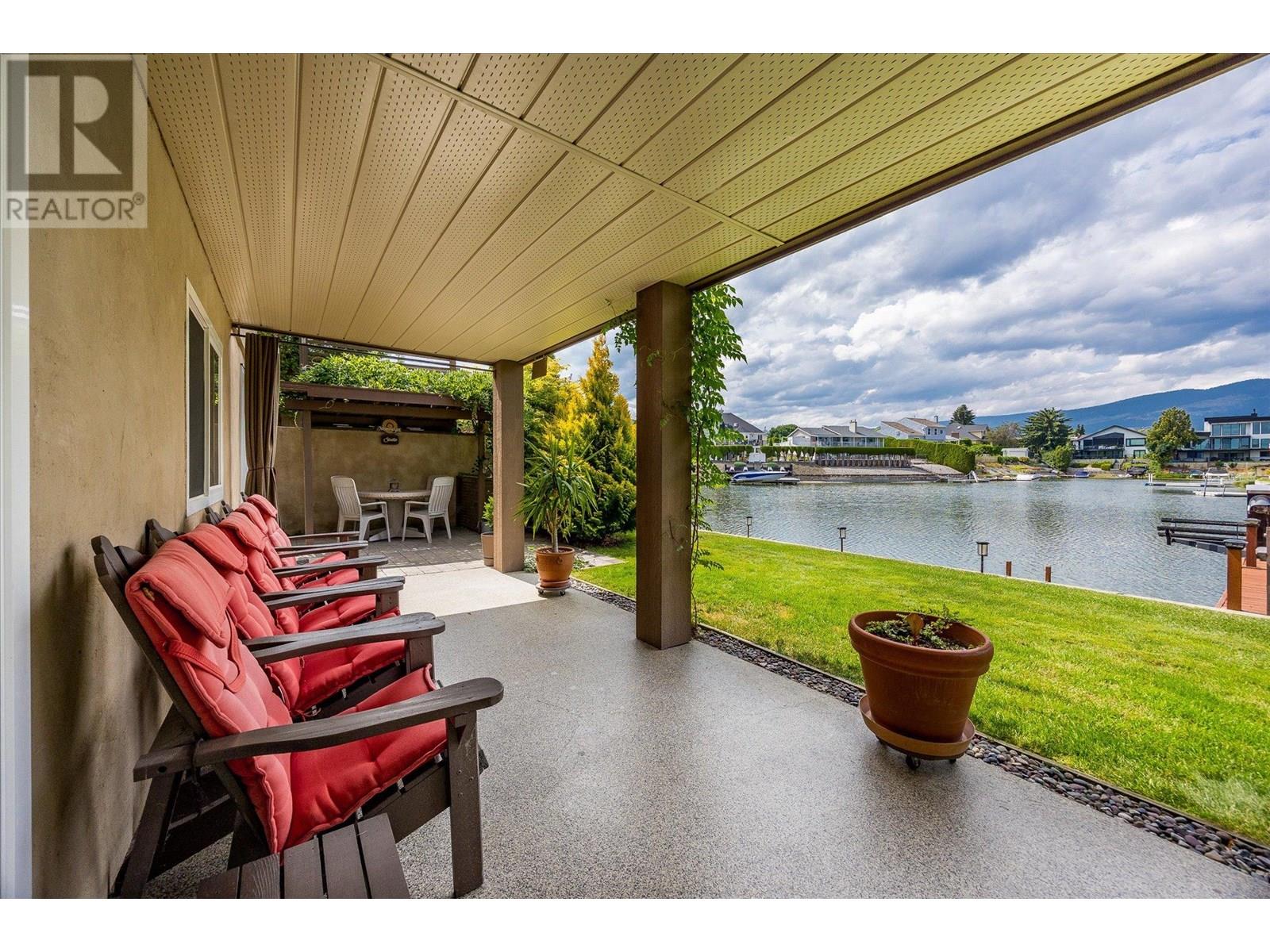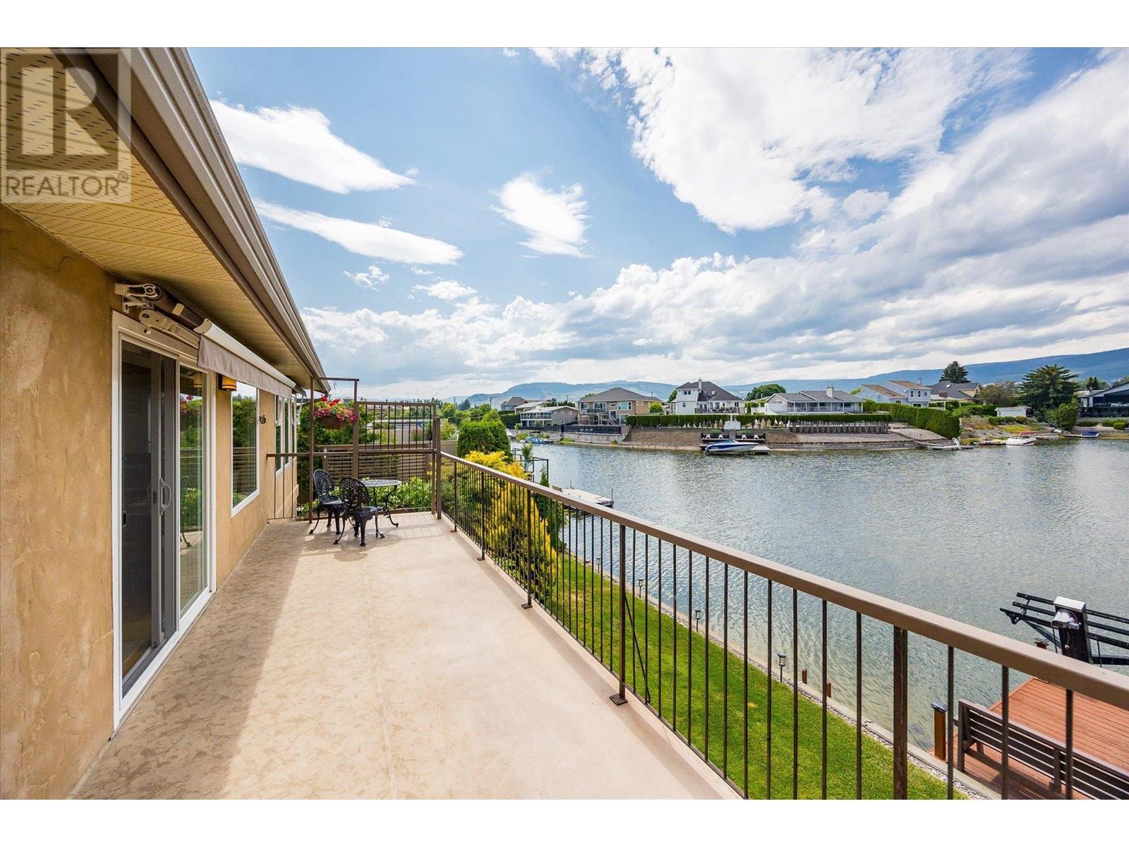 Welcome to an exceptional waterfront retreat on Pritchard Canal, where the Okanagan lifestyle comes to life. Here you will find the convenience of waterfront living without the higher tax bill. Designed for comfort and elegance, this professionally renovated 3-bedroom walkout rancher offers over 3,600 sq. ft. of luxurious living space. The bright, open floor plan flows seamlessly from the gourmet kitchen, boasting a granite island, custom wood cabinetry, stainless steel appliances, and a gas range to the inviting living areas with maple hardwood floors. The main level features a sophisticated master suite, a private office, and an inspiring art studio. Downstairs, a spacious family room, and a convenient guest or in-law suite complete with its own laundry and private entrance provide ample flexibility. Enjoy modern amenities like a Navien instant hot water system. Heading outside, you are welcomed by captivating views of the canal waterway and the picturesque Mission Hill Winery bell tower. Outdoor entertaining is a dream with a covered patio, a charming timbered pergola, a main level deck, and a beautifully landscaped, east-facing front courtyard. And as expected with a property on the waterway, this home on prestigious Pritchard Drive offers a newer dock with 4000 lb electric boat lift for your private moorage. With an impressive front entry, a double garage, covered pergola carport, this is an unparalleled opportunity to embrace the best of Okanagan living. New roof. (id:6770)