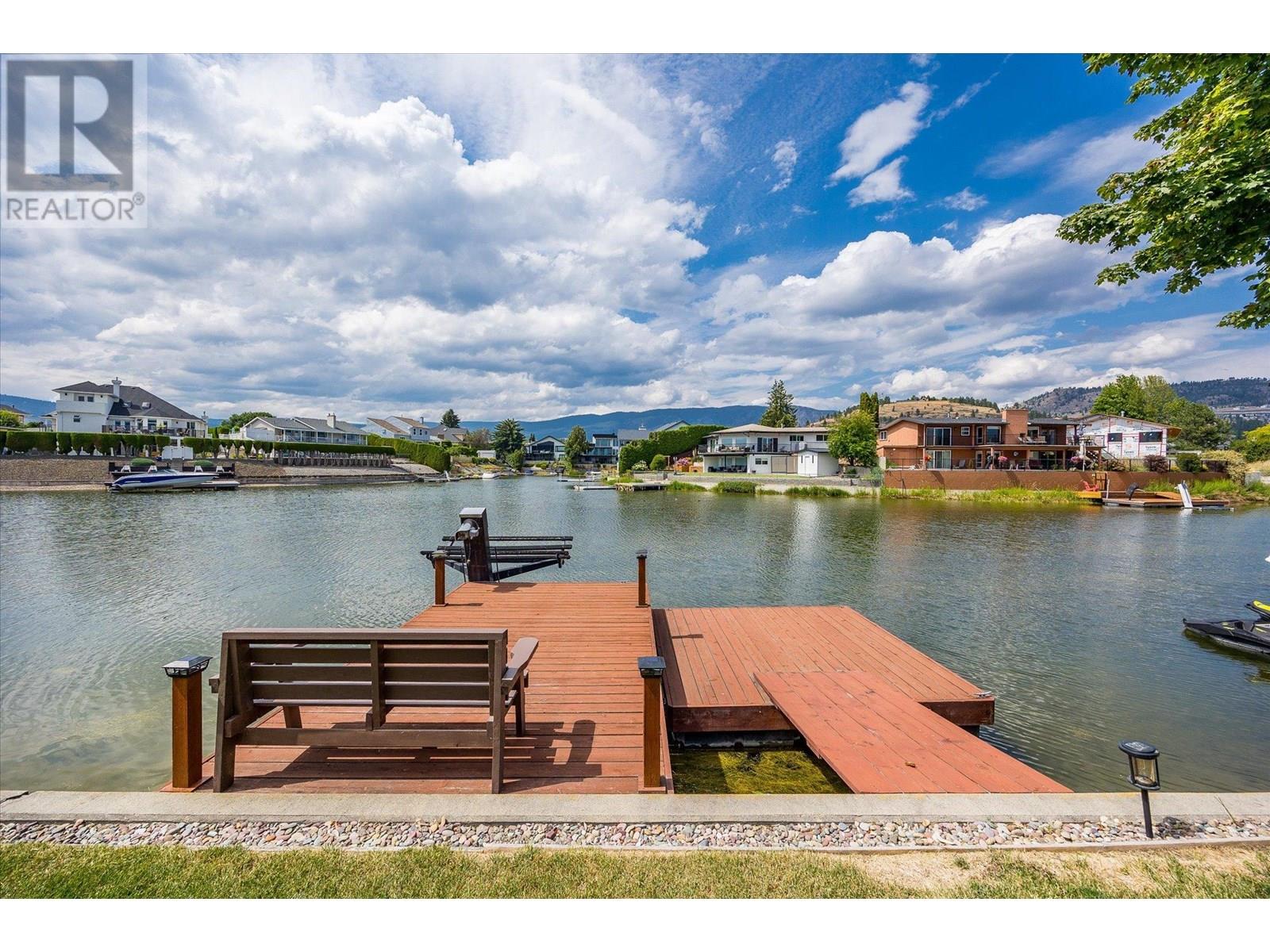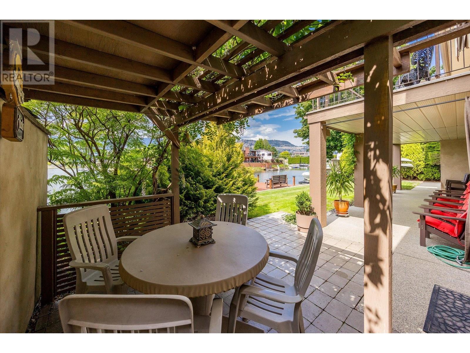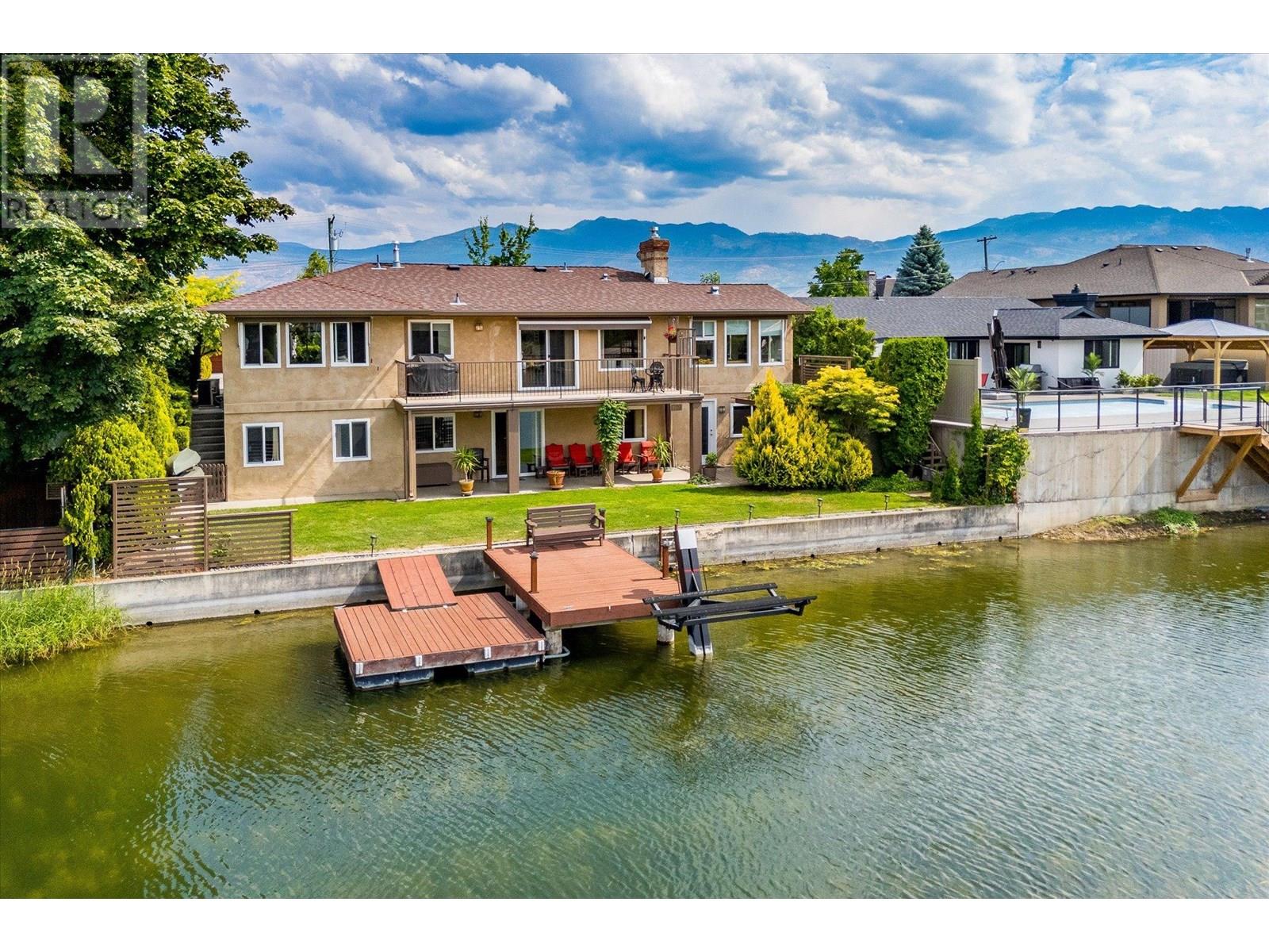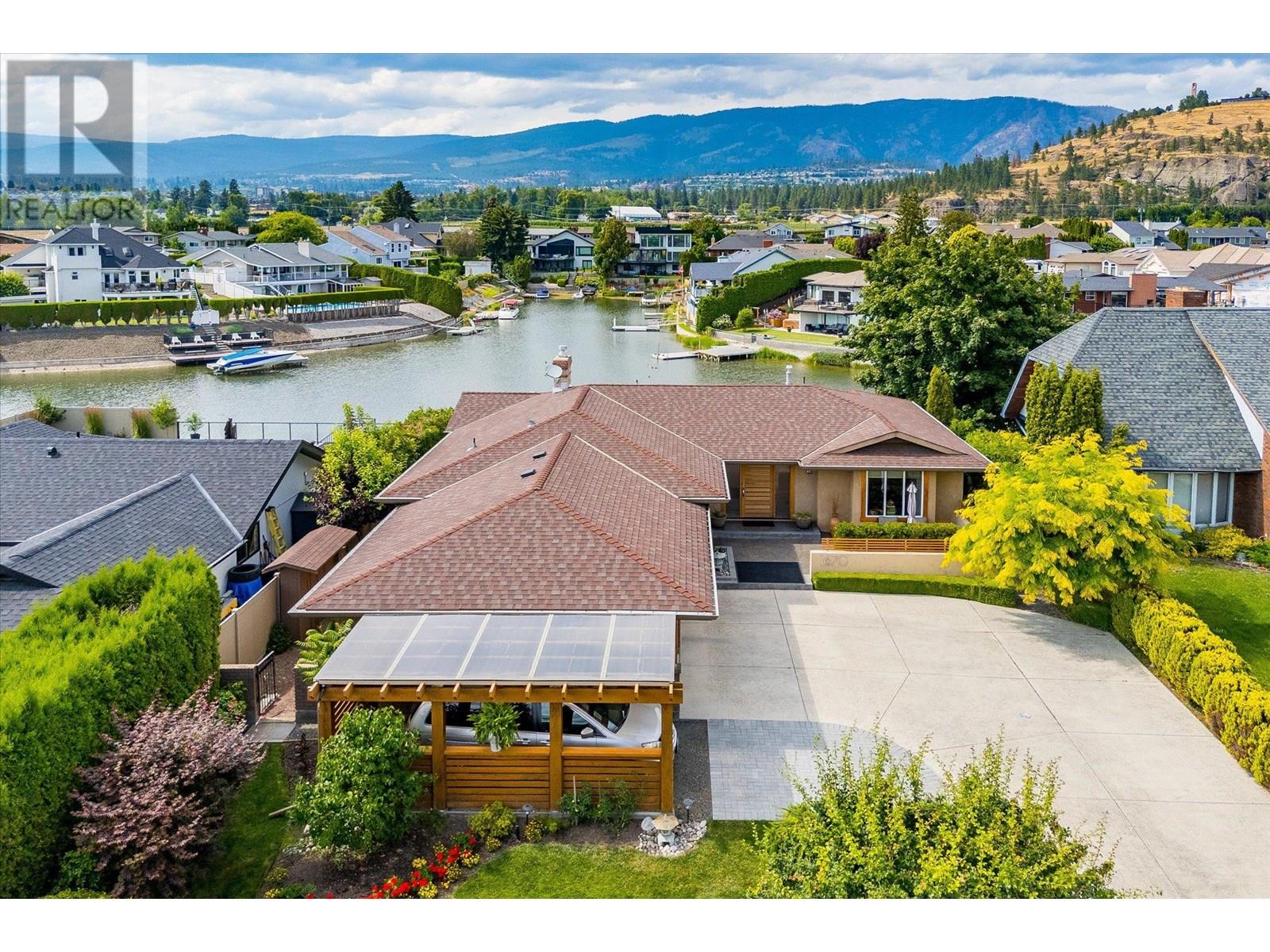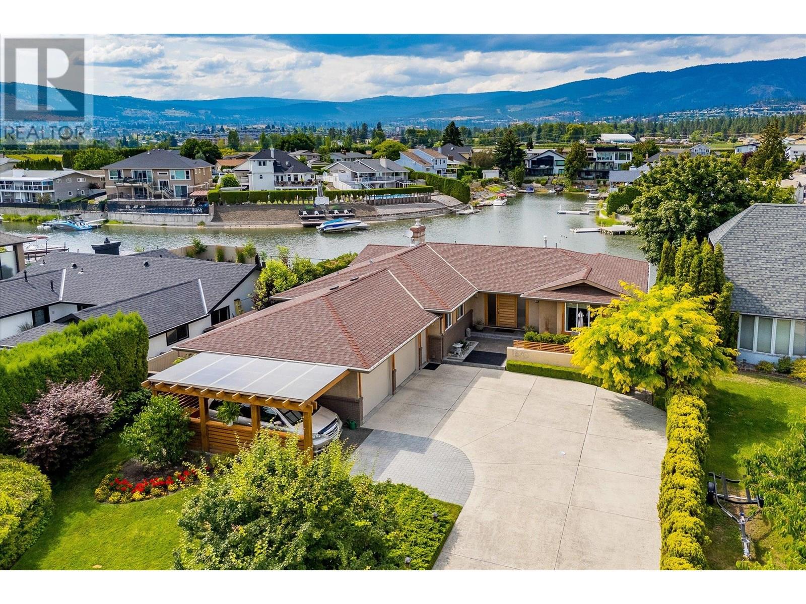 Welcome to an exceptional waterfront retreat on Pritchard Canal, where the Okanagan lifestyle comes to life. Here you will find the convenience of waterfront living without the higher tax bill. Designed for comfort and elegance, this professionally renovated 3-bedroom walkout rancher offers over 3,600 sq. ft. of luxurious living space. The bright, open floor plan flows seamlessly from the gourmet kitchen, boasting a granite island, custom wood cabinetry, stainless steel appliances, and a gas range to the inviting living areas with maple hardwood floors. The main level features a sophisticated master suite, a private office, and an inspiring art studio. Downstairs, a spacious family room, and a convenient guest or in-law suite complete with its own laundry and private entrance provide ample flexibility. Enjoy modern amenities like a Navien instant hot water system. Heading outside, you are welcomed by captivating views of the canal waterway and the picturesque Mission Hill Winery bell tower. Outdoor entertaining is a dream with a covered patio, a charming timbered pergola, a main level deck, and a beautifully landscaped, east-facing front courtyard. And as expected with a property on the waterway, this home on prestigious Pritchard Drive offers a newer dock with 4000 lb electric boat lift for your private moorage. With an impressive front entry, a double garage, covered pergola carport, this is an unparalleled opportunity to embrace the best of Okanagan living. New roof. (id:6770)