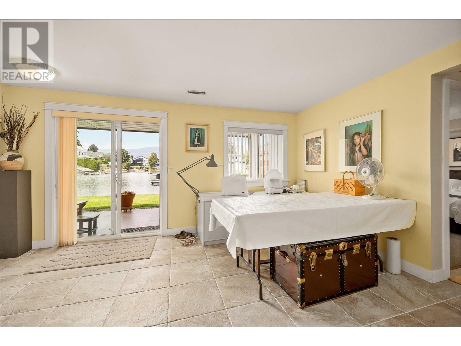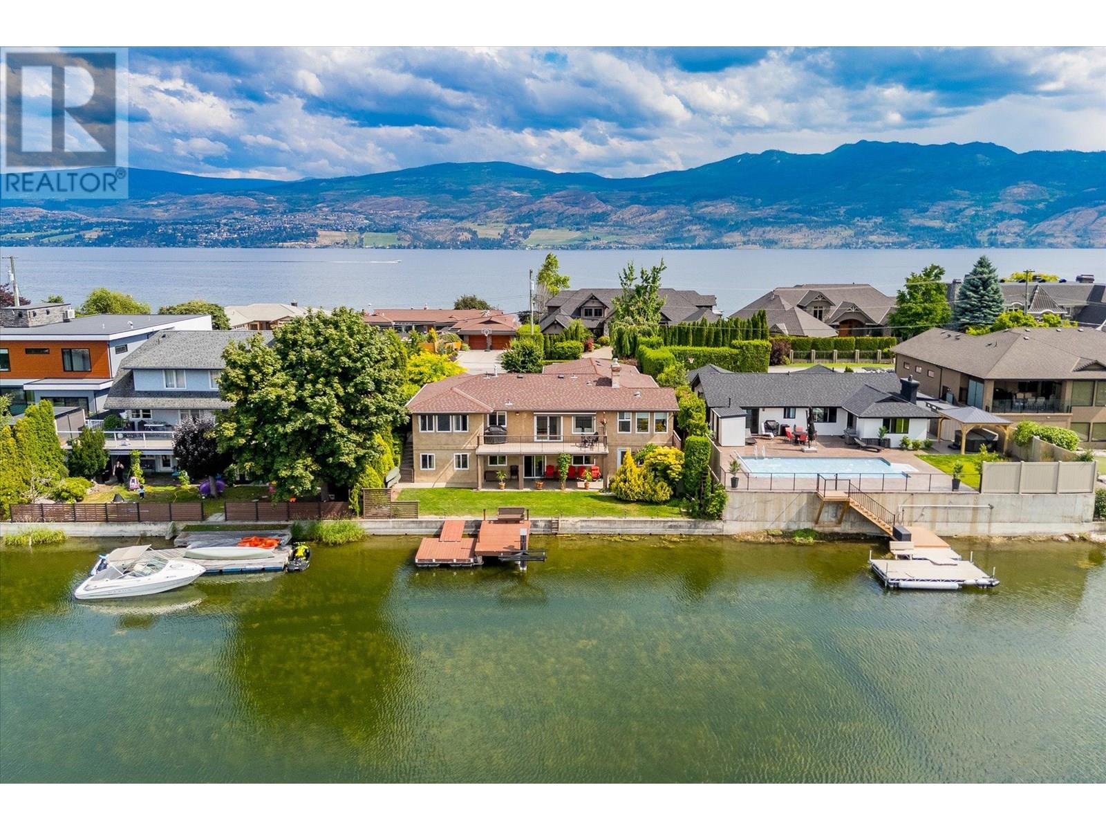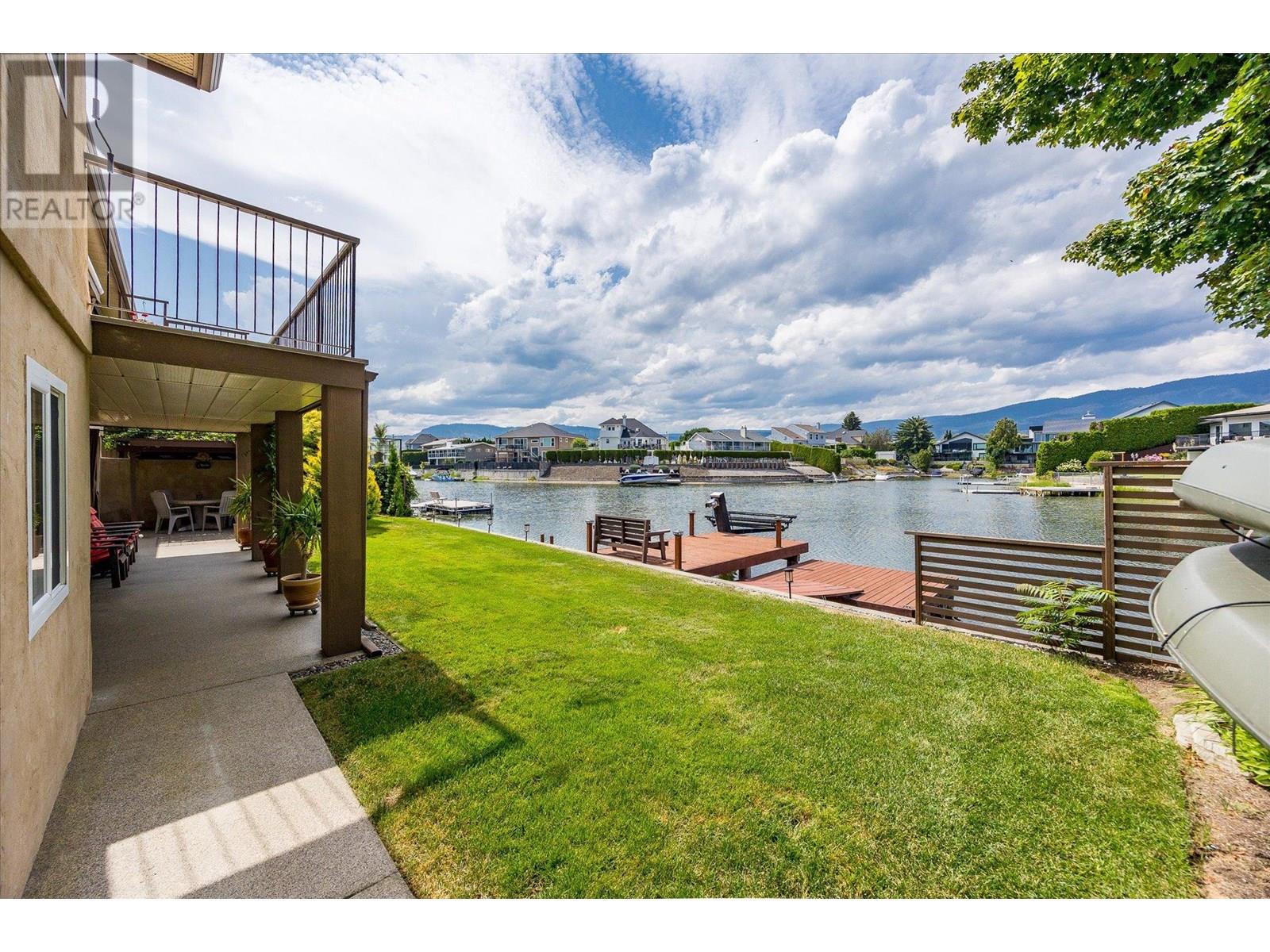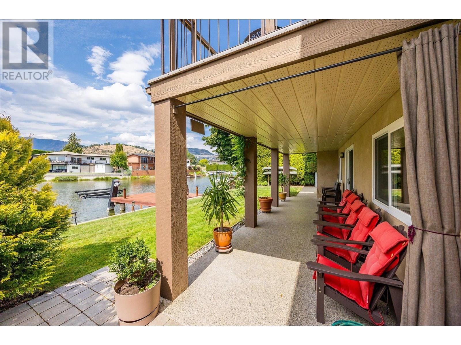Welcome to an exceptional waterfront retreat on Pritchard Canal, where the Okanagan lifestyle comes to life. Here you will find the convenience of waterfront living without the higher tax bill. Designed for comfort and elegance, this professionally renovated 3-bedroom walkout rancher offers over 3,600 sq. ft. of luxurious living space. The bright, open floor plan flows seamlessly from the gourmet kitchen, boasting a granite island, custom wood cabinetry, stainless steel appliances, and a gas range to the inviting living areas with maple hardwood floors. The main level features a sophisticated master suite, a private office, and an inspiring art studio. Downstairs, a spacious family room, and a convenient guest or in-law suite complete with its own laundry and private entrance provide ample flexibility. Enjoy modern amenities like a Navien instant hot water system. Heading outside, you are welcomed by captivating views of the canal waterway and the picturesque Mission Hill Winery bell tower. Outdoor entertaining is a dream with a covered patio, a charming timbered pergola, a main level deck, and a beautifully landscaped, east-facing front courtyard. And as expected with a property on the waterway, this home on prestigious Pritchard Drive offers a newer dock with 4000 lb electric boat lift for your private moorage. With an impressive front entry, a double garage, covered pergola carport, this is an unparalleled opportunity to embrace the best of Okanagan living. New roof. (id:6770)