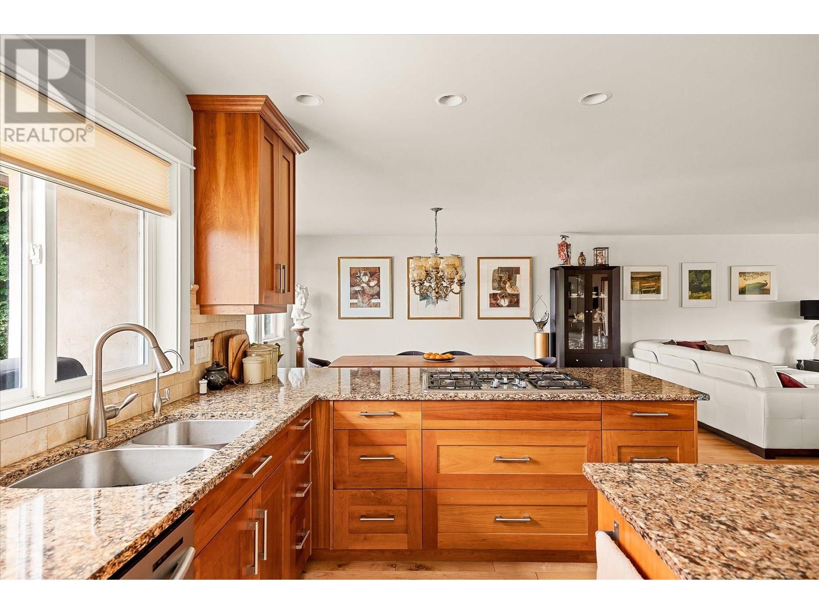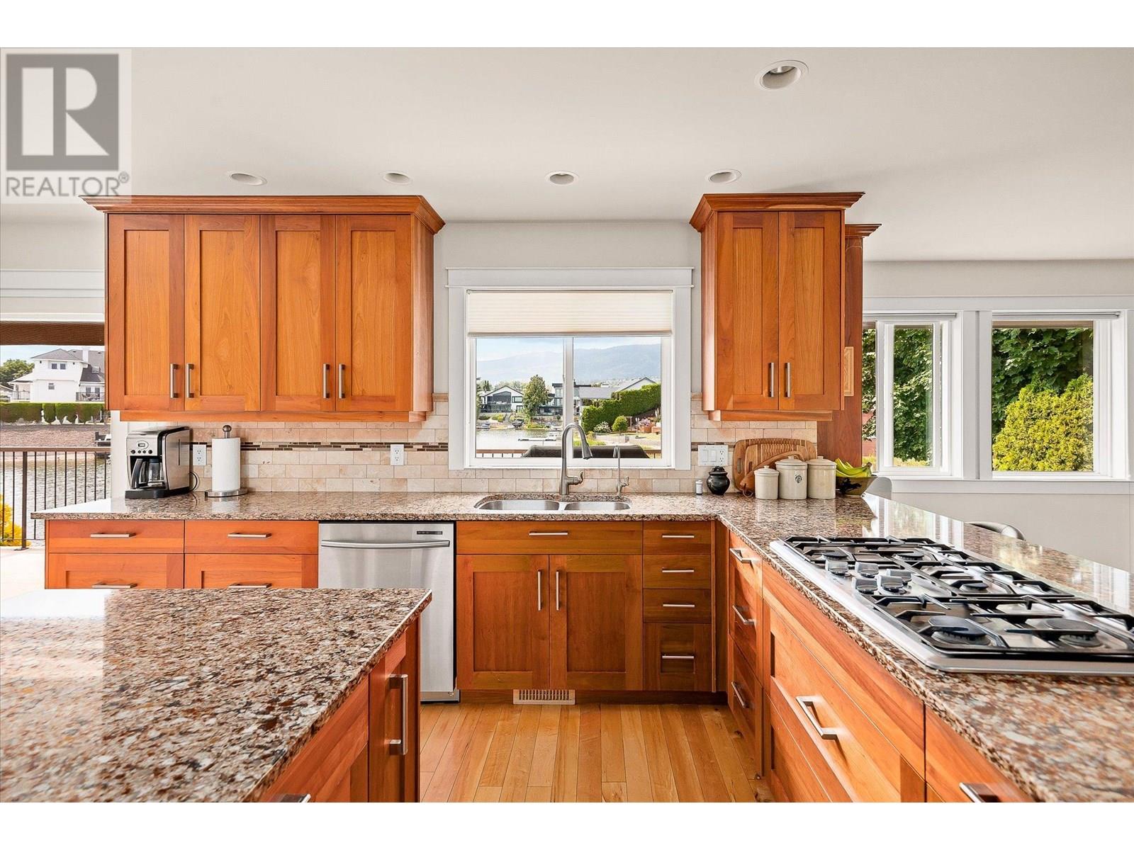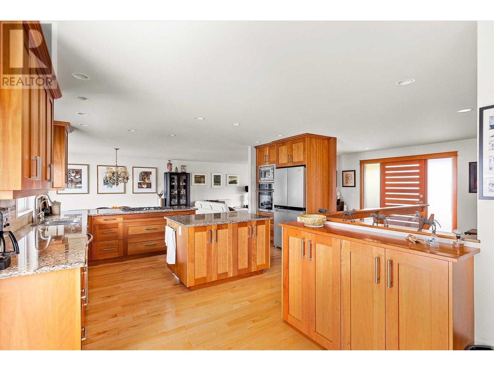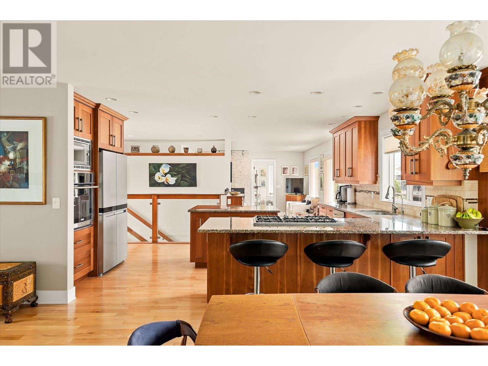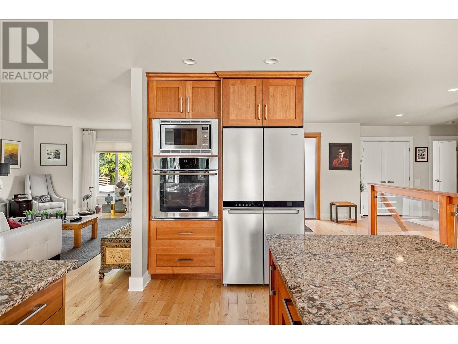 Welcome to an exceptional waterfront retreat on Pritchard Canal, where the Okanagan lifestyle comes to life. Here you will find the convenience of waterfront living without the higher tax bill. Designed for comfort and elegance, this professionally renovated 3-bedroom walkout rancher offers over 3,600 sq. ft. of luxurious living space. The bright, open floor plan flows seamlessly from the gourmet kitchen, boasting a granite island, custom wood cabinetry, stainless steel appliances, and a gas range to the inviting living areas with maple hardwood floors. The main level features a sophisticated master suite, a private office, and an inspiring art studio. Downstairs, a spacious family room, and a convenient guest or in-law suite complete with its own laundry and private entrance provide ample flexibility. Enjoy modern amenities like a Navien instant hot water system. Heading outside, you are welcomed by captivating views of the canal waterway and the picturesque Mission Hill Winery bell tower. Outdoor entertaining is a dream with a covered patio, a charming timbered pergola, a main level deck, and a beautifully landscaped, east-facing front courtyard. And as expected with a property on the waterway, this home on prestigious Pritchard Drive offers a newer dock with 4000 lb electric boat lift for your private moorage. With an impressive front entry, a double garage, covered pergola carport, this is an unparalleled opportunity to embrace the best of Okanagan living. New roof. (id:6770)
