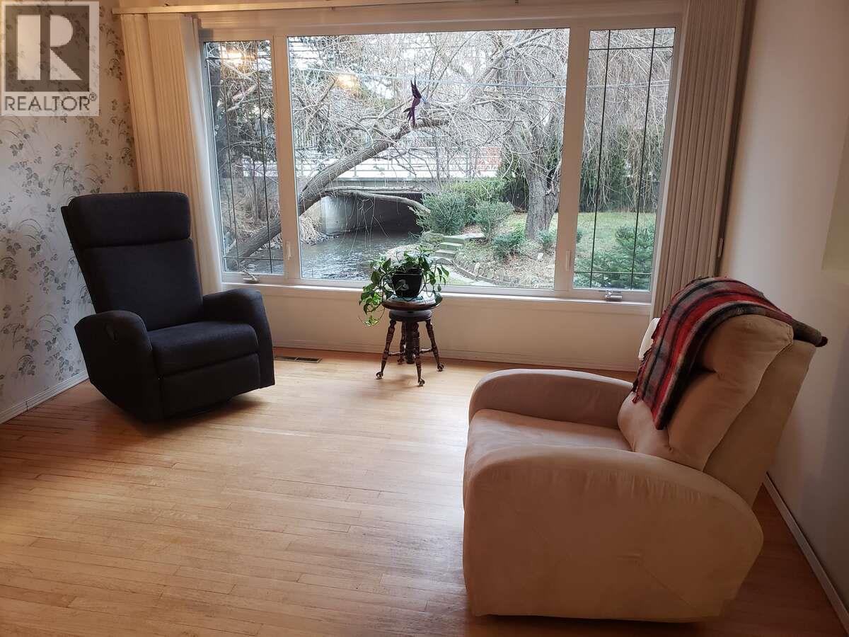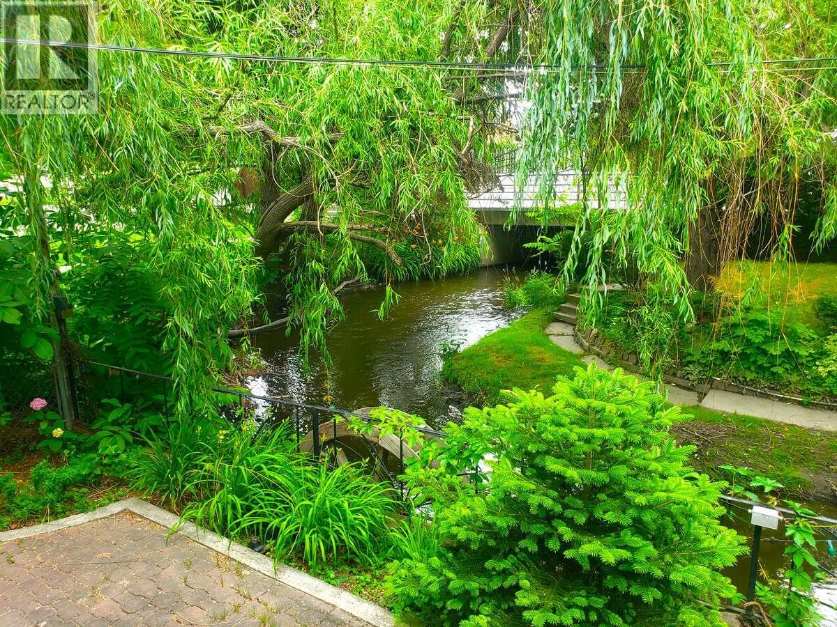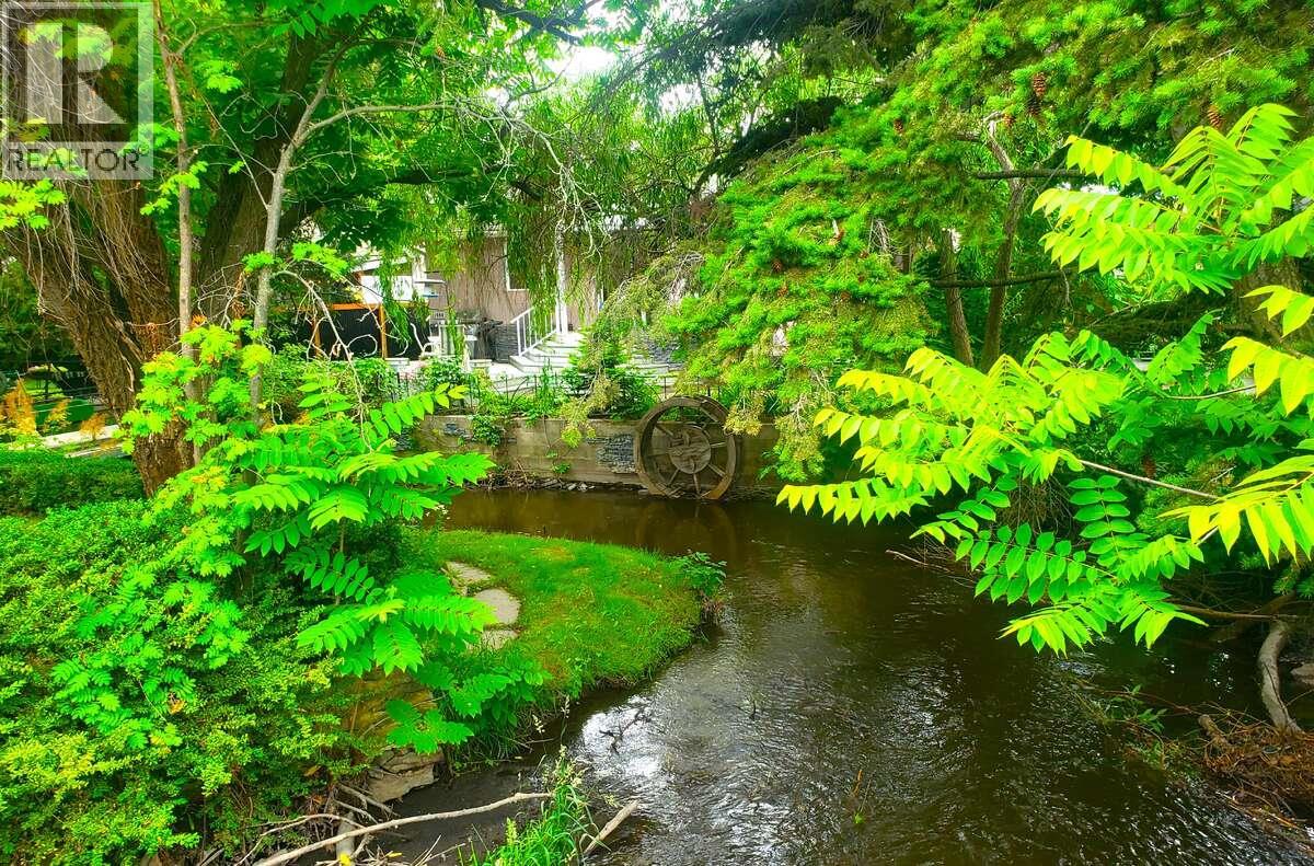 For more information, please click Brochure button. . Enjoy your morning coffee on the east facing front deck with nature at your doorstep in this picturesque home on Mill Creek. The home is set back from the street and has considerable privacy with lush greenery and your very own bridge! It was substantially renovated in 1999 and has an open floor plan with custom maple kitchen cabinetry. There are 2 large bedrooms upstairs with the main bathroom situated between them. The master bedroom boosts an incredible ensuite with a vaulted ceiling, sky lights, his and her sinks, a corner jacuzzi tub, and an extra closet. The basement has a nice sized rec room, one bedroom, and a massive workshop for the handyman. For parking you have an oversized single car garage with an attached carport, and room for 3 additional cars in the driveway (located at the end of a no-thru alley). The west facing backyard has a nice compact garden and raspberry bushes. You can't beat the central location of this home and its accessibility to bike lanes. It is situated across from the Bennett Estate and Hospice House (and the creekside walking trails to Millbridge Park) and is only a short walk to KGH for the health professional. This home is truly one of a kind and has been owned by the same family since it was originally built. Don't let this hidden gem pass you by. All measurements are approximate. (id:6770)