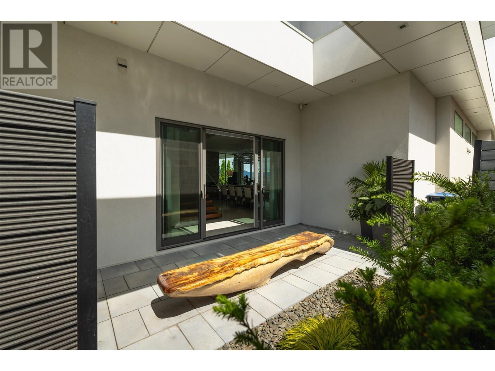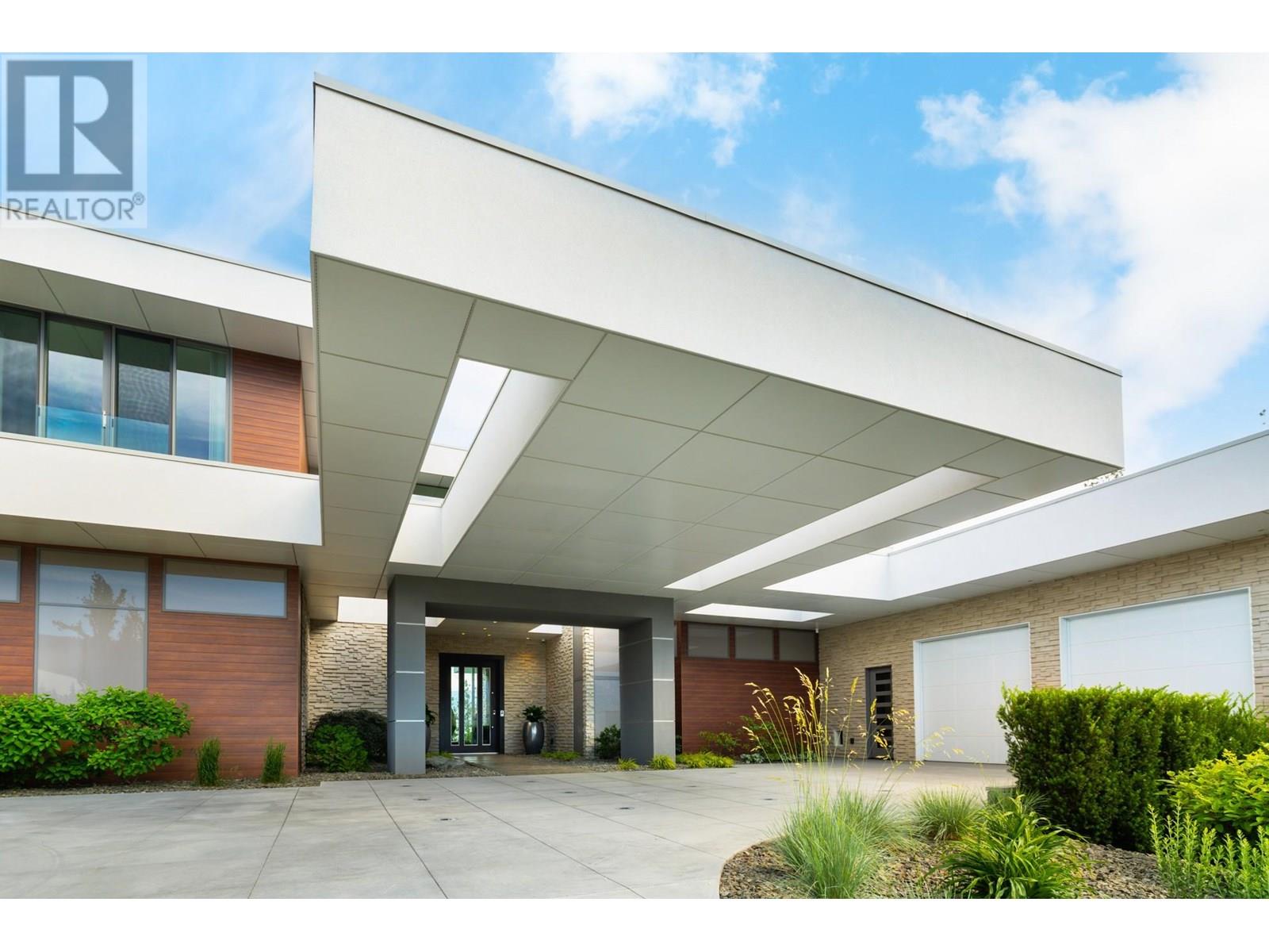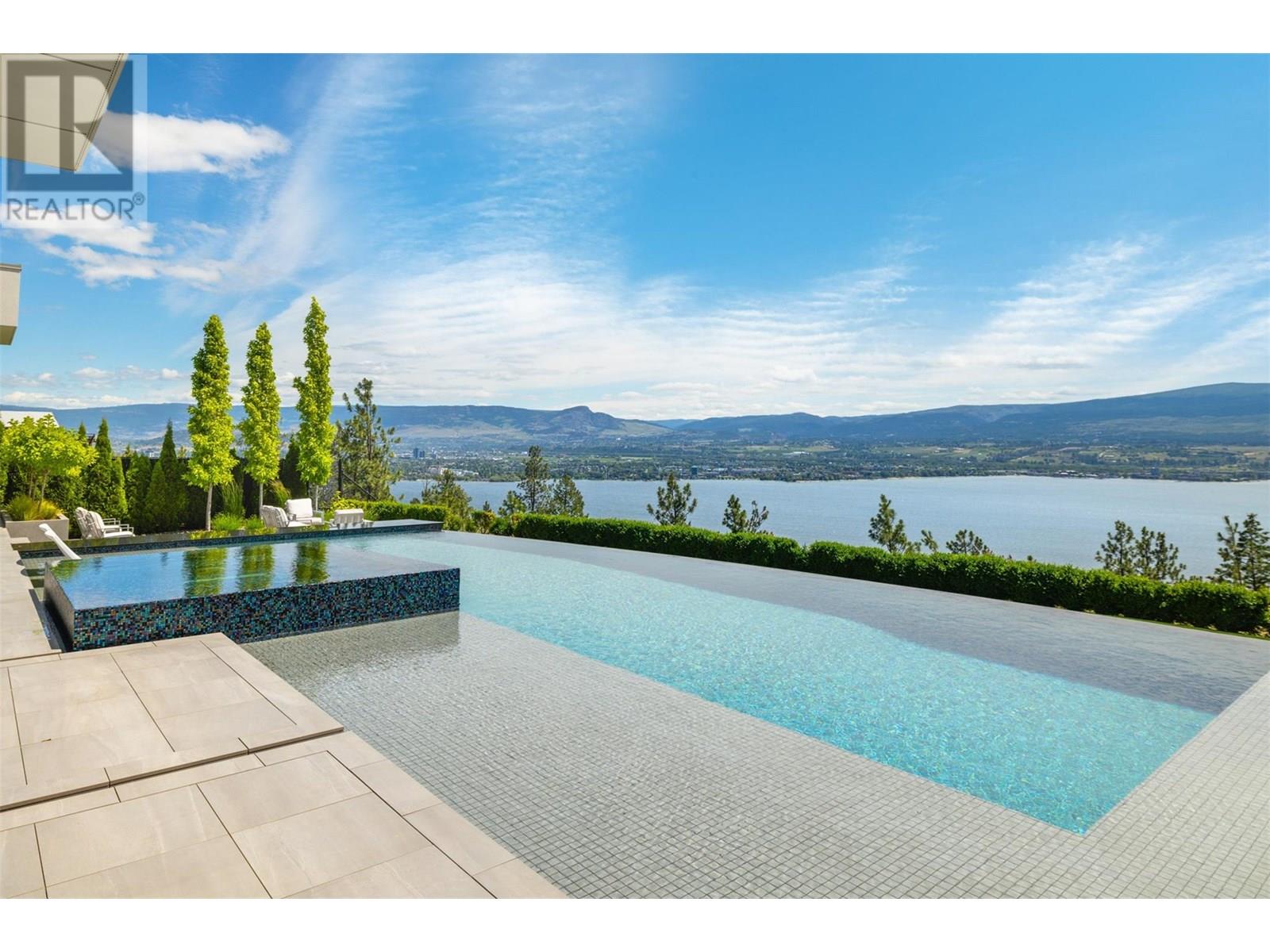 Discover unparalleled luxury at this magnificent custom Okanagan home. As you pass through the gate, you'll immediately be captivated by its design. The modern aesthetic seamlessly integrates the home with its landscaping, creating a harmonious experience. The entry features a mesmerizing floating roof design inspired by a museum in Spain, and light filled courtyard to display custom artwork Inside, entertain at the custom bar, enjoy a cinematic experience in the state-of-the-art home theatre, and store your prized vintages in the 1,500-bottle wine room. For seamless indoor to outdoor living all the sliding doors open to a completely private backyard offering a sensational living experience: prepare a culinary feast in the outdoor kitchen, lounge by the expansive saltwater vanishing edge pool, or soak in the hot tub, all while enjoying the relaxing ambiance of the waterfall and 180-degree views of Okanagan Lake. Take the floating walnut staircase or the elevator upstairs. The primary bedroom is a retreat like no other, with a private patio, luxurious lake view en suite, and a stunning custom closet. Three additional bedrooms each have their own en suite. For the car enthusiast, this home boasts 2 levels of garages with parking for 7+ vehicles. Exquisite finishes include porcelain tile floors, Cambria quartz, &unmatched glass and walnut woodwork by Shawn Truit. This custom home stands as a masterpiece of design and engineering. (id:6770)