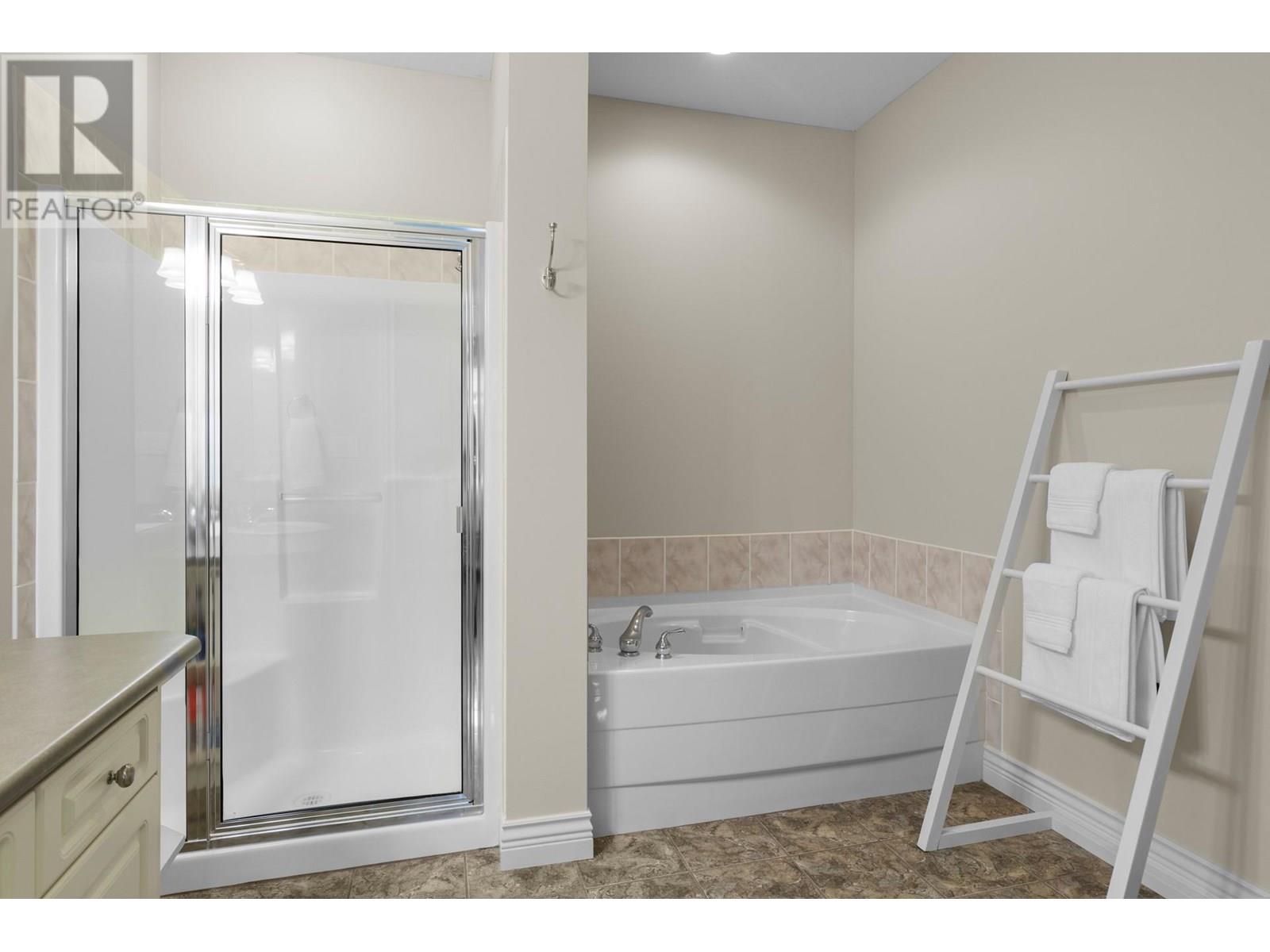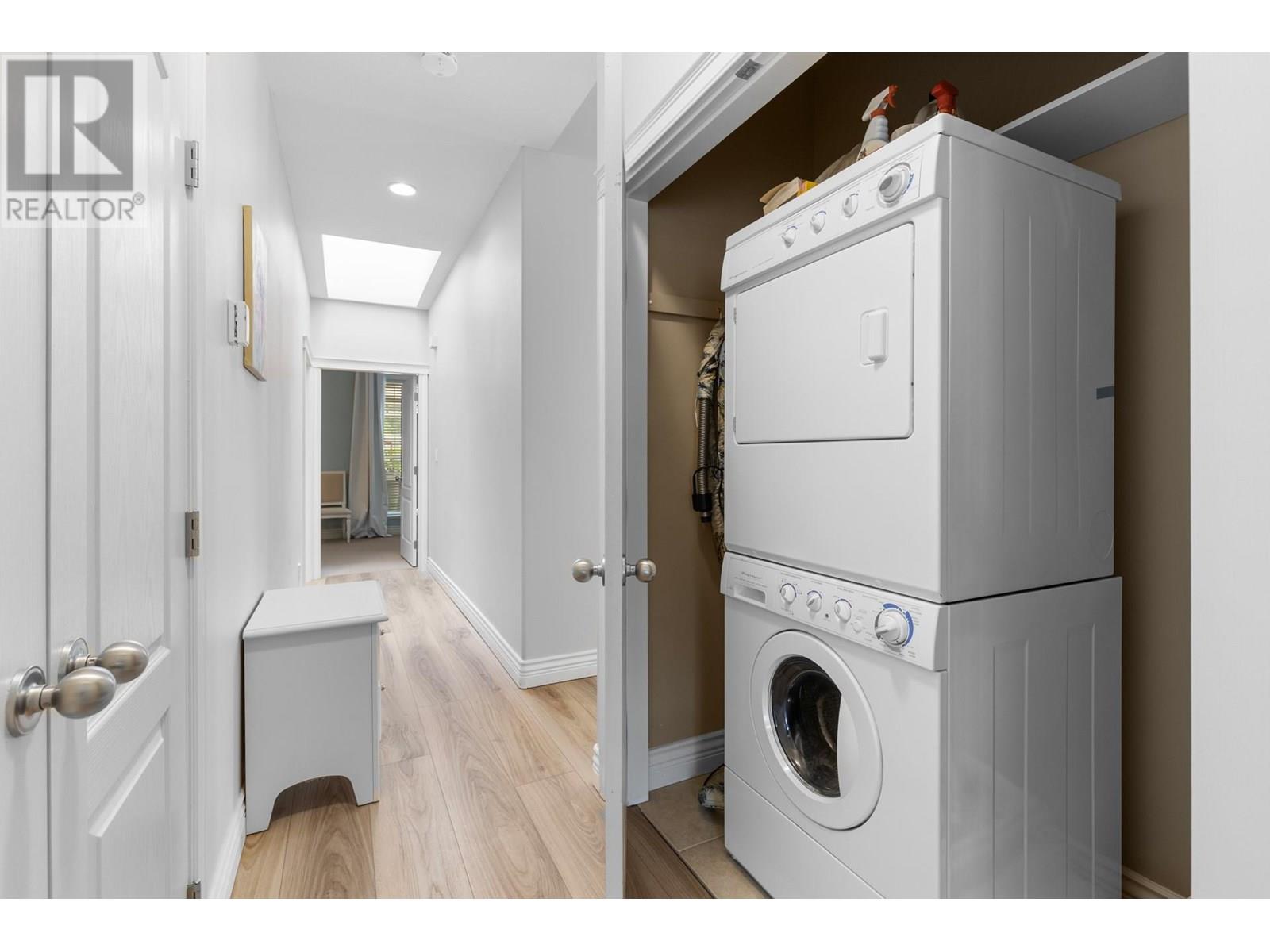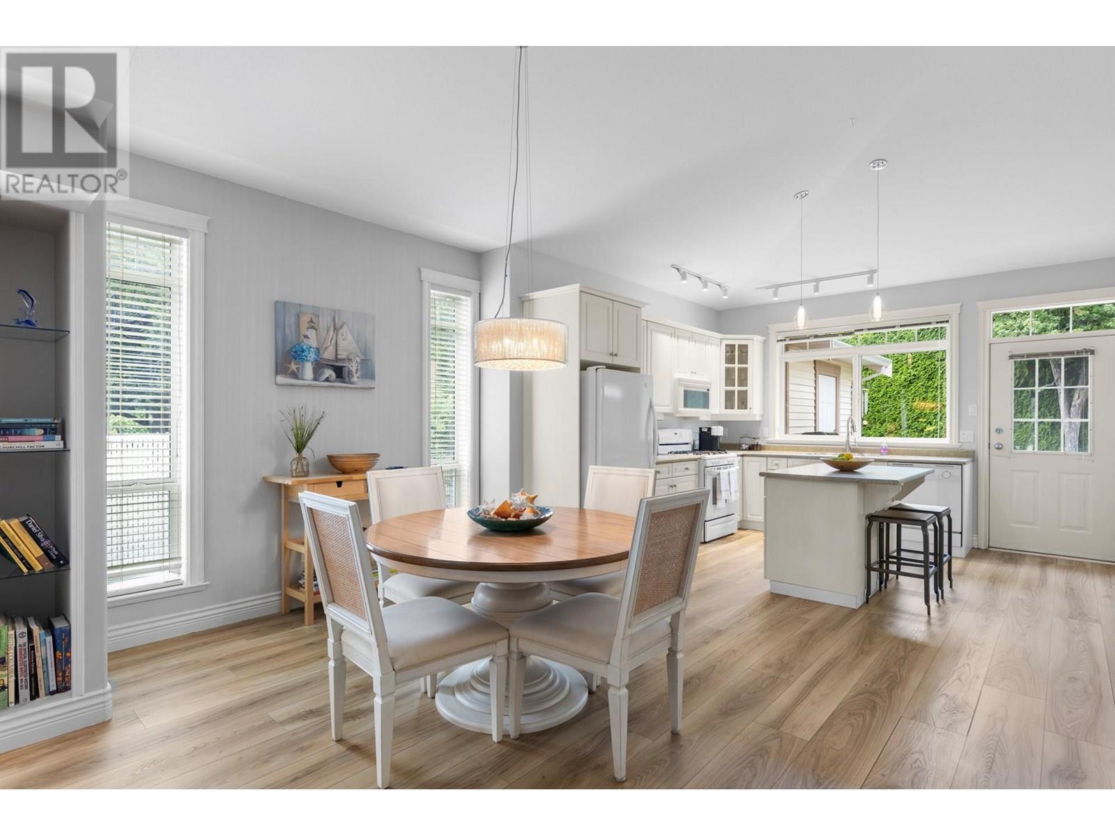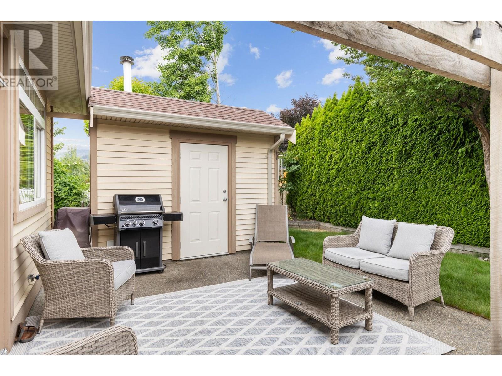 Welcome to this pristine end-unit townhome located just one block from endless beach and lake enjoyment! This one level rancher home offers it all, from multiple outdoor living areas, tons of parking, and thoughtful updates throughout. Upon entry you are greeted by the open concept living room, with high ceilings and extensive windows for natural light. The living room features a gas fireplace, opening onto the dining area. The kitchen features large island, gas range, tons of built-ins, and a generous pantry. Exit the back door into your tranquil oasis, with lush landscaping, excellent privacy, and a large storage shed. The primary wing has a generous bedroom, large ensuite with tub and shower, and dual closets, and direct access to the backyard. There is another bedroom, full bathroom, and laundry finishing this wonderful floorplan. Out front there is another beautiful sitting area, which in combination in the backyard allow full sun or shade at any time of day. The single garage has a small work area, and there is space for four cars on the large, flat driveway. Located just minutes from Peachland’s shopping and amenities, and just one block to the lake. Book your showing today! (id:6770)