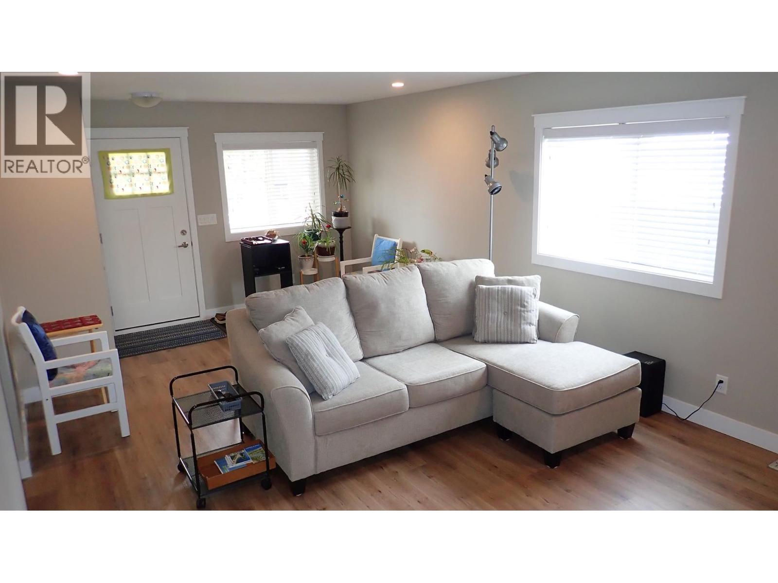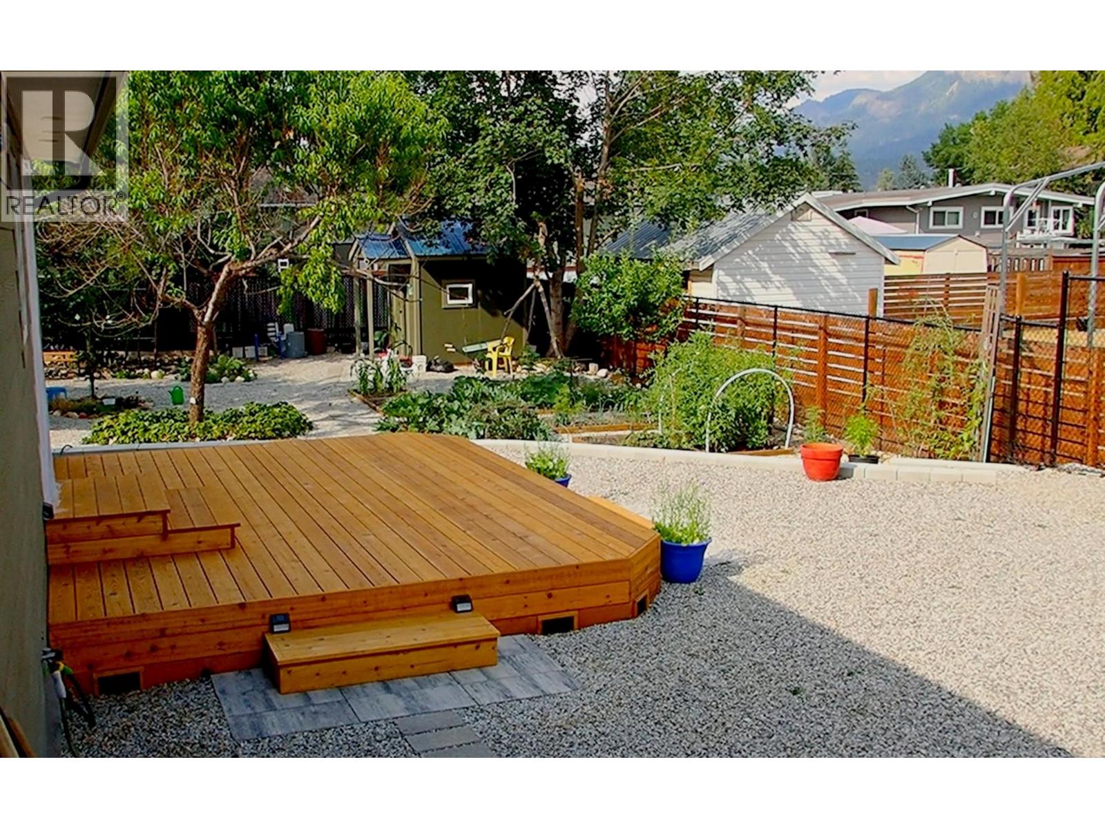 Your newer home awaits you. Move into this 2022 Modular Bungalow 972 sq.ft. open floor concept home, that is built above flood plain elevation. There is so much to this large 70 x 125 ft (.20 acres) City Property, including two driveways with gated back lane access. Vinyl plank flooring throughout, Whirlpool Fridge, Stove, Dishwasher with an LG washer and dryer. Enjoy a cup of coffee on your 27’ x 6’ covered front porch or take in the mountain view on the large side deck. For all the outdoor gardeners, enjoy a huge area of garden beds and a custom-built Workshop 8’x12’ on 8'x20' 6"" concrete pad, plus a custom-built Garden Shed 8’x8'. The property boasts many mature fruit trees including Apple, Peach and several Plum trees, numerous berry bushes, flower beds of Iris, Chinese Lantern, Lilac, wildflowers and other perennials. Lots of balance left on the 10 year warranty. Home features a Crawl Space Access Hatch with Stairs. Large area of back yard area set aside for future paving stone patio sitting area with stone fire-pit. Owner utility pole with all underground city utilities including power, water, natural gas, and TELUS fiber optics . Home can be available for immediate possession (id:6770)