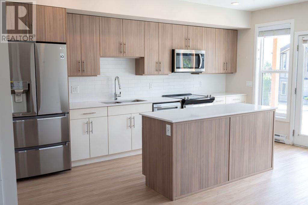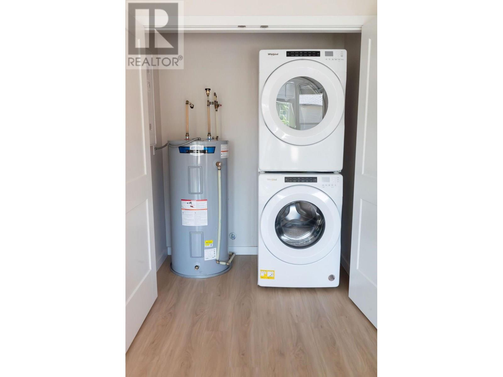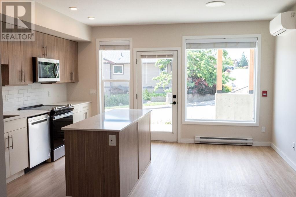 Welcome to the highly sought-after Promontory development. This is 2 2-bedroom, 2 bathroom ground floor townhome. Designed for comfort and style, this bright and airy home features an efficient layout with high ceilings, easy-care flooring, and plenty of natural light. The modern kitchen includes quartz countertops, a large island, and luxury stainless steel appliances, with a stacked washer and dryer adding everyday convenience. Enjoy eco-friendly living with solar-powered heating and cooling, green energy features, and data center upgrades. Just steps from Knox Mountain Park, Kathleen Lake, and Glenmore Ridge Trails, and only minutes from Downtown Kelowna, Okanagan Lake, restaurants, wineries, UBCO, and the airport. This unbeatable location offers both nature and urban amenities at your fingertips. Pet and rental friendly (2 dogs, 2 cats, or 1 of each allowed). Ideal for first-time buyers or investors. Immediate possession available—don’t miss out! (id:6770)