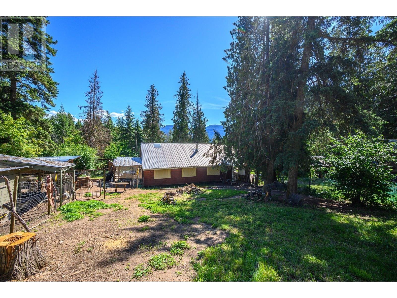 Zoned Small Holdings, an Official Community Plan application has already been submitted for Light Industrial zoning - big potential if you’re thinking beyond the homestead. The property also features a FLAT, buildable area on the top half - ideal for your dream home with a view. Live in one, rent the other, or run a business. It boasts an almost 1000 square foot workshop (220V on a separate hydro meter - hello, home-based business!), covered RV parking, chicken coop, goat / dog pen, and fenced areas for your beloved pets. Extra buildings? You've got options: an 11' x 20' shed, woodshed, rustic outhouse, and a charming cottage-style shed. The cozy 2-bedroom + den log home (den's doubling as the primary bedroom) sits on just over 2.5 acres - right off the highway for easy access, yet blissfully private, with gorgeous views of the Enderby Cliffs. The fenced garden area has healthy black soil. Harvest cherries, plums, and apples from your own trees, then soak your cares away in the 8-person hot tub under the stars or northern lights. Water comes from a 125-ft drilled well (5 GPM) tapping into a clean aquifer (better than bottled water). Whether you're here to live, build, or dream big, this gem serves up rustic charm, flexibility, and serious opportunity. Don’t miss your chance—book your showing and see it for yourself! (id:6770)