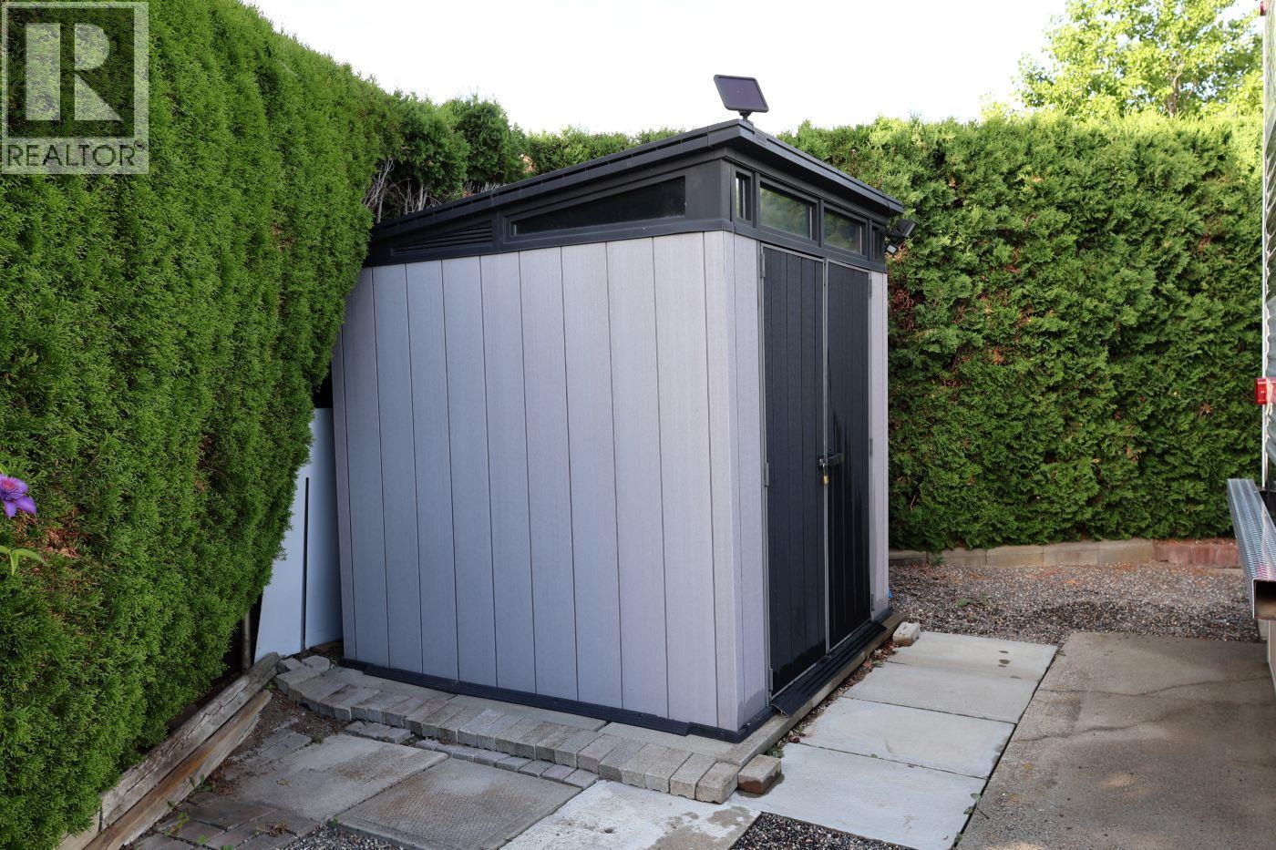 Live in the Okanagan, within walking distance to the lake and all amenities you can dream about. Live here full-time or as your vacation spot, this corner Park Model lot is one of the biggest and most private ones, and across the street from the Family Activity Centre. A great location as the outdoor pool, hot tub, shuffleboard, coin laundry and restaurant are steps away. The RBD Park Model (Recreation By Design), custom built in 2020, offers a master bedroom and a second bedroom with bunk beds, an oversized 20 gallon hot water tank, all Whirlpool residential appliances, washer & dryer, fridge. And a residential toilet as well (no dealing with tanks!) The Park Model has an Arctic Package, aluminium siding, 2 A/C units, is skirted and insulated and has lots of storage underneath, additional storage in the new shed. Enjoy all the amenities that Holiday Park has to offer – pools, hot tubs, golf course, games room, gym, library, wood shop, hair salon, pickleball courts and more. Site price $130,000. 2046 lease term. The site is registered with the Federal Government. The Park Model ownership is transferred by Bill of Sale. The Maintenance Fee is payable in January of each year. It includes security 24-7, water, sewer, use of the amenities, maintenance of the common areas and roads, snow removal etc. There is no Property Transfer Tax. Short term and long-term rentals are allowed. You are only minutes away from the Kelowna International Airport. (id:6770)