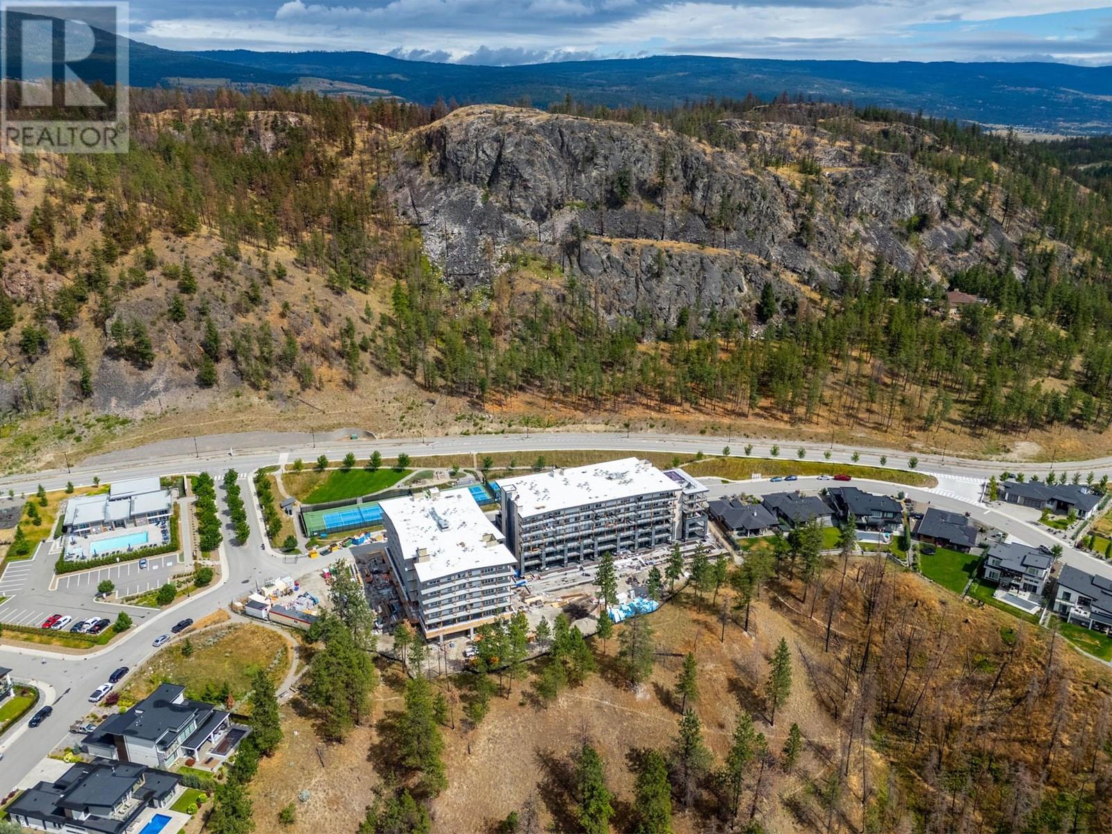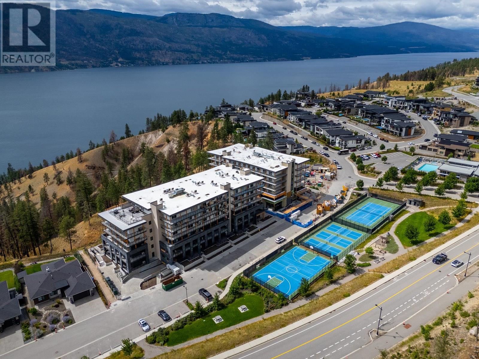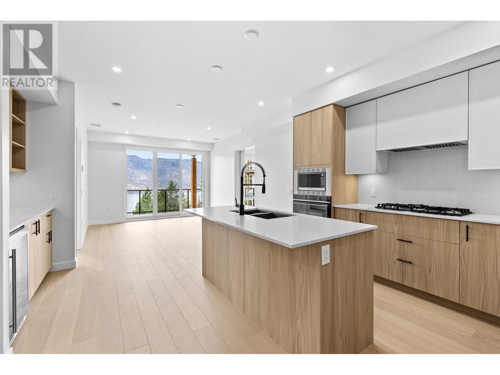 Welcome to Zara at Lakestone! 4th floor corner unit overlooking the pool, lake and mountains this unit boasts an absolute prime location!! This thoughtfully designed 2 bedroom (could be a Den as there is no closet) 1 bathroom condo features a chef-inspired kitchen with a large island, complemented by a custom wine bar complete with a wine fridge, display shelving, and wine rack. Enjoy cozy evenings by the electric fireplace or step outside to the spacious balcony showcasing scenic mountain views, BBQs permitted! The primary suite includes a generous walk-through closet, and the unit is equipped with a stacker washer & dryer. Included is secure underground parking and a private storage locker. Zara welcomes up to two pets (dogs and/or cats) with no size or weight restrictions, and short-term rentals are allowed (with restrictions) – making this a versatile investment or personal retreat. Experience the best of lakeside resort living at Zara! As Lakestone’s only premium condo development, Zara blends sophisticated architecture with the natural beauty of its lakeside surroundings and offers access to resort-style amenities. Nestled amongst award-winning wineries, fruit orchards and minutes to Predator Ridge Golf Course. (id:6770)