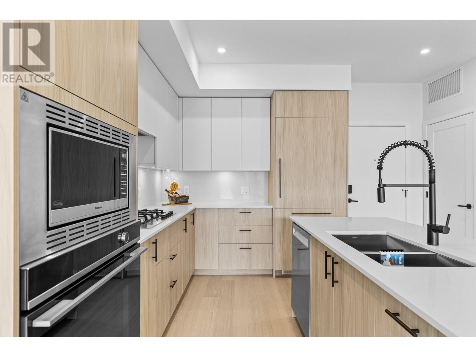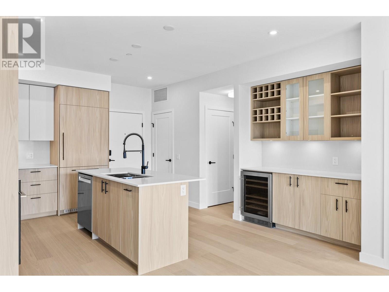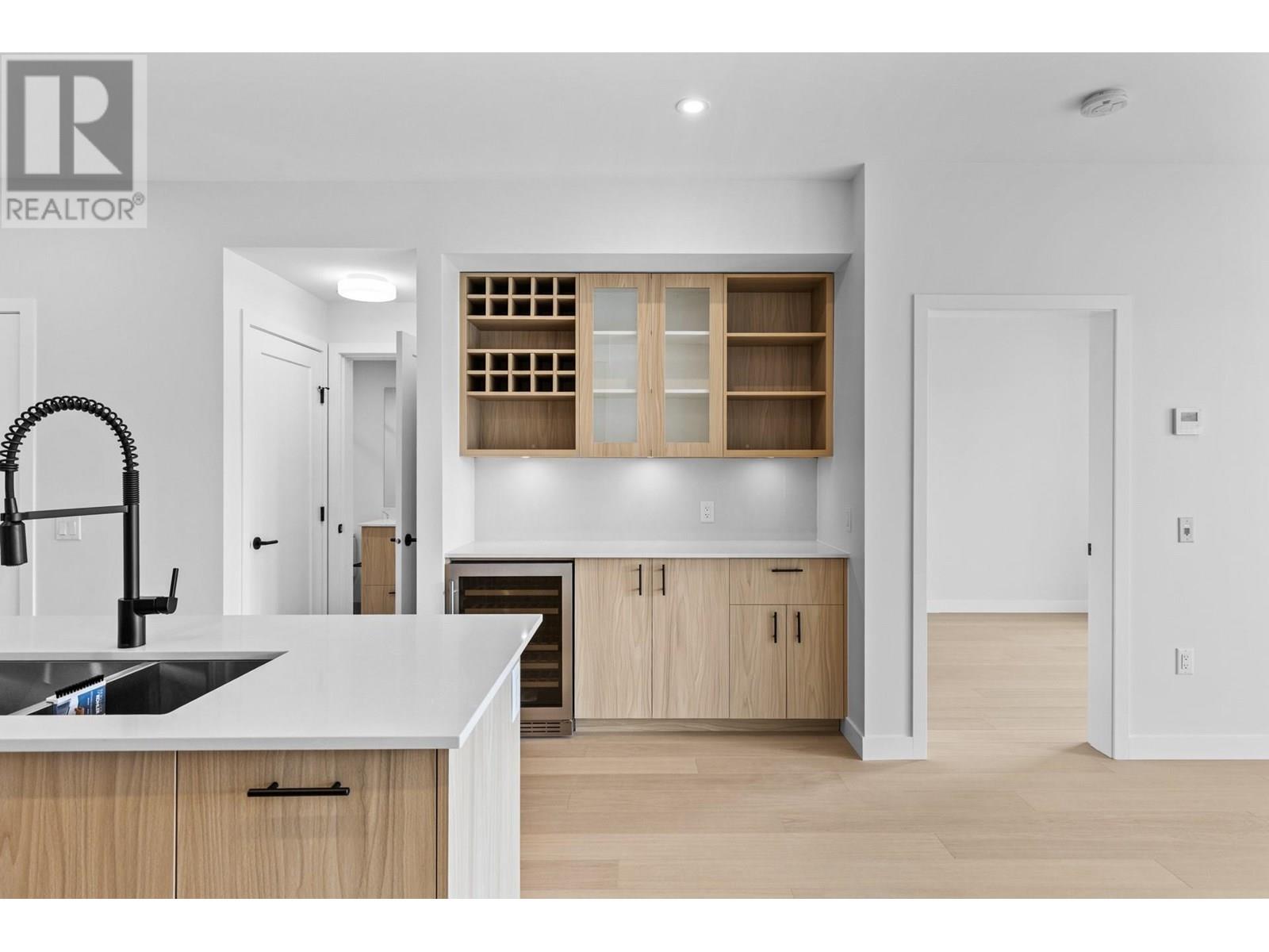 Welcome to Zara at Lakestone! 4th floor corner unit overlooking the pool, lake and mountains this unit boasts an absolute prime location!! This thoughtfully designed 2 bedroom (could be a Den as there is no closet) 1 bathroom condo features a chef-inspired kitchen with a large island, complemented by a custom wine bar complete with a wine fridge, display shelving, and wine rack. Enjoy cozy evenings by the electric fireplace or step outside to the spacious balcony showcasing scenic mountain views, BBQs permitted! The primary suite includes a generous walk-through closet, and the unit is equipped with a stacker washer & dryer. Included is secure underground parking and a private storage locker. Zara welcomes up to two pets (dogs and/or cats) with no size or weight restrictions, and short-term rentals are allowed (with restrictions) – making this a versatile investment or personal retreat. Experience the best of lakeside resort living at Zara! As Lakestone’s only premium condo development, Zara blends sophisticated architecture with the natural beauty of its lakeside surroundings and offers access to resort-style amenities. Nestled amongst award-winning wineries, fruit orchards and minutes to Predator Ridge Golf Course. (id:6770)