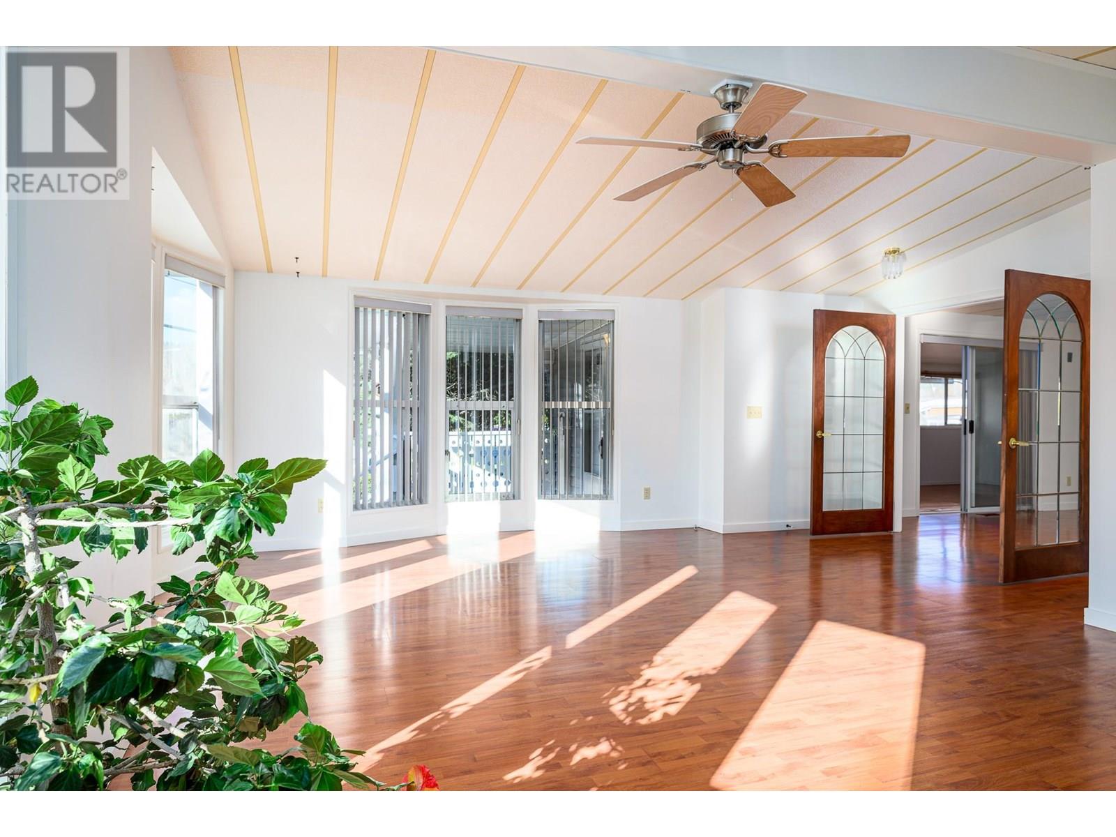 Tremendous value in this recently updated and spacious modular home—approximately 2,400 sq ft—located in the family section of Meadowbrook Estates, one of the best-kept and most well-managed parks in the region. This home offers 4 bedrooms, 2 full bathrooms, and two fully enclosed garages (one heated), plus plenty of parking for your recreational vehicles and toys. Key upgrades are already complete: a newer energy-efficient central A/C system services the main area, there's a second gas furnace for the addition, and the roof still has plenty of life left. The primary suite features a walk-in closet and a spacious ensuite. The yard is beautifully landscaped yet low-maintenance, and the home is just minutes from the scenic Okanagan Rail Trail and transit routes. It’s also conveniently located close to the airport and just steps away from the popular Thyme restaurant. This home offers great value, generous space, and flexible living in a fantastic location. Rentals and pets are allowed. (id:6770)