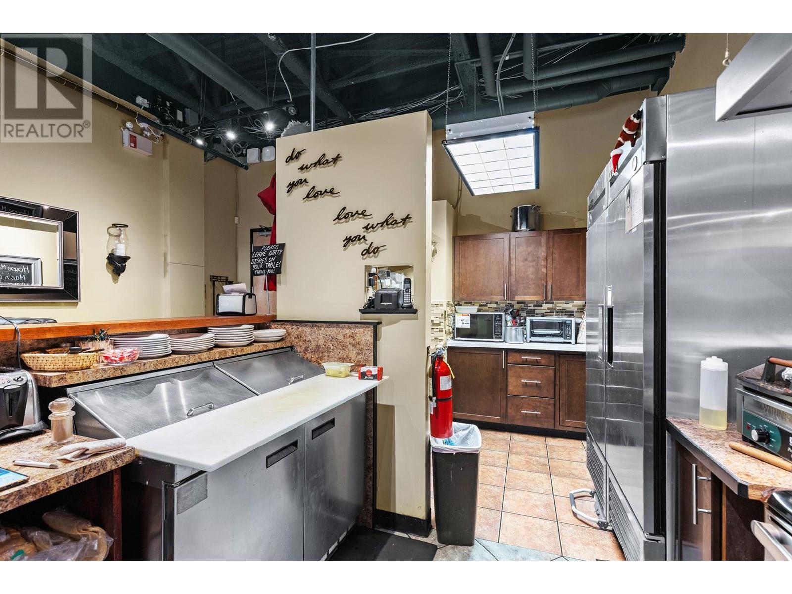 Located in the heart of Lower Mission, this fully built-out 664 sq ft café space is tenanted until 2026—offering immediate rental income with the flexibility to transition into your own office, clinic, wellness studio, or boutique retail concept. Positioned within the South Richter Professional Building, the unit enjoys strong visibility along Richter Street and steady foot traffic from nearby medical and dental offices. With lease rates currently below market value and the newly opened Caban by Cressey bringing elevated foot traffic and luxury clientele to the neighbourhood, this property stands out as a smart commercial real estate investment in one of Kelowna’s fastest-growing hubs. Just a short walk to the beach, Okanagan Lake, and major transit routes, this location blends lifestyle, convenience, and long-term upside. Zoned UC5 – Pandosy Urban Centre, the unit includes two secured parking passes and sits in a high-demand area surrounded by wellness professionals, residential density, and destination retail. Whether you're an investor seeking cash flow or a business owner planning ahead, this is a rare opportunity to secure a prime piece of commercial property in Kelowna's Lower Mission—a neighbourhood known for its walkability, strong demographics, and consistent growth. (id:6770)