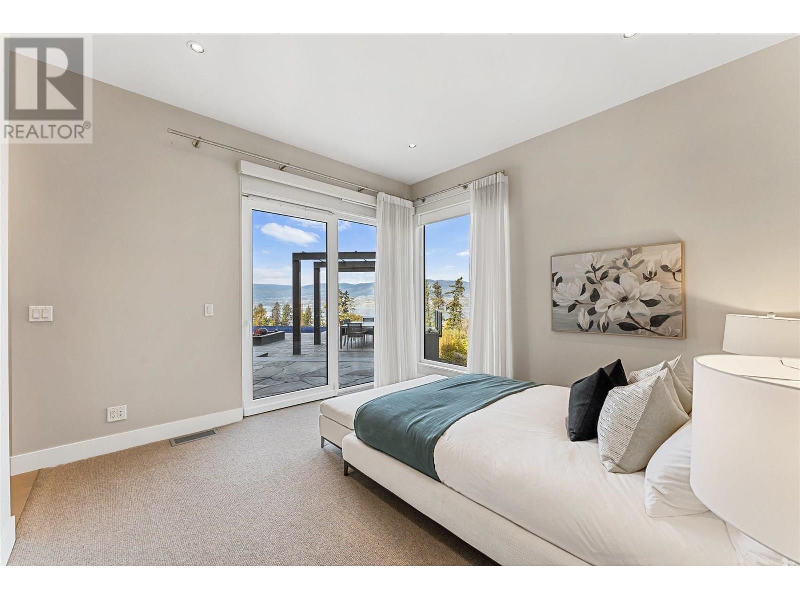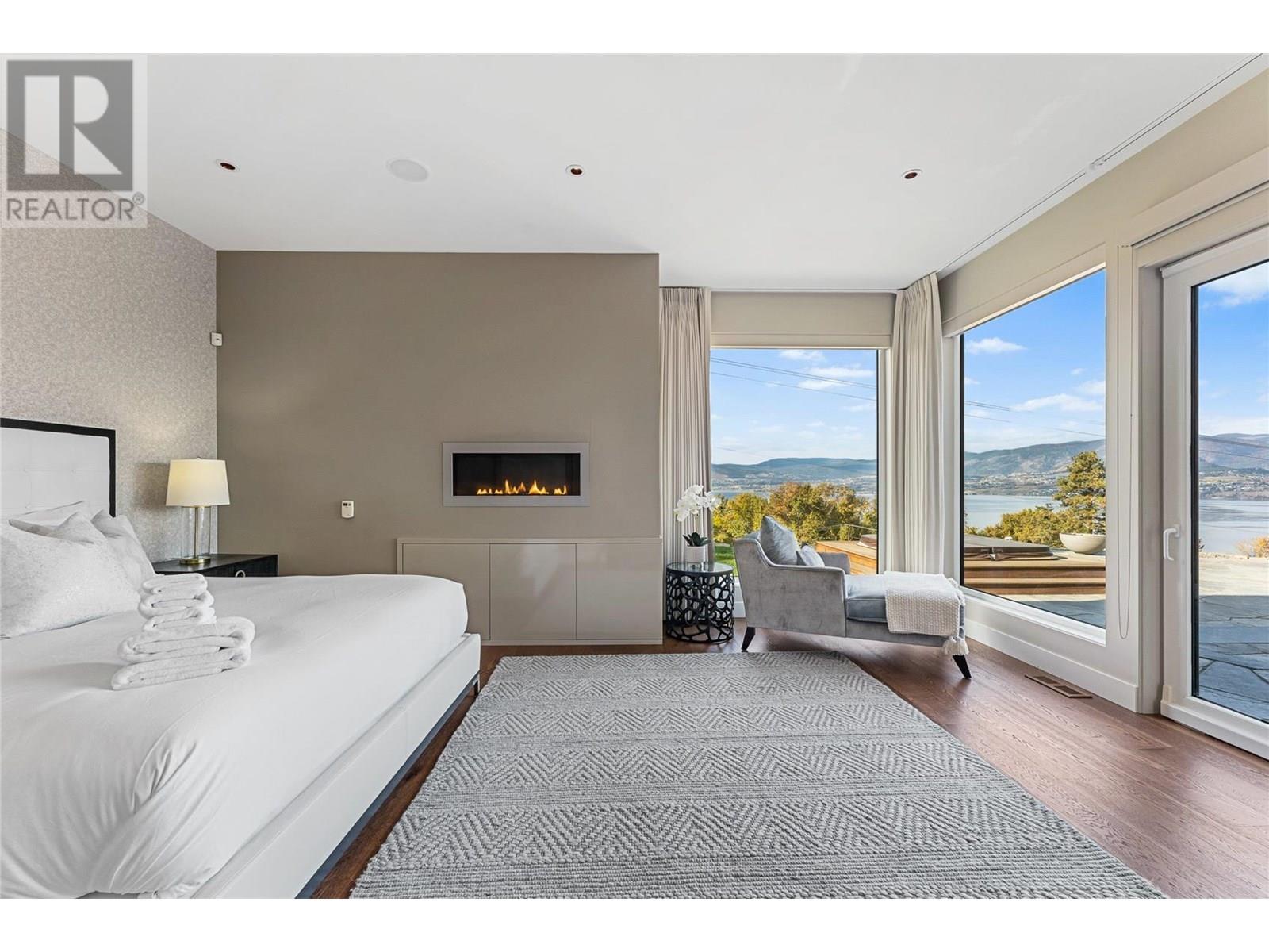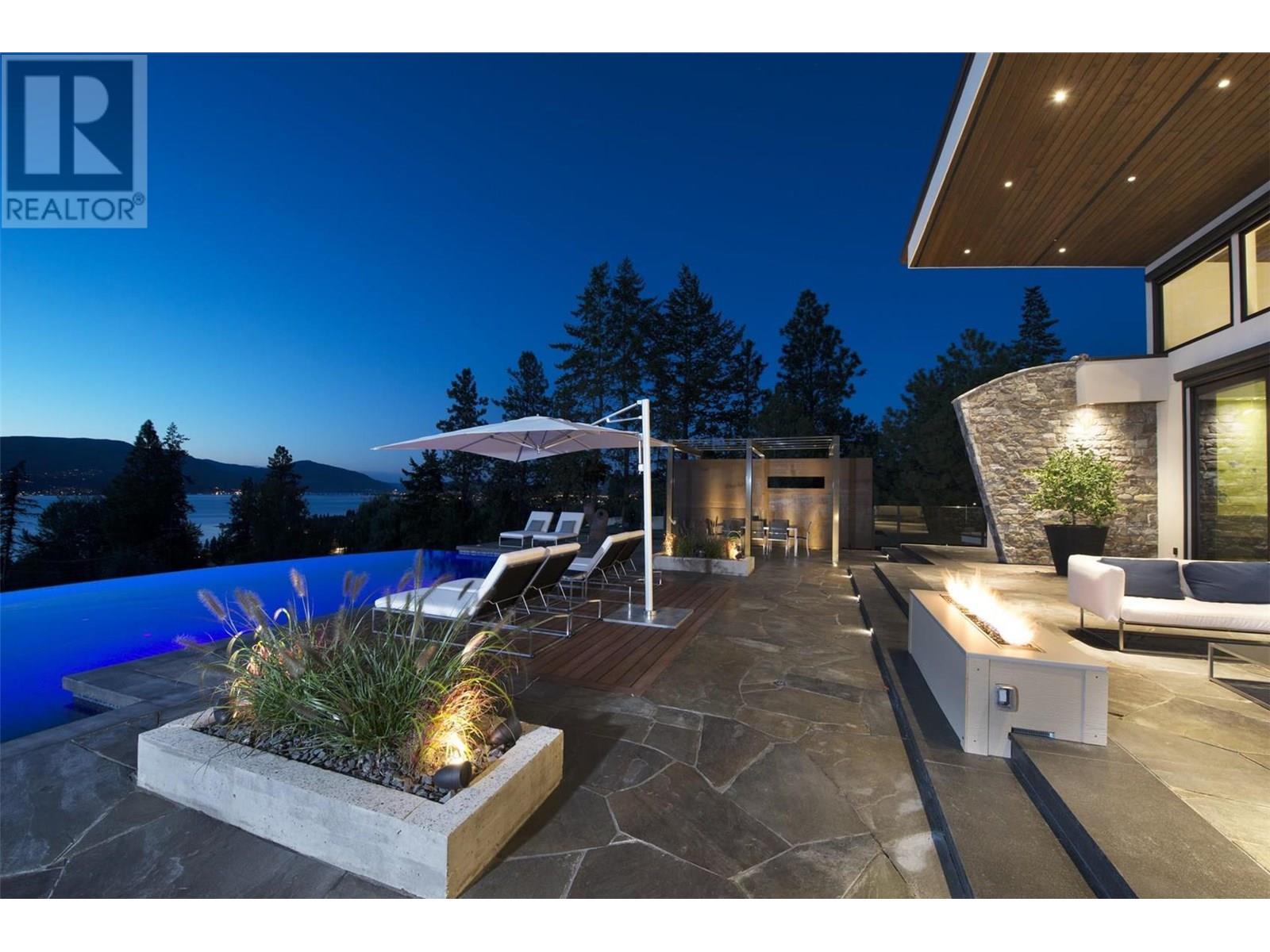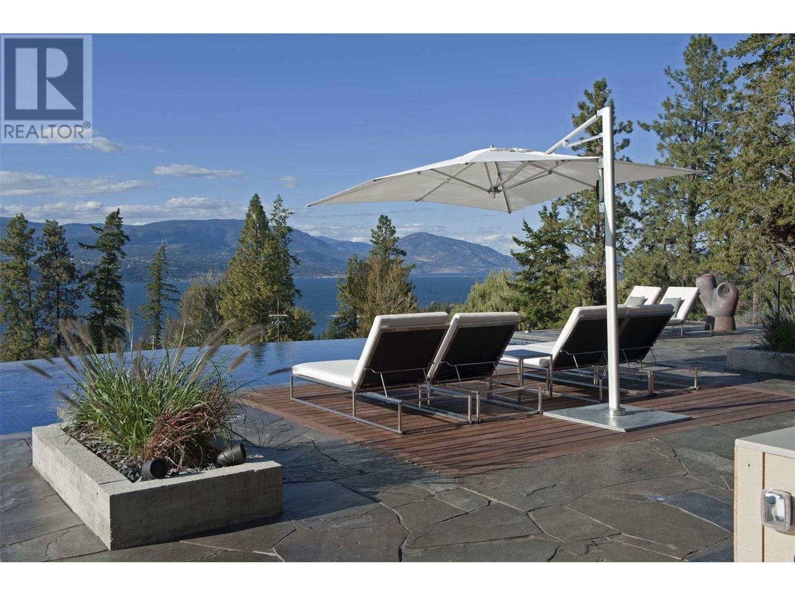 Private estate home set on 2.05 acres and perfectly positioned to capture the stunning lake, city and vineyard views. Enjoy an expansive flagstone patio with a spectacular negative edge saltwater infinity pool that creates a resort-like setting with room to lounge, entertain and take in the breathtaking views. Gated entry leads to heated triple garage & single garage plus RV garage. Upon entering the home you’ll notice walls of glass showcase views of the pool, lake and beyond. Soaring ceiling height w/floor to ceiling windows & sliding wall system create a seamless extension to the outdoors with the open concept great room, dining & kitchen. Kitchen features oversized granite island, professional appliances, custom fixtures & cabinetry. Generous sized lake view primary bedroom framed in windows w/ linear gas fireplace & full ensuite with frameless glass shower, his/her sinks and soaker tub. Contemporary style home is over 5500 square feet with 4 bedrooms & 6 baths. Lower level boasts wine room, media room and games room. New pool, patio, pergola & outdoor living space completed in the summer 2015. The home blends exterior with interior living superbly. Located a short stroll to adjacent Summerhill Winery and minutes to the lake, hiking, dining, boutiques and schools. (id:6770)