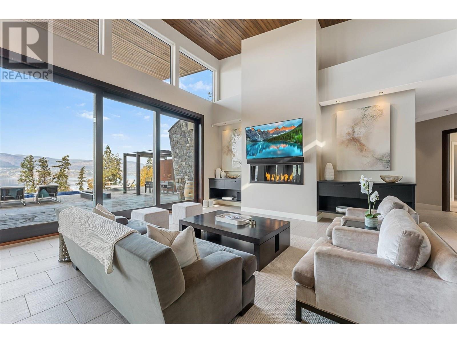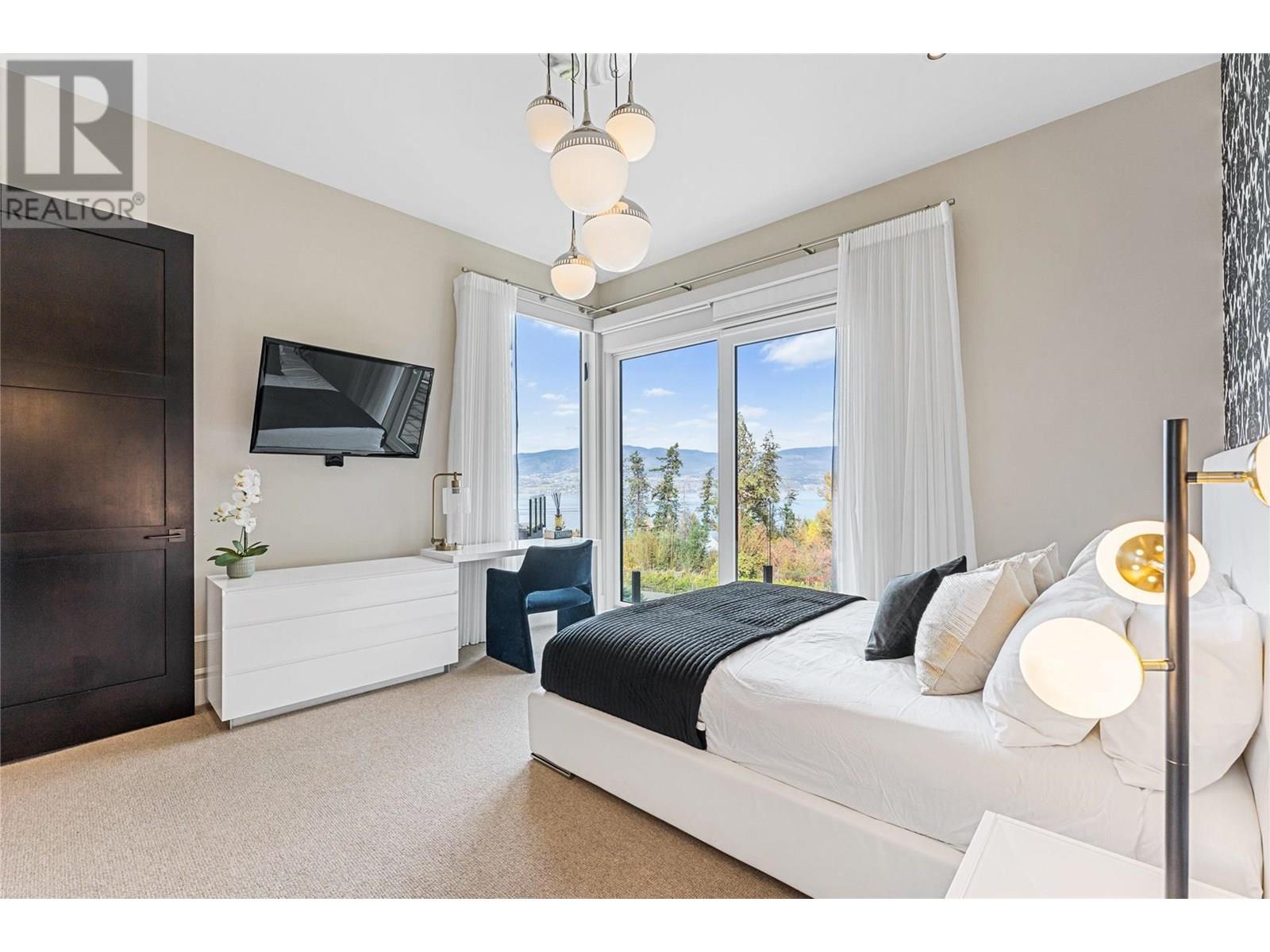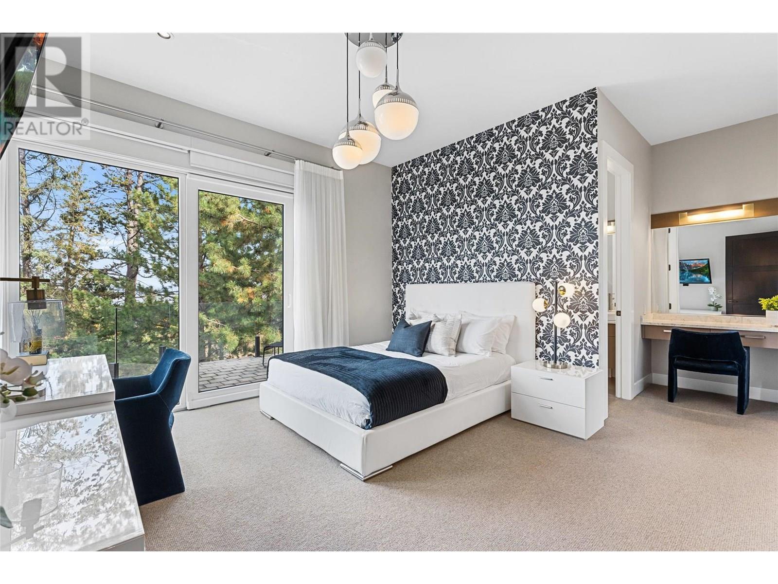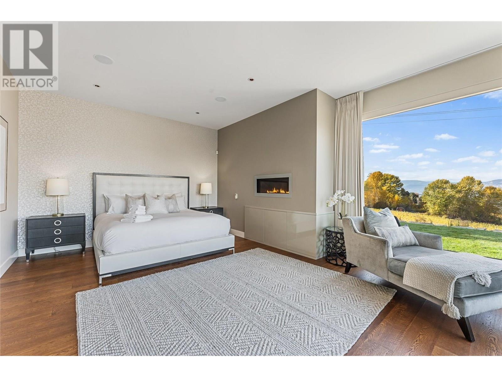 Private estate home set on 2.05 acres and perfectly positioned to capture the stunning lake, city and vineyard views. Enjoy an expansive flagstone patio with a spectacular negative edge saltwater infinity pool that creates a resort-like setting with room to lounge, entertain and take in the breathtaking views. Gated entry leads to heated triple garage & single garage plus RV garage. Upon entering the home you’ll notice walls of glass showcase views of the pool, lake and beyond. Soaring ceiling height w/floor to ceiling windows & sliding wall system create a seamless extension to the outdoors with the open concept great room, dining & kitchen. Kitchen features oversized granite island, professional appliances, custom fixtures & cabinetry. Generous sized lake view primary bedroom framed in windows w/ linear gas fireplace & full ensuite with frameless glass shower, his/her sinks and soaker tub. Contemporary style home is over 5500 square feet with 4 bedrooms & 6 baths. Lower level boasts wine room, media room and games room. New pool, patio, pergola & outdoor living space completed in the summer 2015. The home blends exterior with interior living superbly. Located a short stroll to adjacent Summerhill Winery and minutes to the lake, hiking, dining, boutiques and schools. (id:6770)