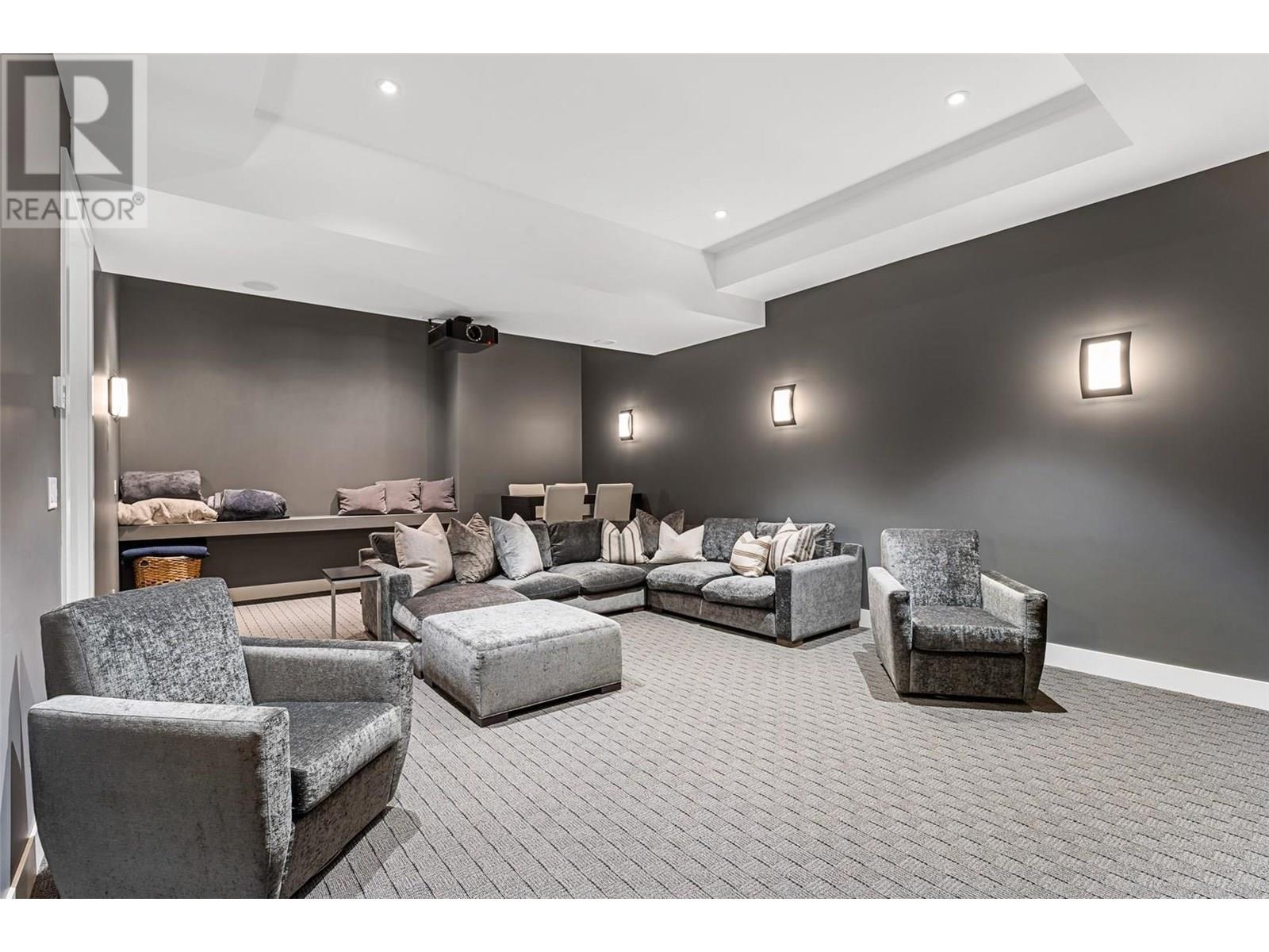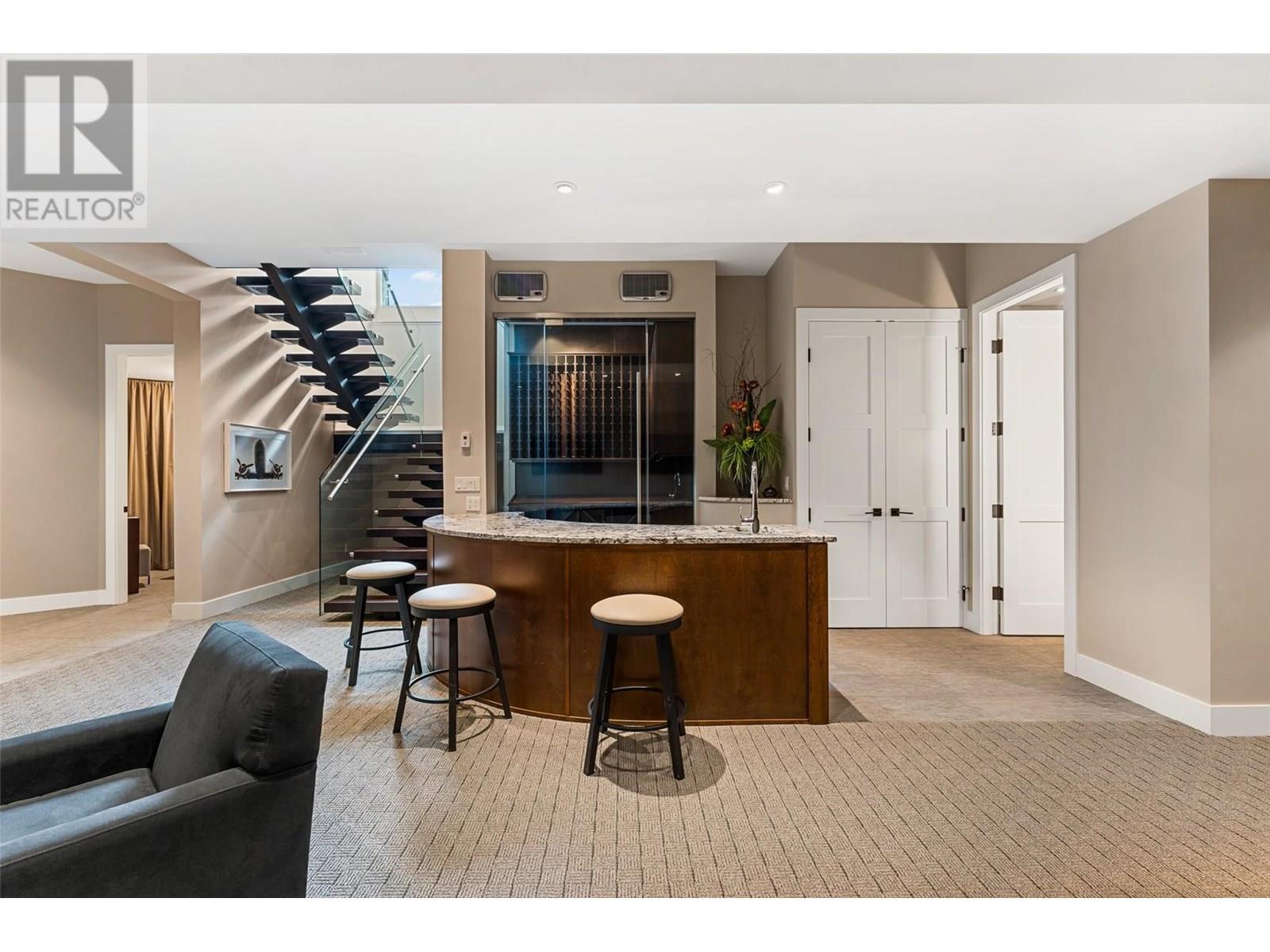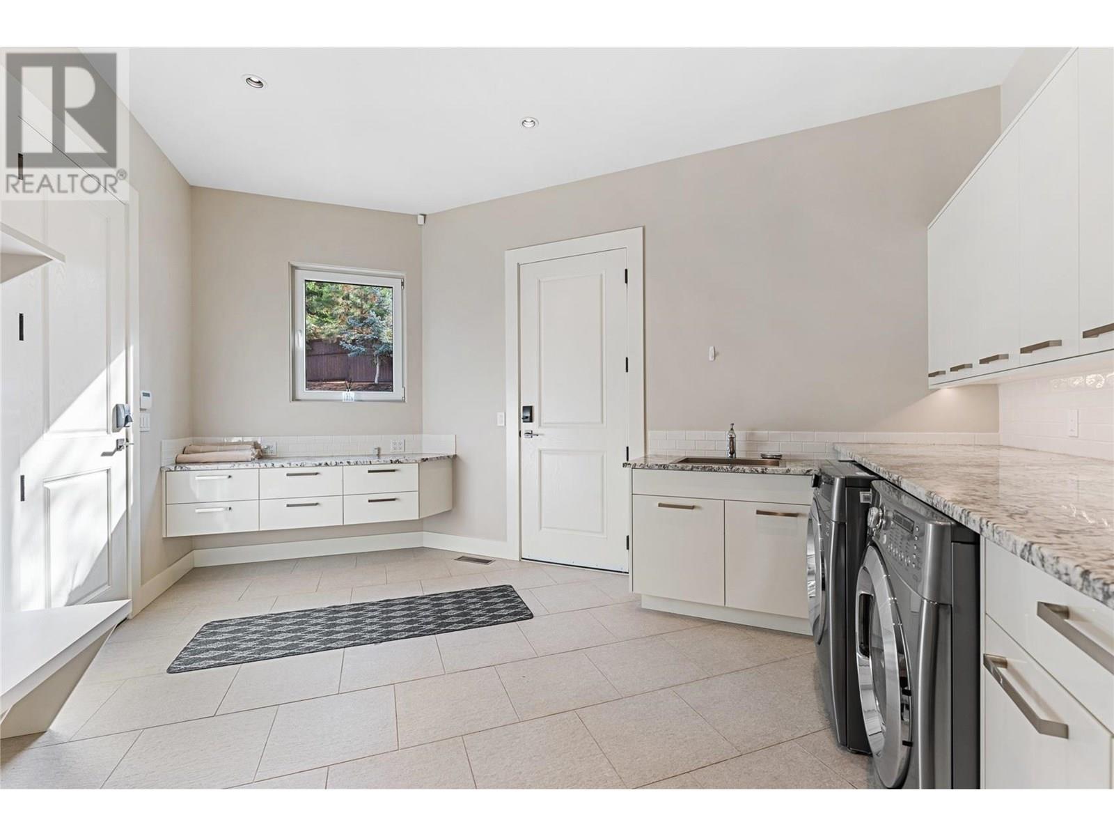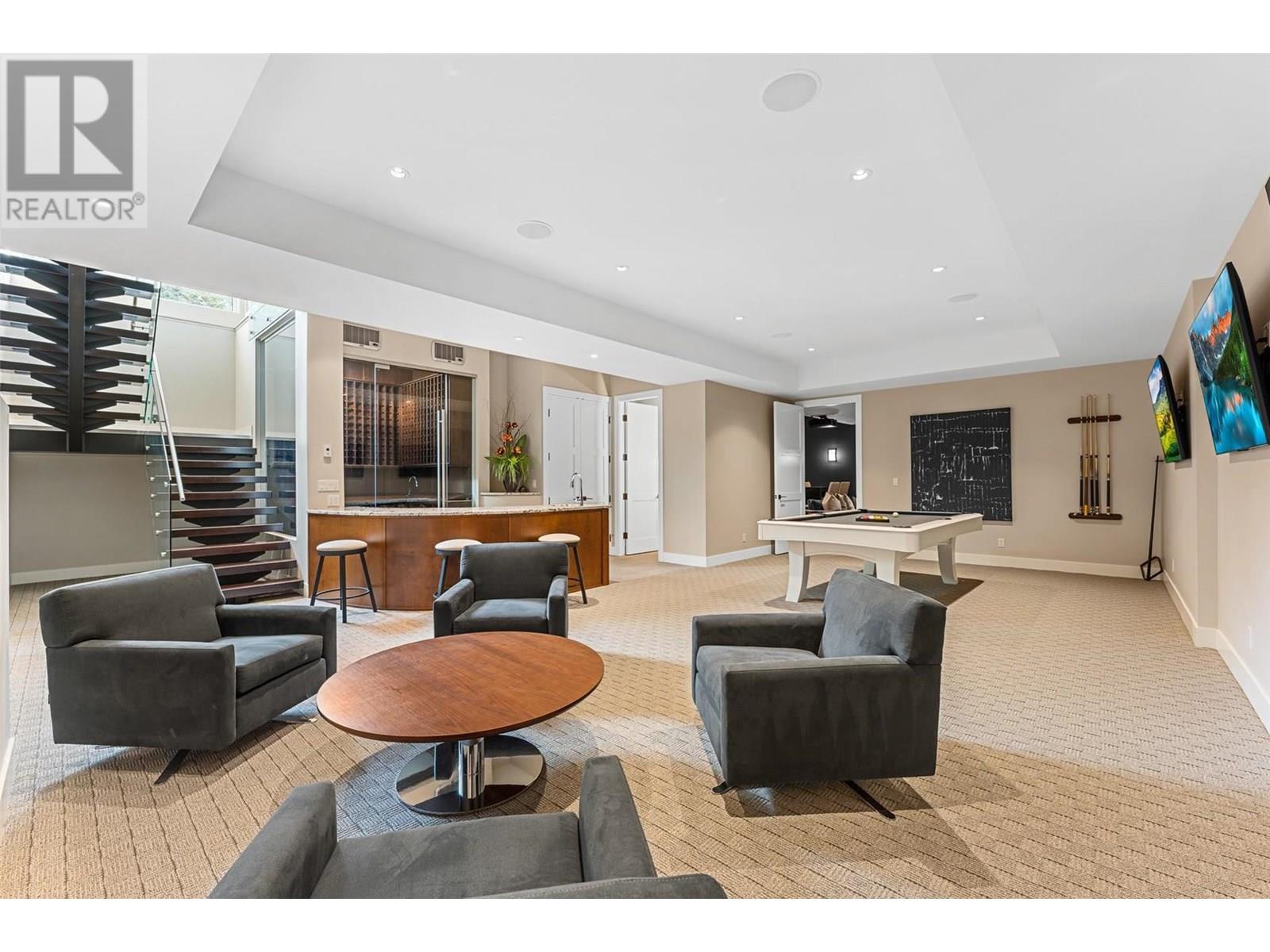 Private estate home set on 2.05 acres and perfectly positioned to capture the stunning lake, city and vineyard views. Enjoy an expansive flagstone patio with a spectacular negative edge saltwater infinity pool that creates a resort-like setting with room to lounge, entertain and take in the breathtaking views. Gated entry leads to heated triple garage & single garage plus RV garage. Upon entering the home you’ll notice walls of glass showcase views of the pool, lake and beyond. Soaring ceiling height w/floor to ceiling windows & sliding wall system create a seamless extension to the outdoors with the open concept great room, dining & kitchen. Kitchen features oversized granite island, professional appliances, custom fixtures & cabinetry. Generous sized lake view primary bedroom framed in windows w/ linear gas fireplace & full ensuite with frameless glass shower, his/her sinks and soaker tub. Contemporary style home is over 5500 square feet with 4 bedrooms & 6 baths. Lower level boasts wine room, media room and games room. New pool, patio, pergola & outdoor living space completed in the summer 2015. The home blends exterior with interior living superbly. Located a short stroll to adjacent Summerhill Winery and minutes to the lake, hiking, dining, boutiques and schools. (id:6770)